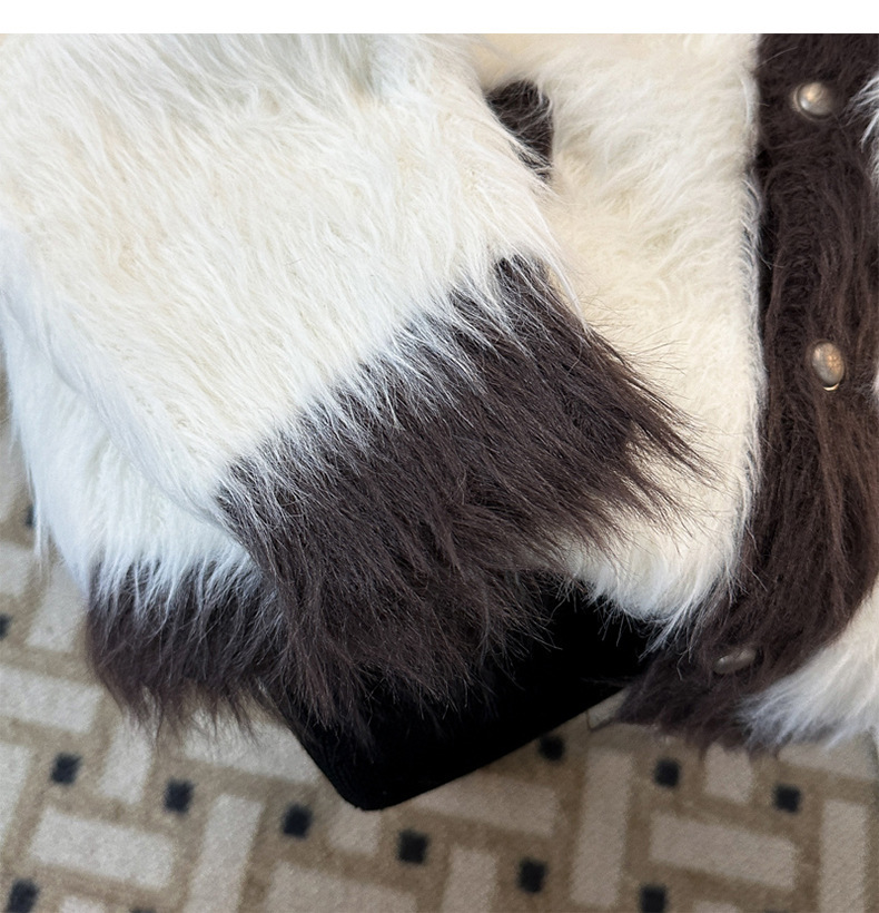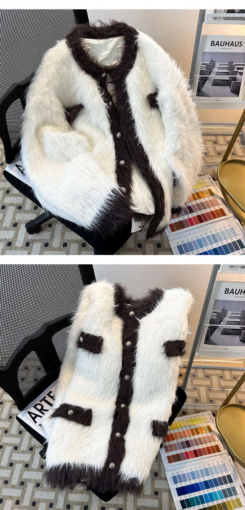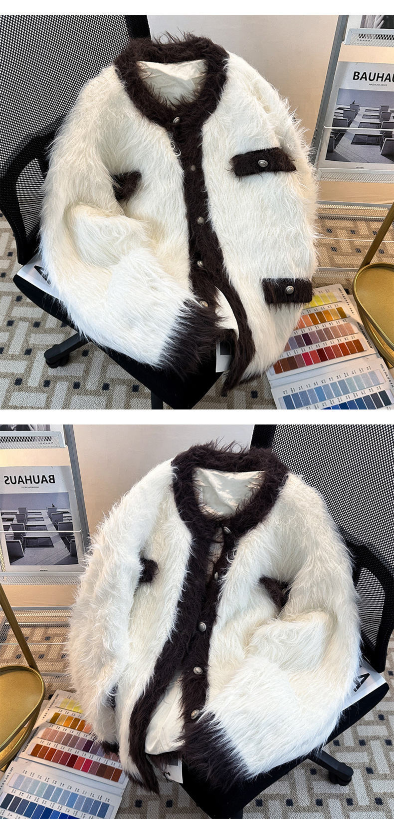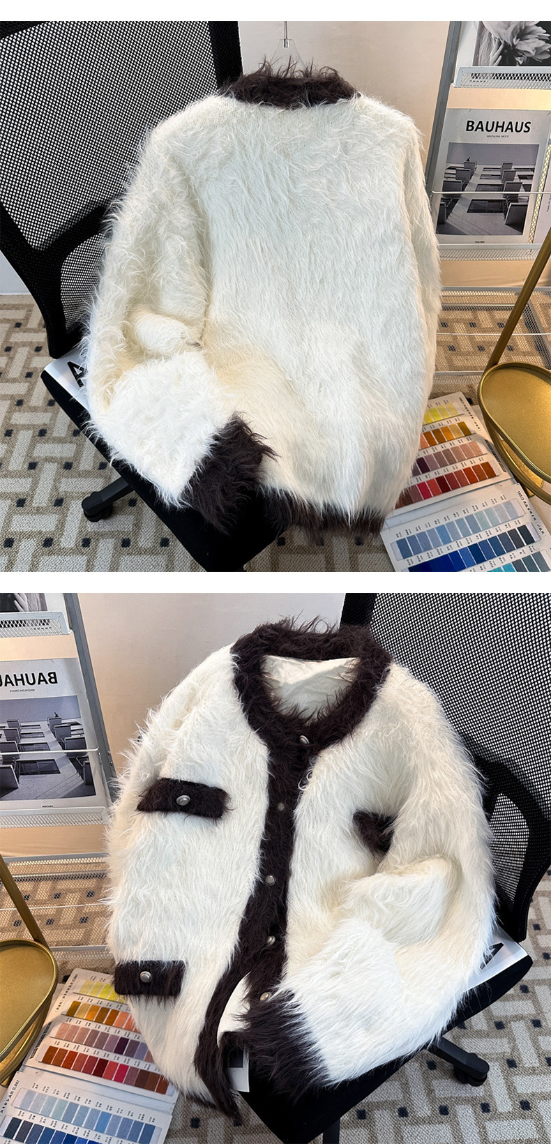 가을과 겨울 2024 새로운 밍크 벨벳 스웨터 코트 남성 디자인 센스 틈새 샤넬 스타일 대비 컬러 니트 카디건스토어 가기