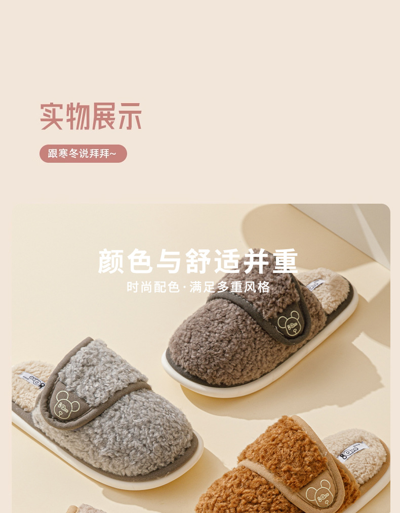 마오 마오 슬리퍼 여성 야외 의류 가을과 겨울 새로운 실내 홈 두꺼운 바닥 스텝 배설물 기모 따뜻한 미끄럼 방지 면화 슬리퍼