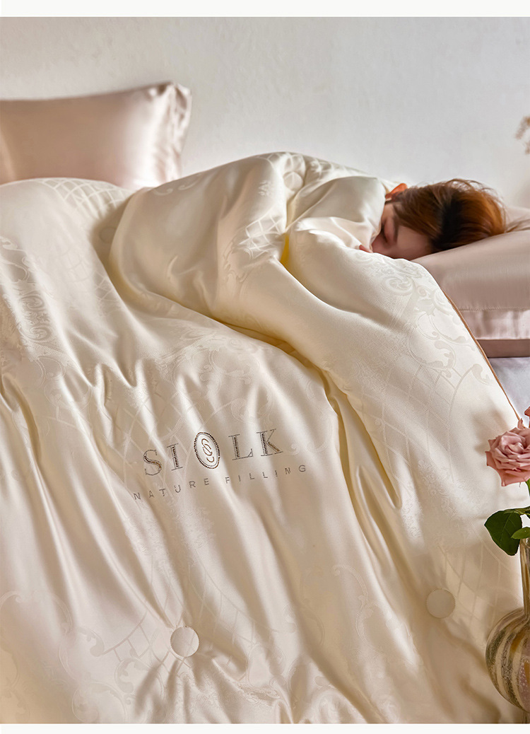 높은 럭셔리 뽕나무 실크 콩 섬유 퀼트 코어 가구 두 사람 봄과 가을 이불 유럽 스타일 자카드 두꺼운 따뜻한 겨울 이불 코어