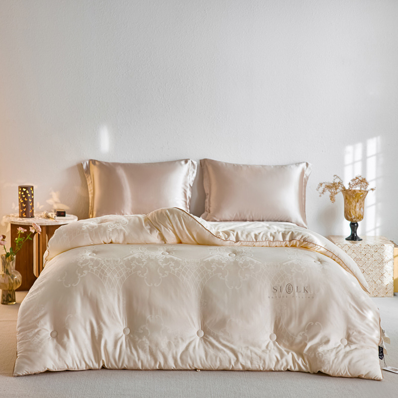 높은 럭셔리 뽕나무 실크 콩 섬유 퀼트 코어 가구 두 사람 봄과 가을 이불 유럽 스타일 자카드 두꺼운 따뜻한 겨울 이불 코어스토어 가기