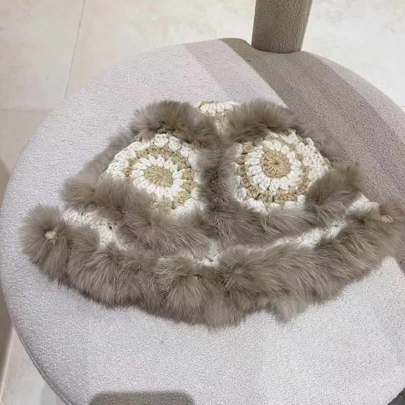 토끼 머리 니트 모자 여성의 가을과 겨울 새로운 큰 머리 착용 양모 모자 느슨한 두꺼운 따뜻한 어부 분지 모자 트렌디스토어 가기