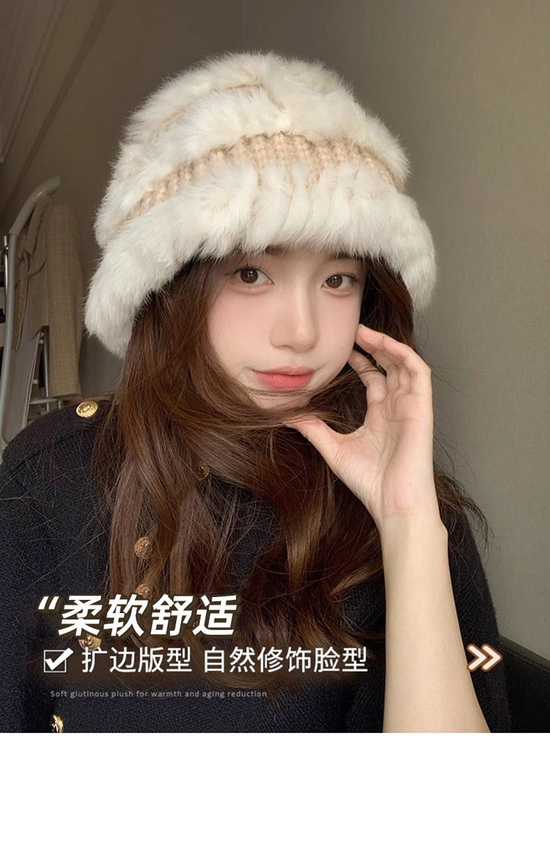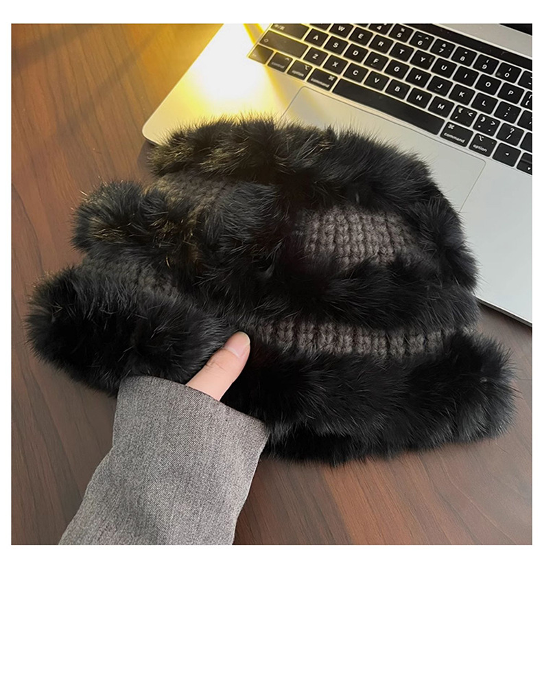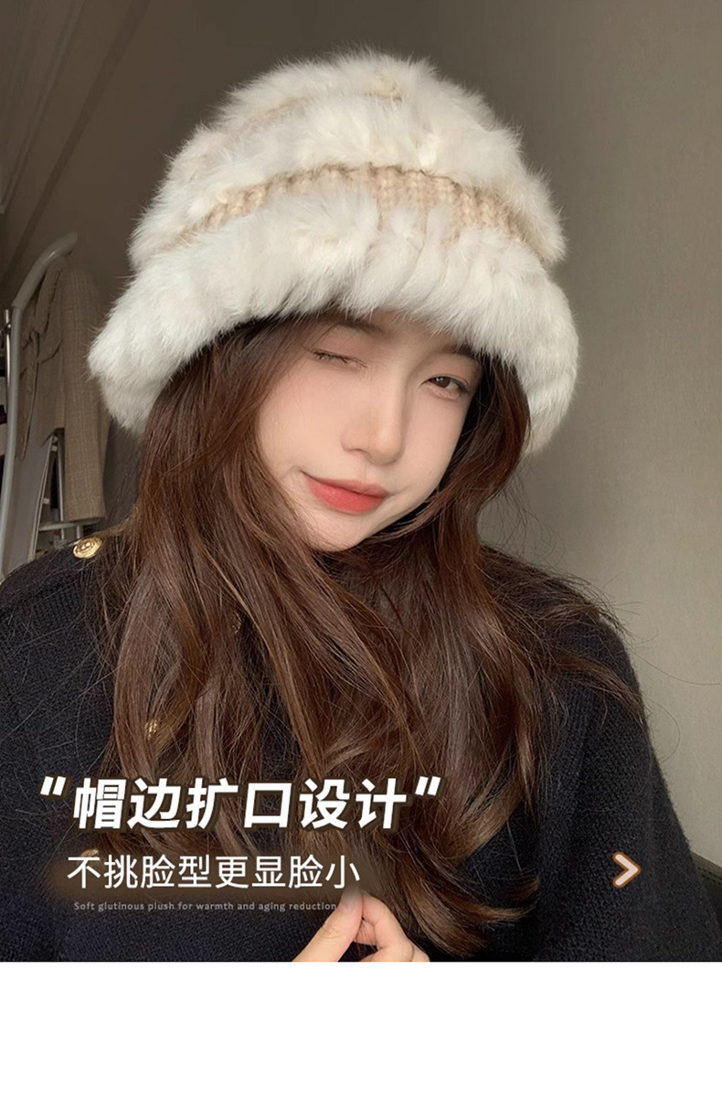 토끼 머리 니트 모자 여성의 가을과 겨울 새로운 큰 머리 착용 양모 모자 느슨한 두꺼운 따뜻한 어부 분지 모자 트렌디