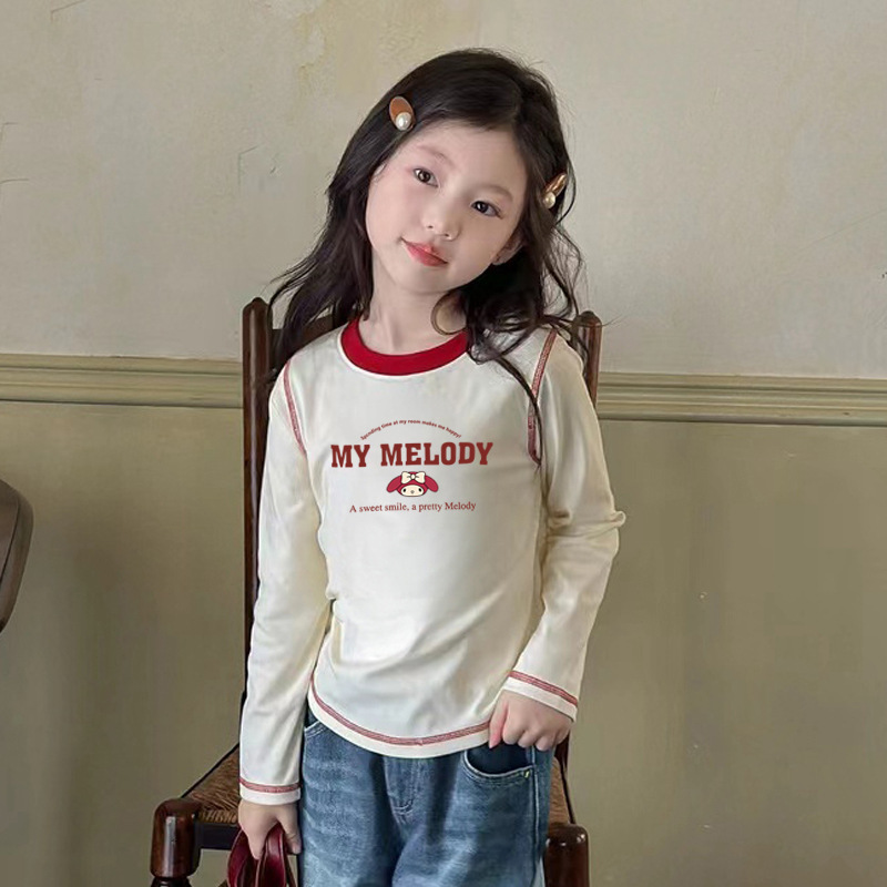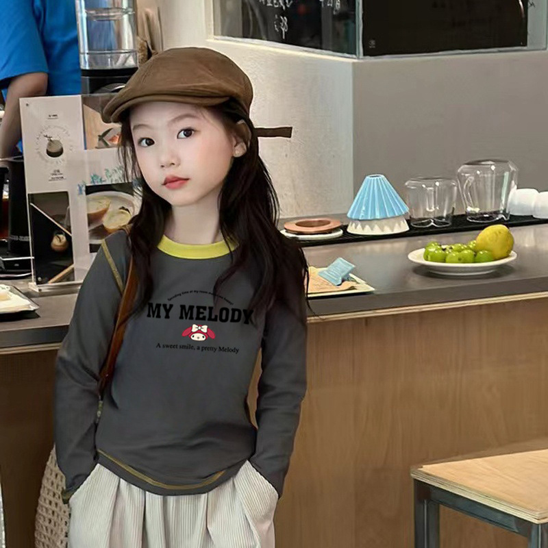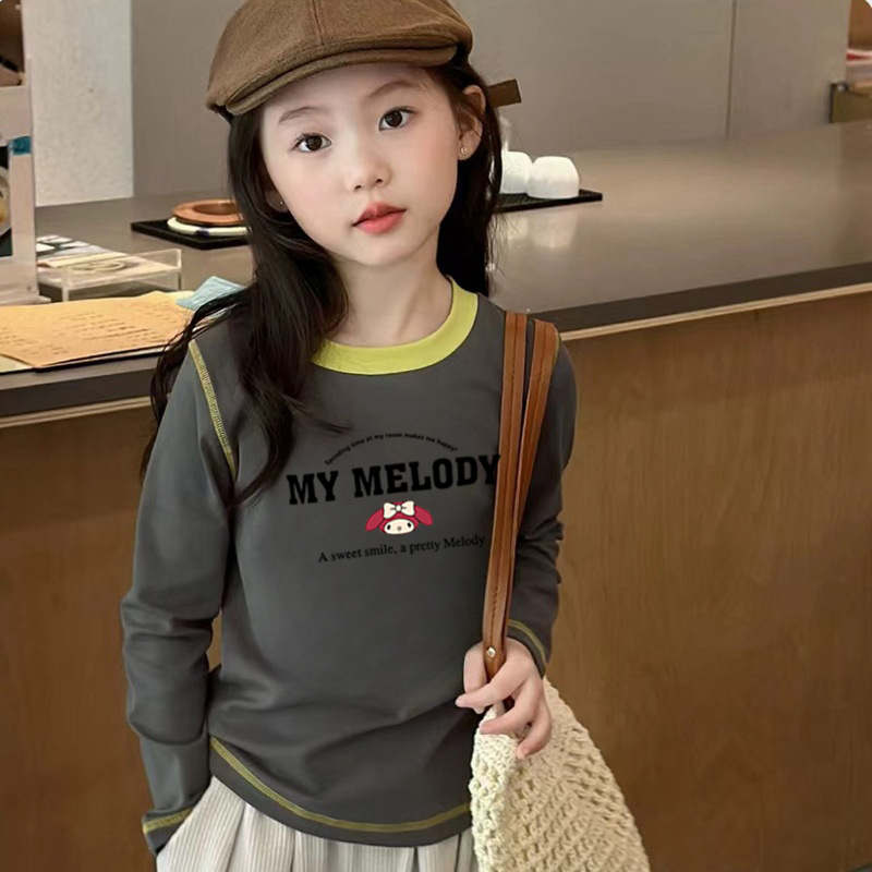 소녀 만화 Meruti 퓨어 코튼 티셔츠 2024 새로운 가을과 겨울 소녀 긴팔 티셔츠 어린이 크루 넥 탑 트렌디