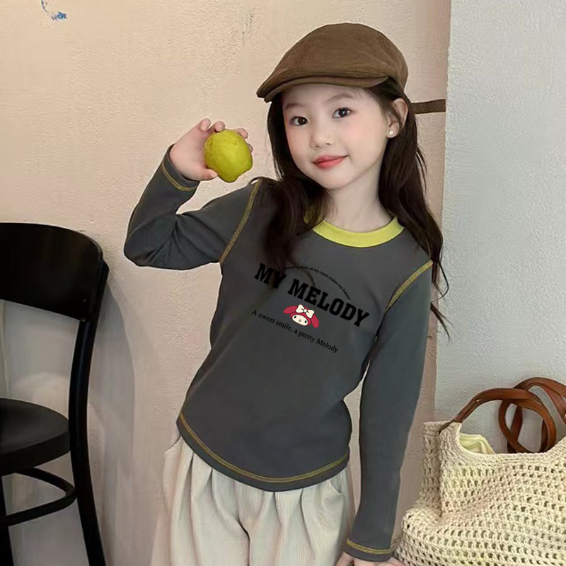 소녀 만화 Meruti 퓨어 코튼 티셔츠 2024 새로운 가을과 겨울 소녀 긴팔 티셔츠 어린이 크루 넥 탑 트렌디스토어 가기