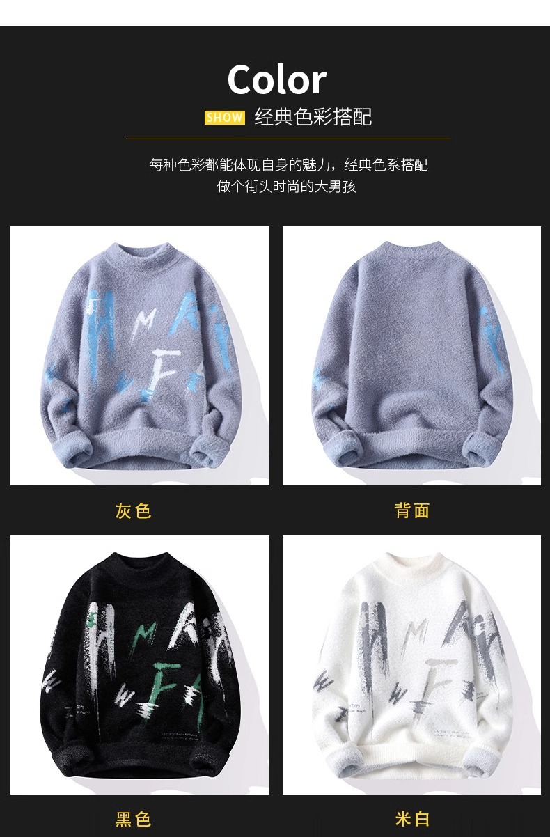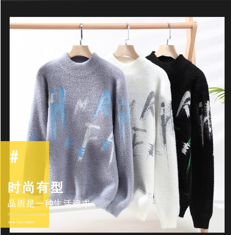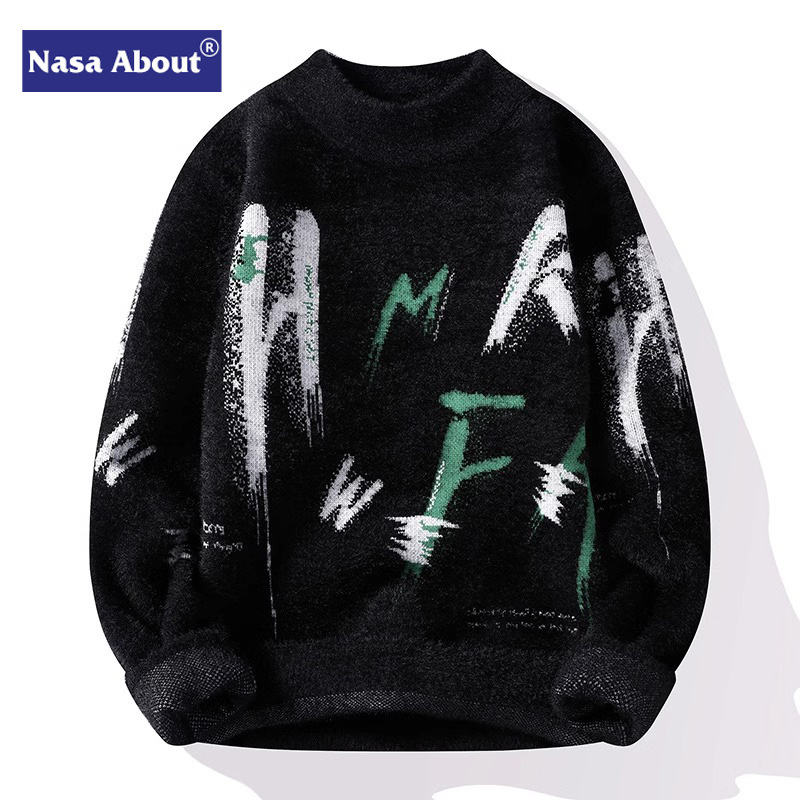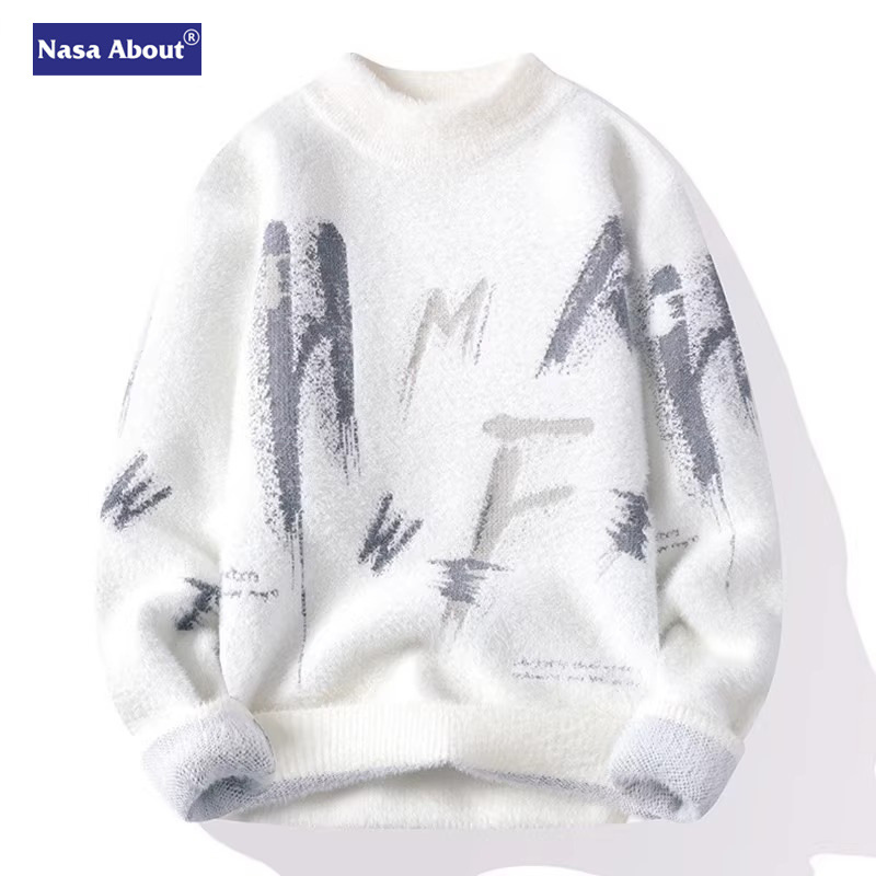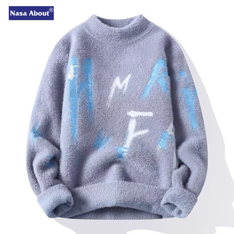 NASA 밍크 벨벳 스웨터 남성 가을과 겨울 조수 브랜드 2024 새로운 스웨터 겨울 따뜻한 두꺼운 스웨터 조수스토어 가기