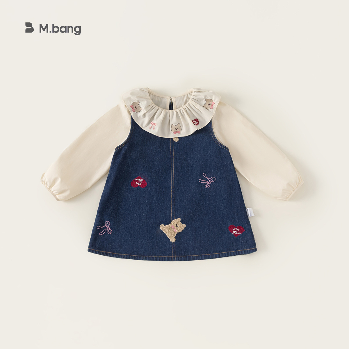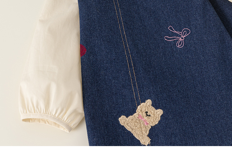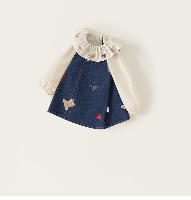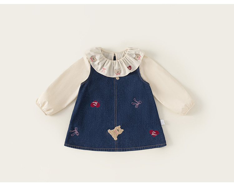 유바오 아동복 여아 봄가을 세트 만화 곰돌이 인형 셔츠 한국 스타일 패셔너블 데님 조끼 스커트 투피스 세트
