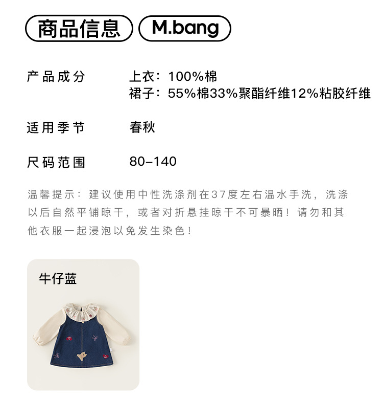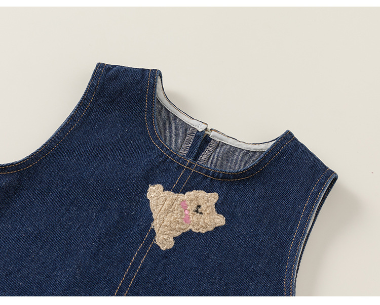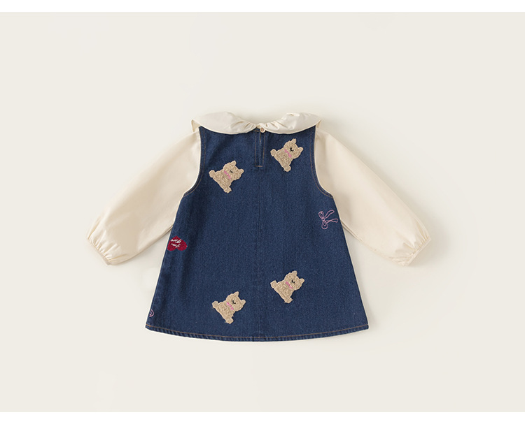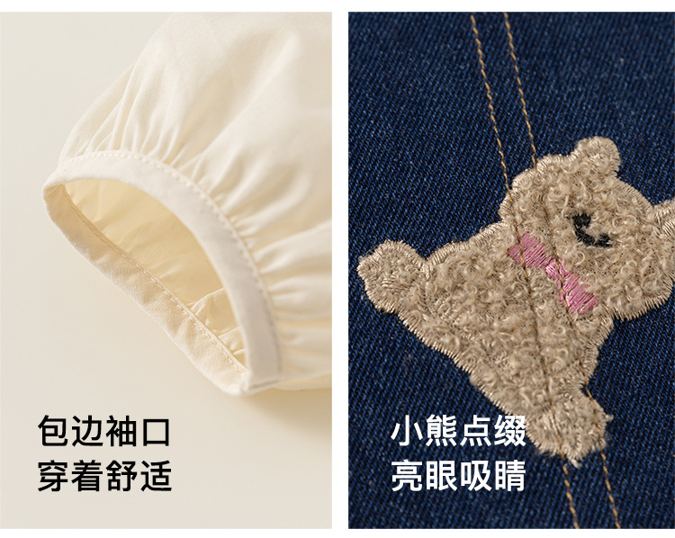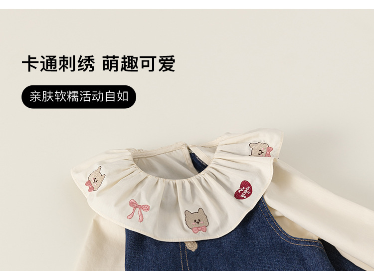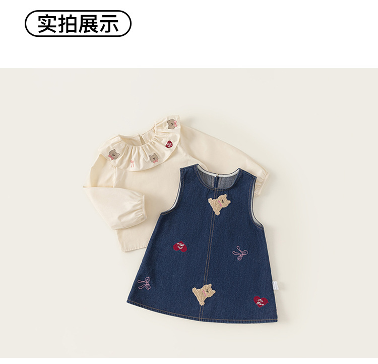 유바오 아동복 여아 봄가을 세트 만화 곰돌이 인형 셔츠 한국 스타일 패셔너블 데님 조끼 스커트 투피스 세트스토어 가기