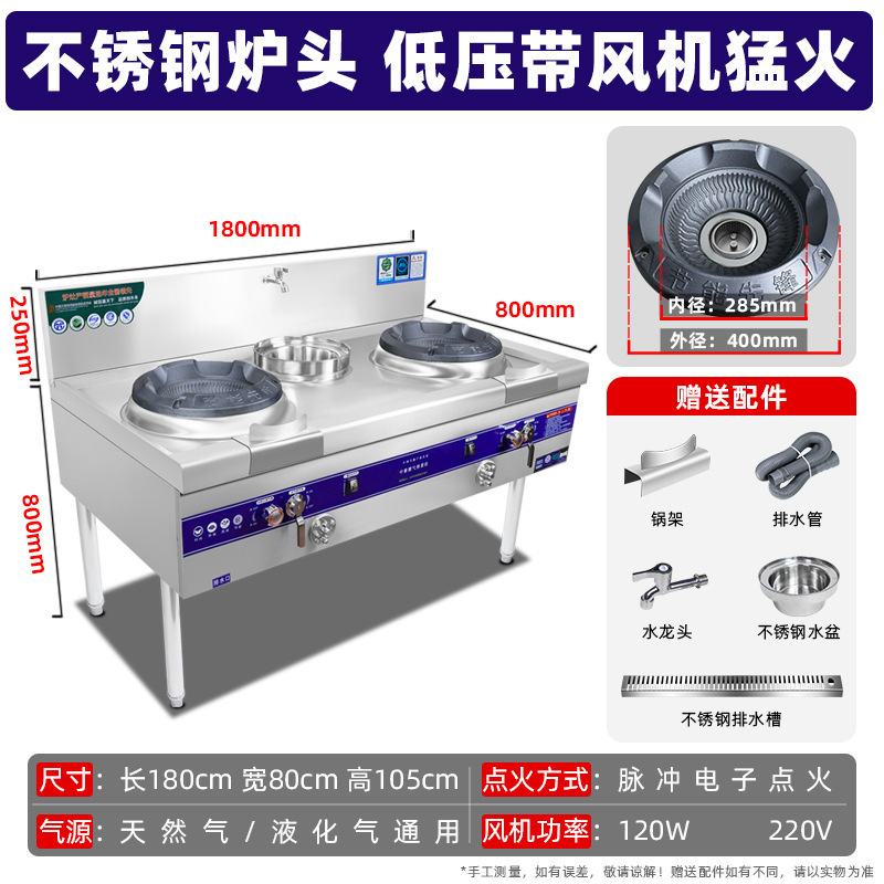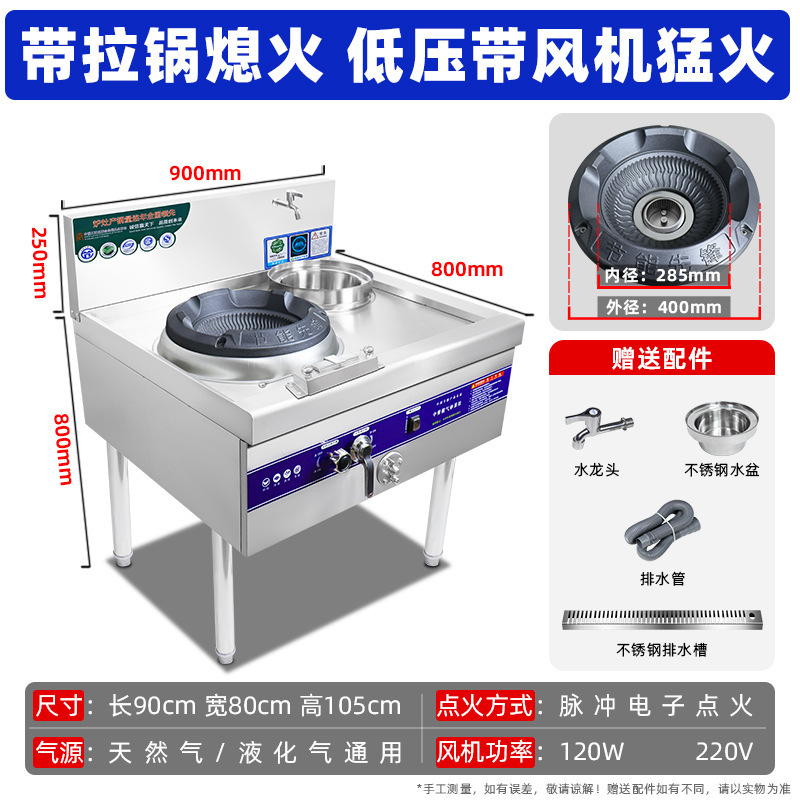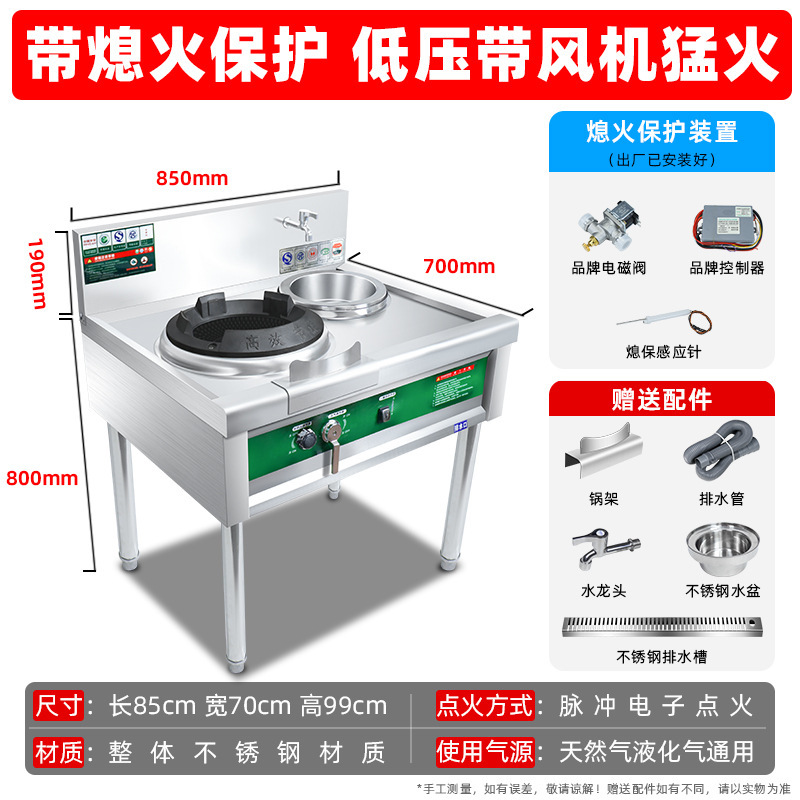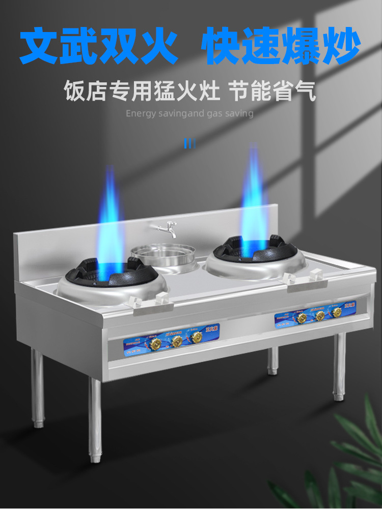 팬 대형 화력 천연 가스 액화 가스 가스 단일 및 더블 스토브 호텔 특수 가정용 고압 상업용 치열한 스토브스토어 가기