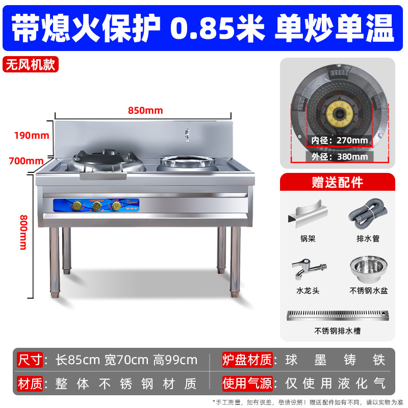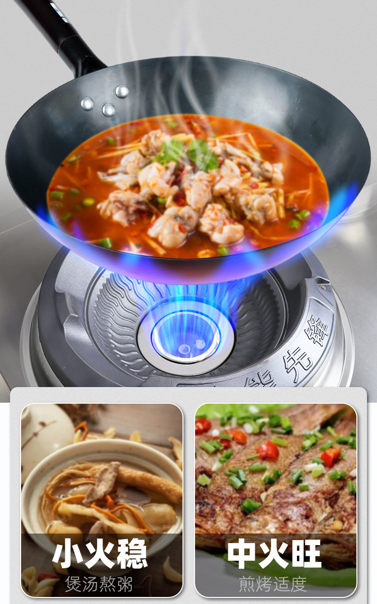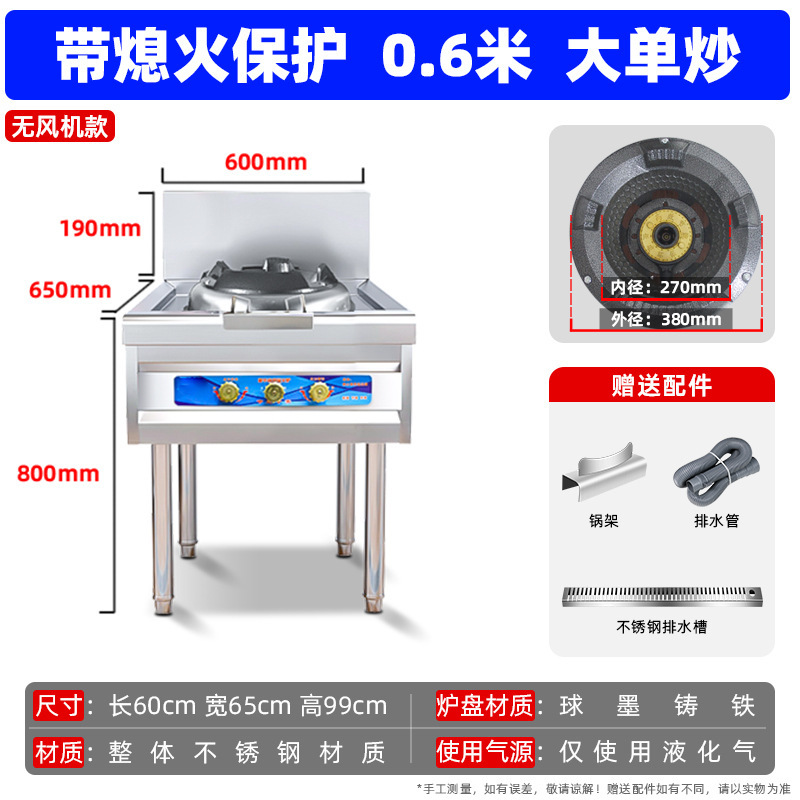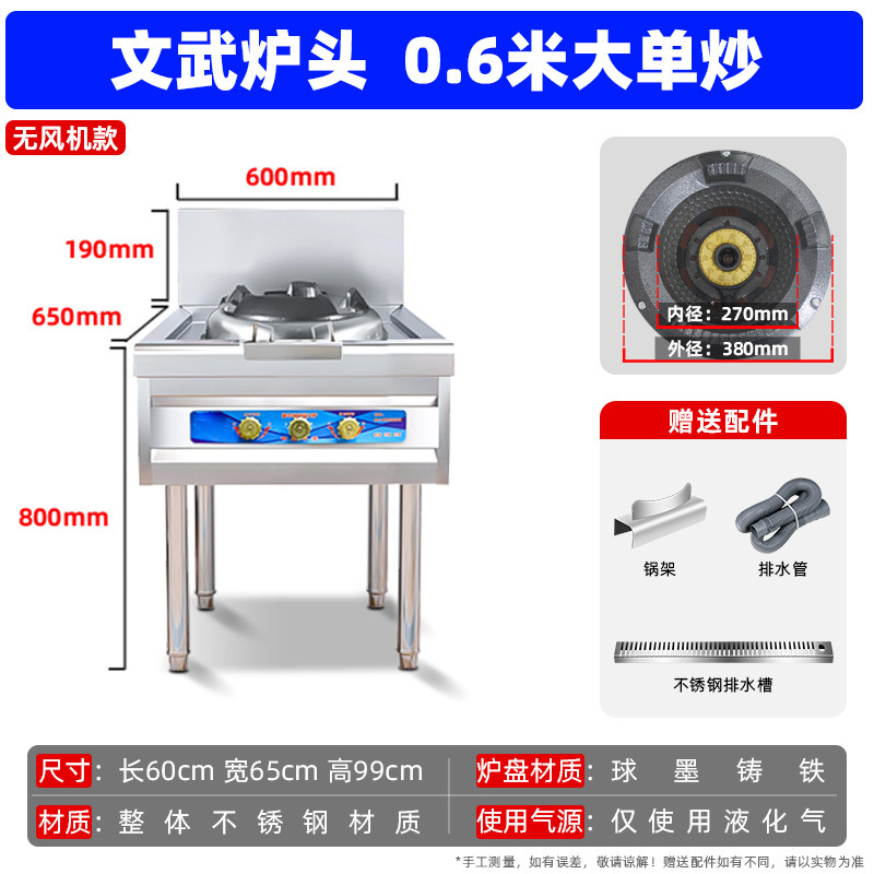 팬 대형 화력 천연 가스 액화 가스 가스 단일 및 더블 스토브 호텔 특수 가정용 고압 상업용 치열한 스토브