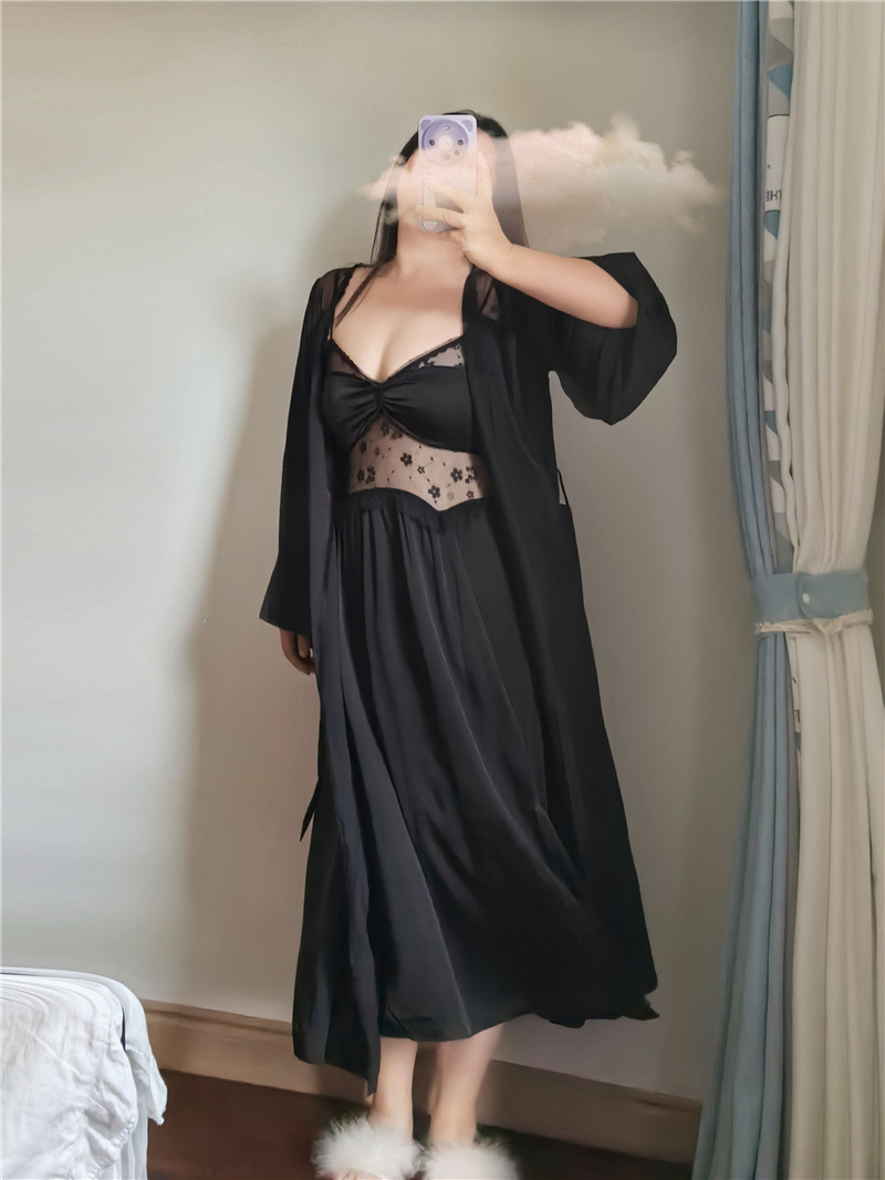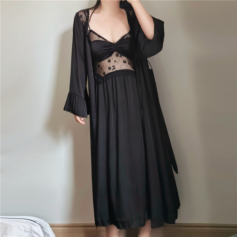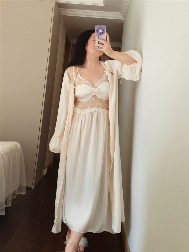 1523 플러스 사이즈 뚱뚱한 mm200 진 여자의 순수한 욕망 프랑스 레이스 V-Neck 섹시한 슬링 스커트 아이스 실크 투피스 잠옷 A