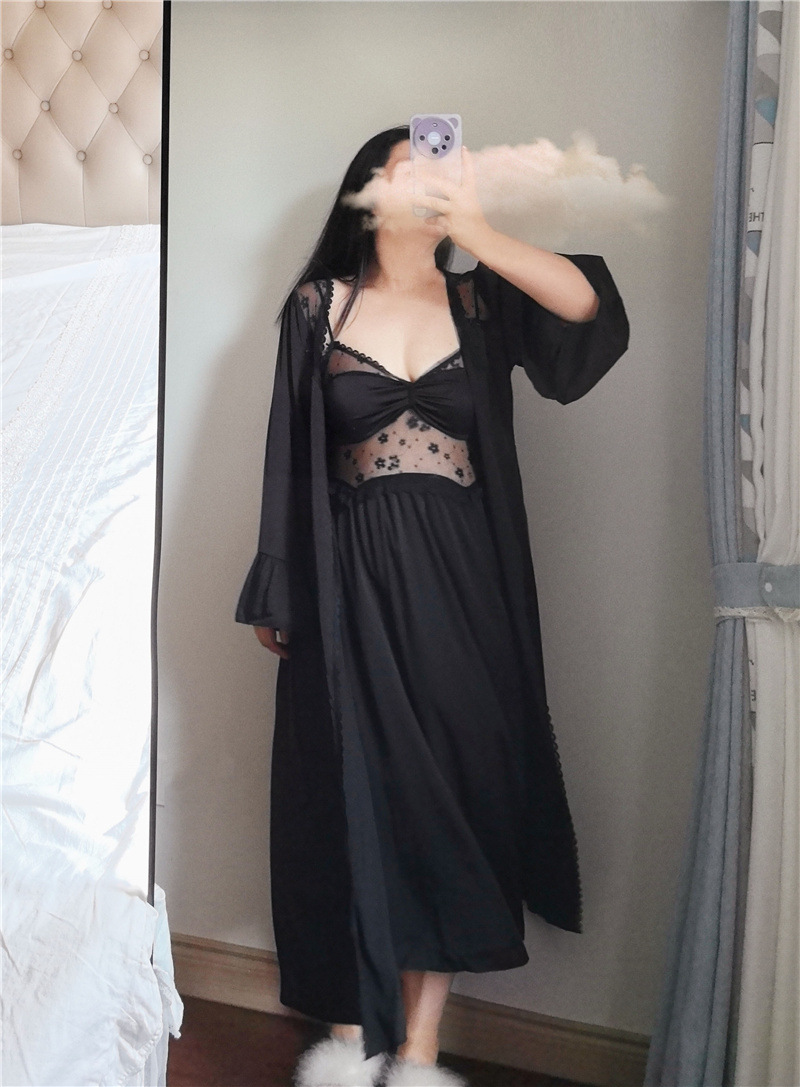1523 플러스 사이즈 뚱뚱한 mm200 진 여자의 순수한 욕망 프랑스 레이스 V-Neck 섹시한 슬링 스커트 아이스 실크 투피스 잠옷 A스토어 가기