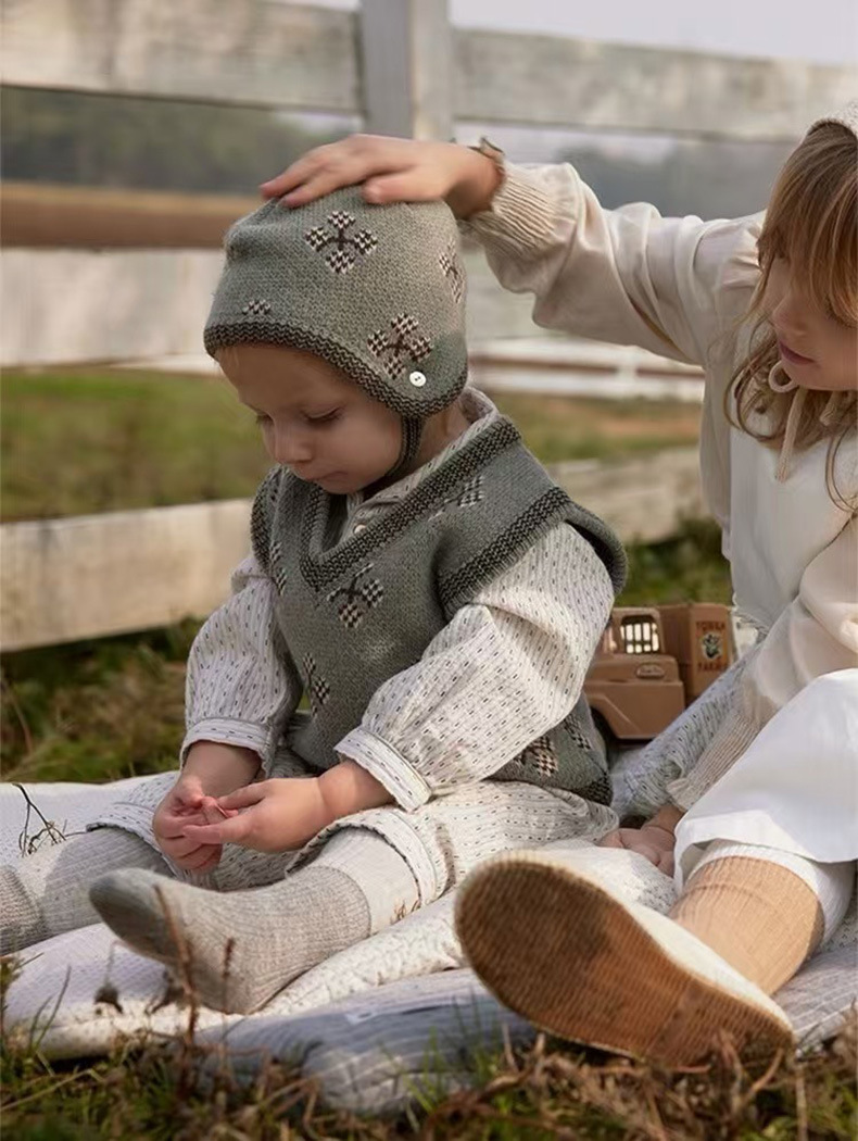 소년 소녀를위한 새로운 한국 아기 양모 빈티지 니트 조끼 아기 가을과 겨울 조끼 어린이 스웨터