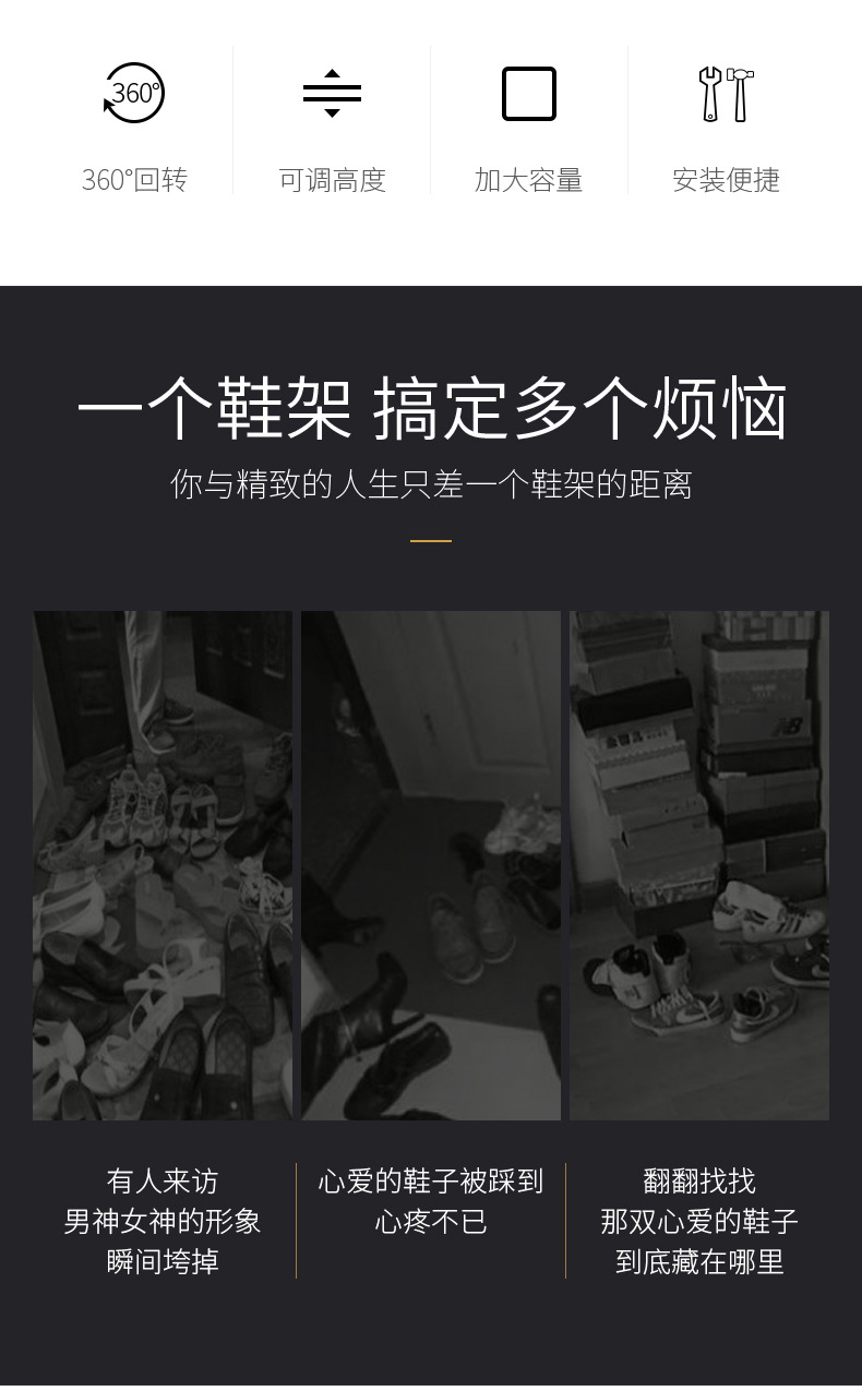 • 블랙 회전 신발장 - 4단