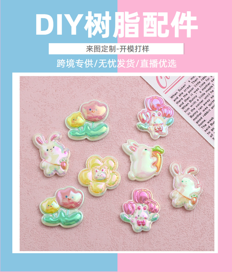전기 도금 무 토끼 크림 접착제 DIY 수제 머리핀 냉장고 스티커 장식 재료 수지 액세서리 도매스토어 가기