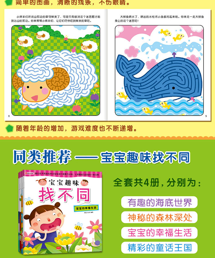 미로 훈련책 아기 재미 걷는 미로 그림책 0 ~ 3 세 조기 교육 계몽책 집중 훈련책