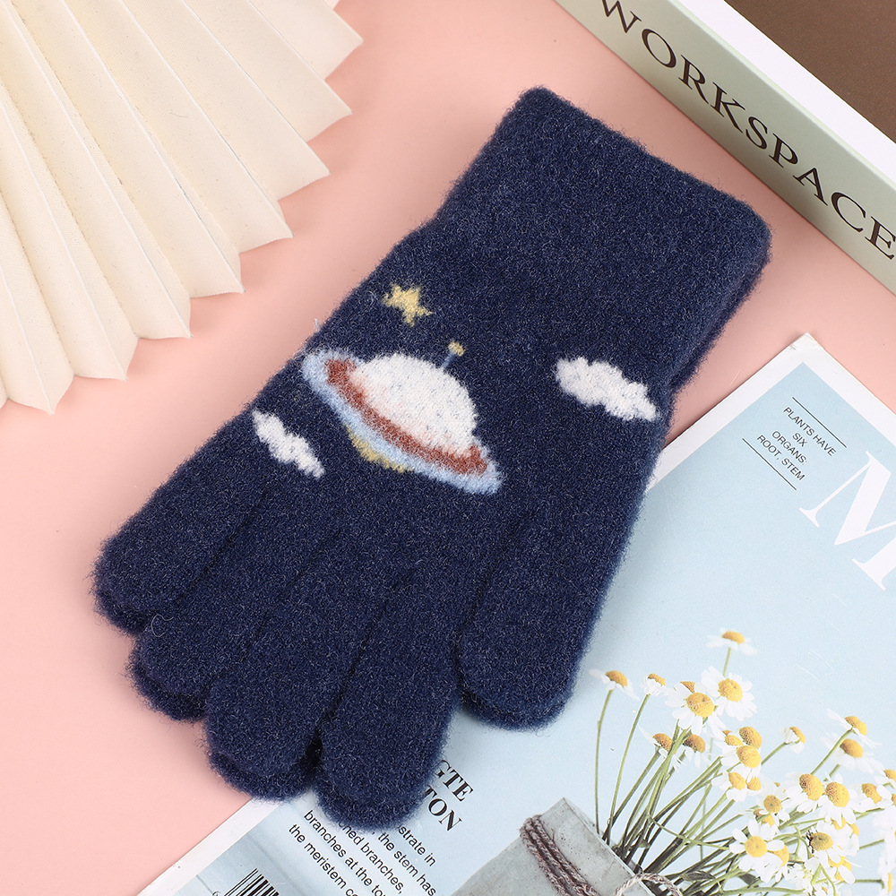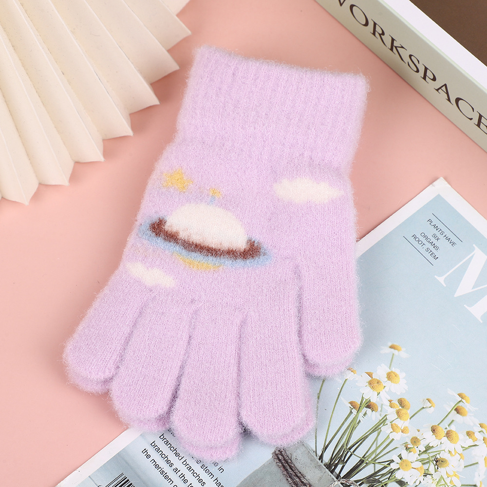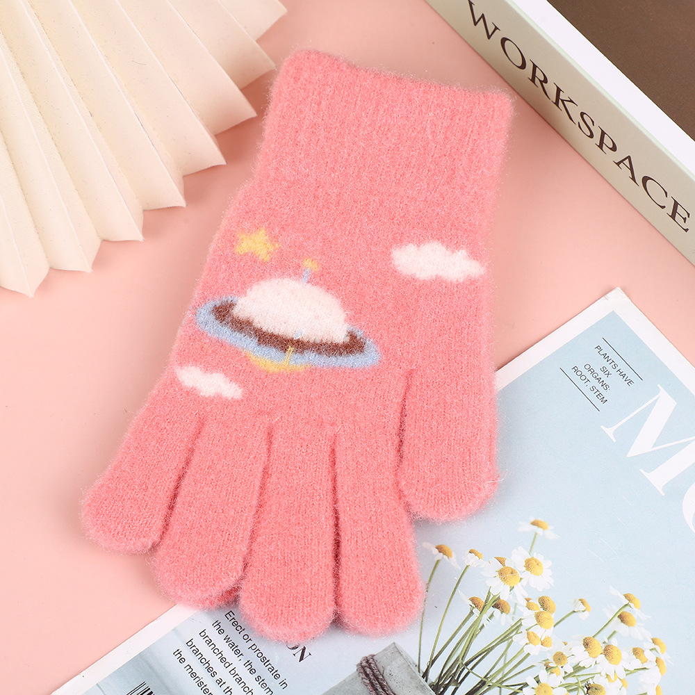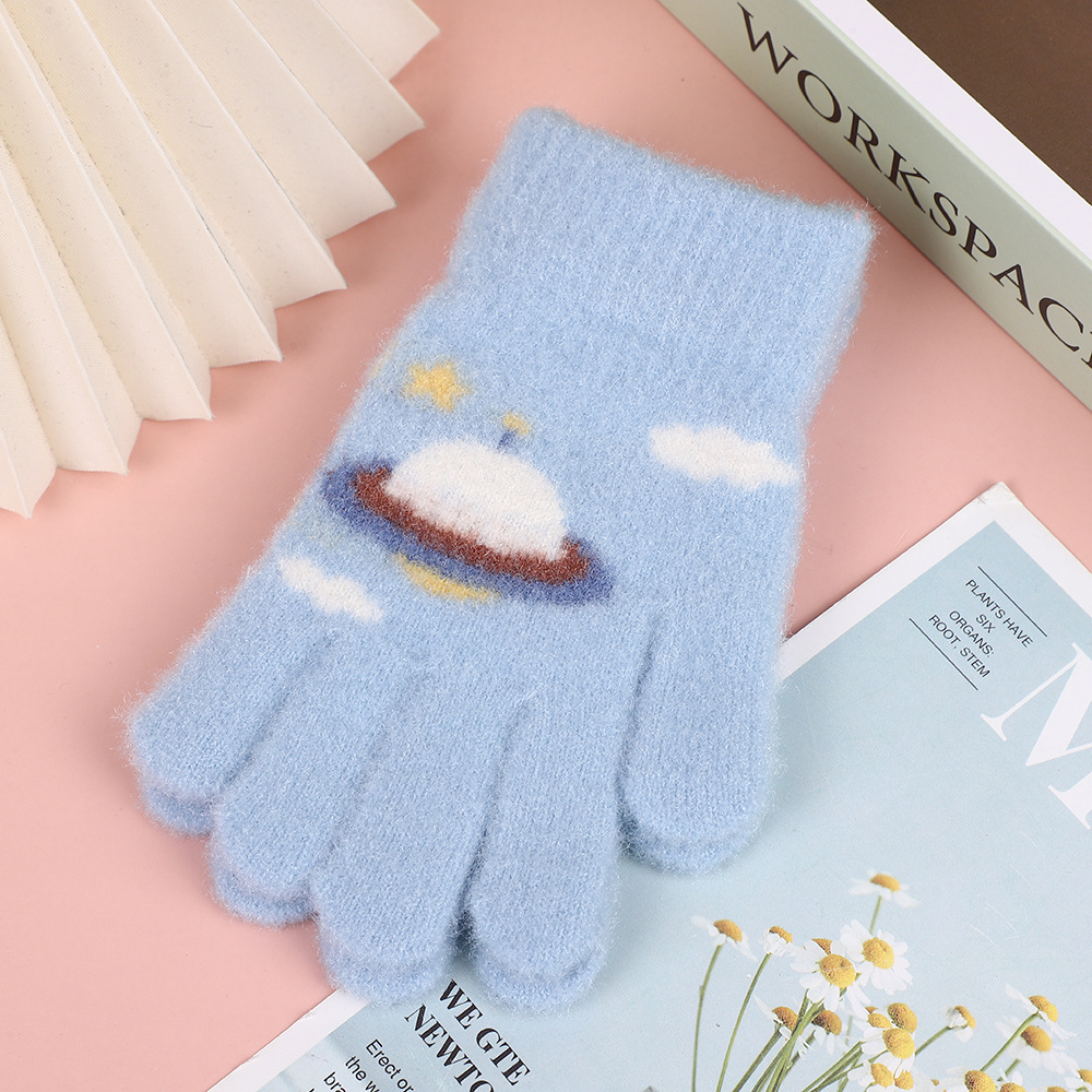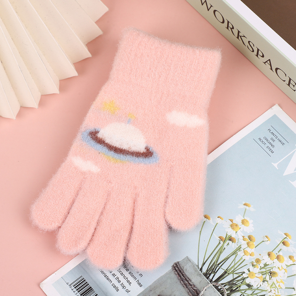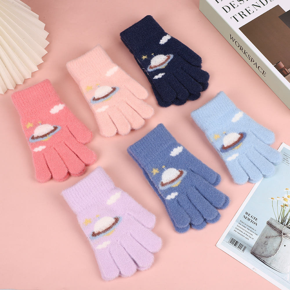 7-12세 소년 소녀를 위한 새로운 스타일의 어린이용 따뜻한 장갑, 겨울용 두꺼운 귀여운 만화 니트 다섯 손가락 플러시 방한 장갑스토어 가기