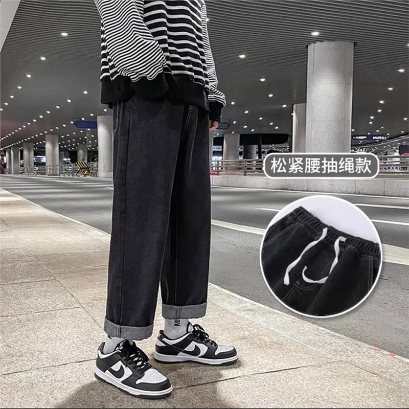 가을 새로운 넓은 다리 청바지 남성용 느슨한 한국식 학생 슬리밍 높은 허리 올매치 스트레이트 바지 남자 트렌디스토어 가기