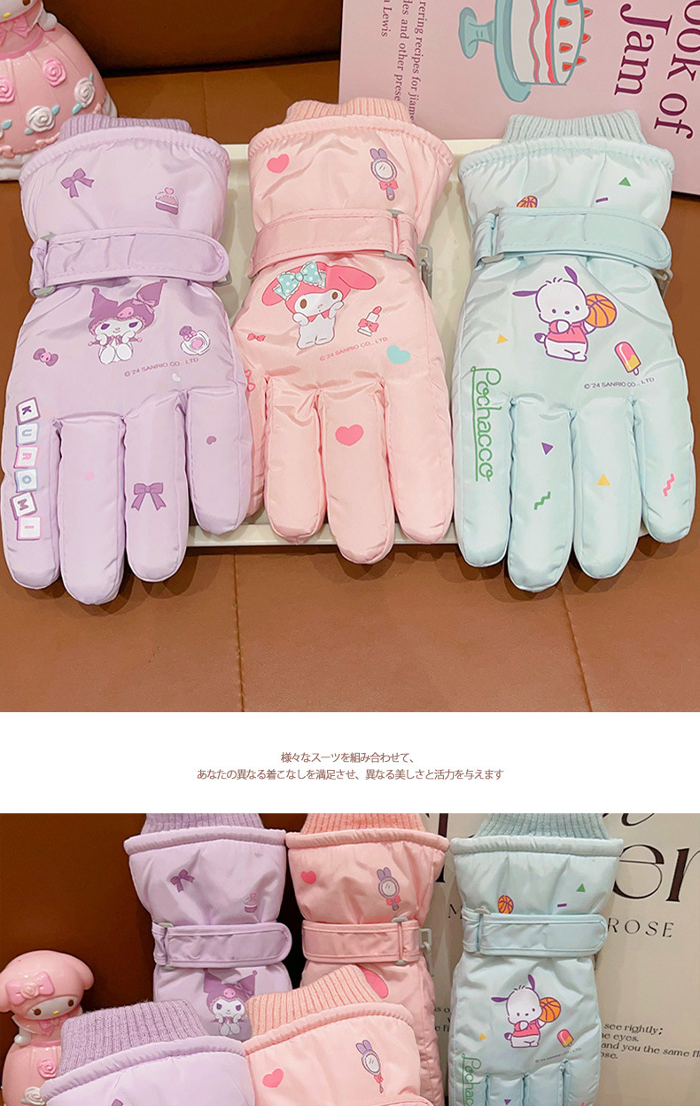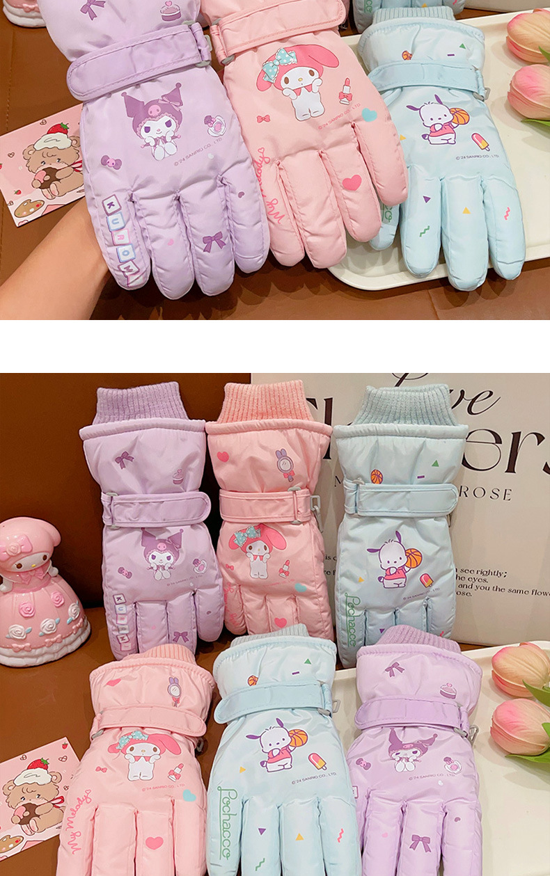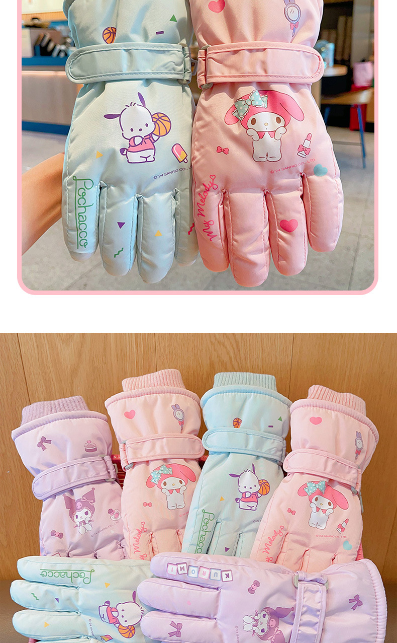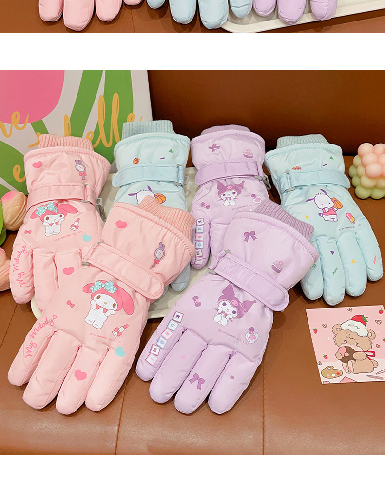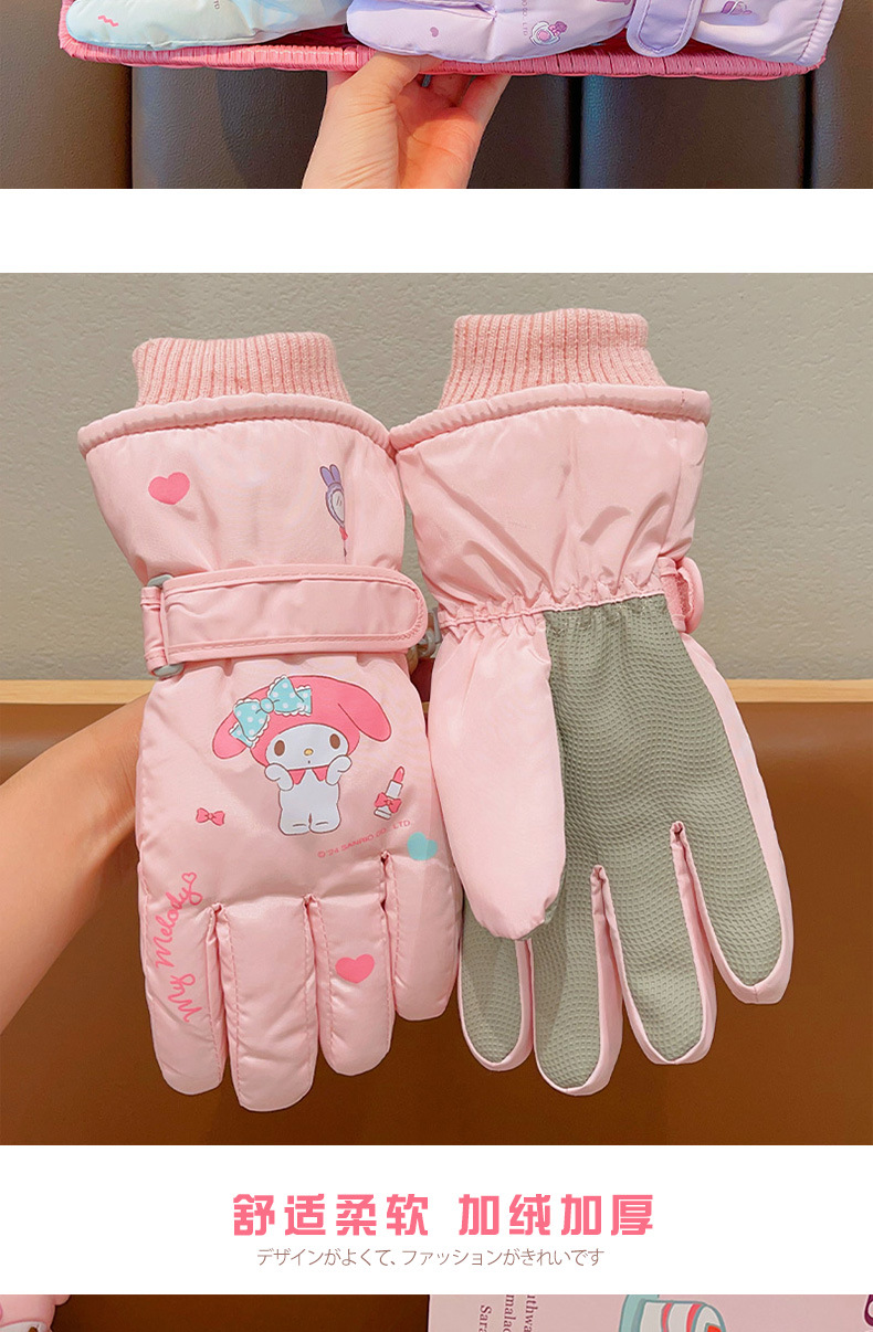 3-12 세 어린이 스키 장갑 기모 두꺼운 방수 방풍 미끄럼 방지 산리오 따뜻한 면 장갑 겨울