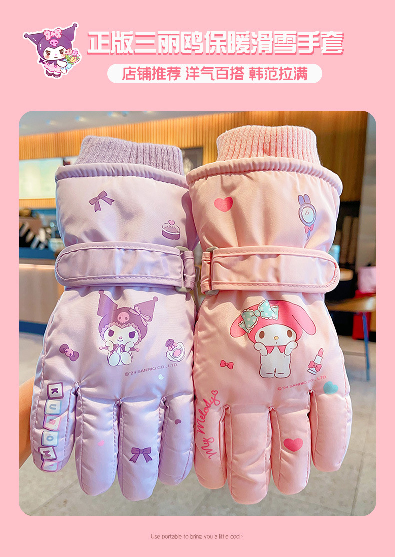 3-12 세 어린이 스키 장갑 기모 두꺼운 방수 방풍 미끄럼 방지 산리오 따뜻한 면 장갑 겨울스토어 가기