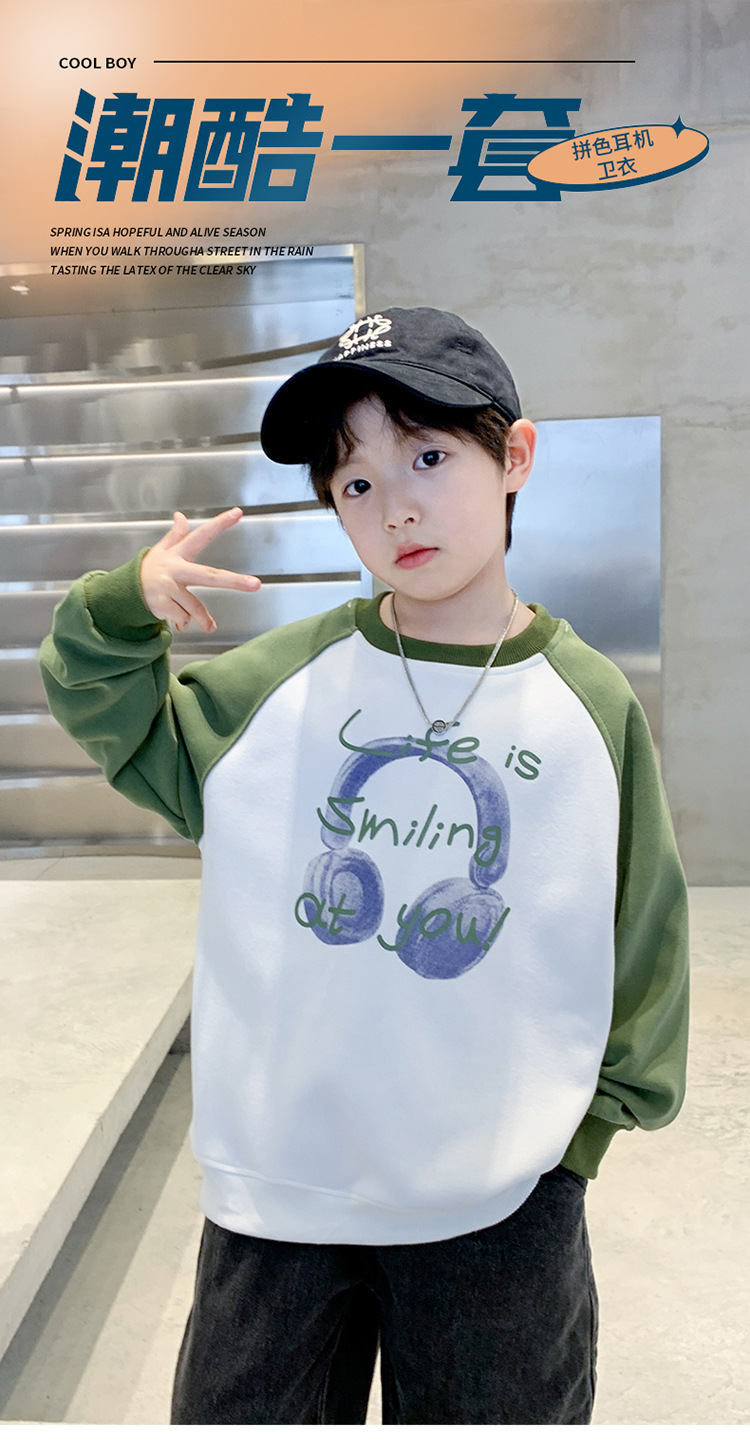 CUHK Boys의 기모 새로운 라운드 넥 아동복 아동복 헤드폰 맞춤형 최고 트렌디 핸섬 크로스 국경스토어 가기