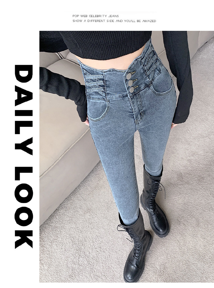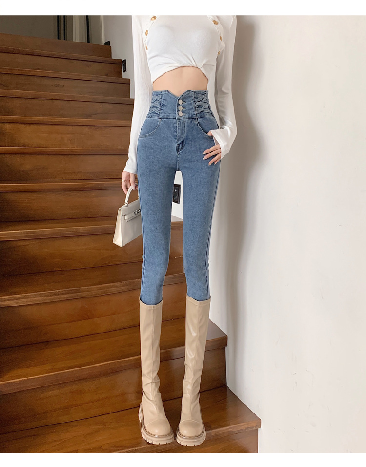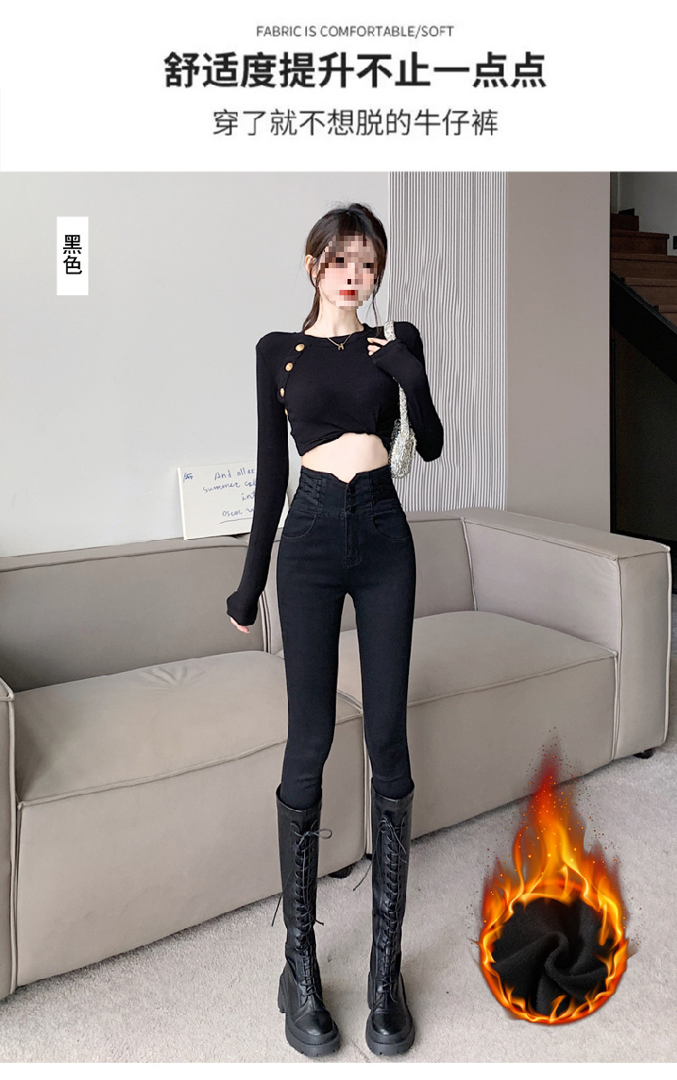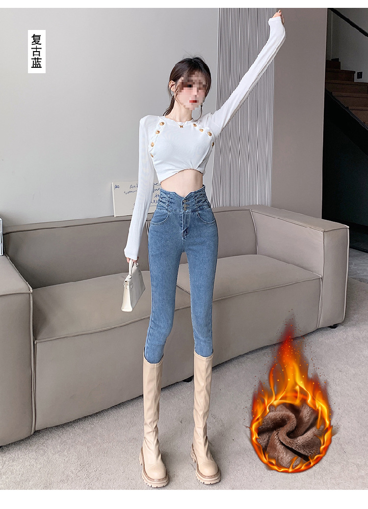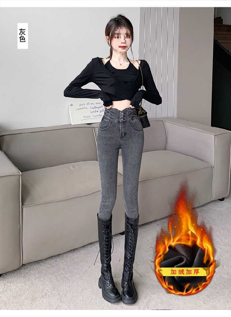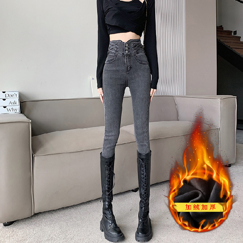 기모 두꺼운 스키니 청바지 여성용 가을 및 겨울 부츠 디자인 허리 슬리밍 슬림 핏 스트레치 스키니 바지스토어 가기