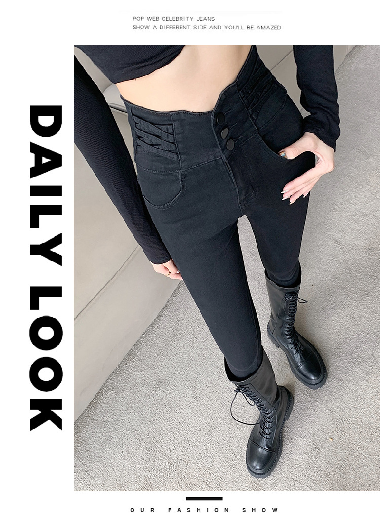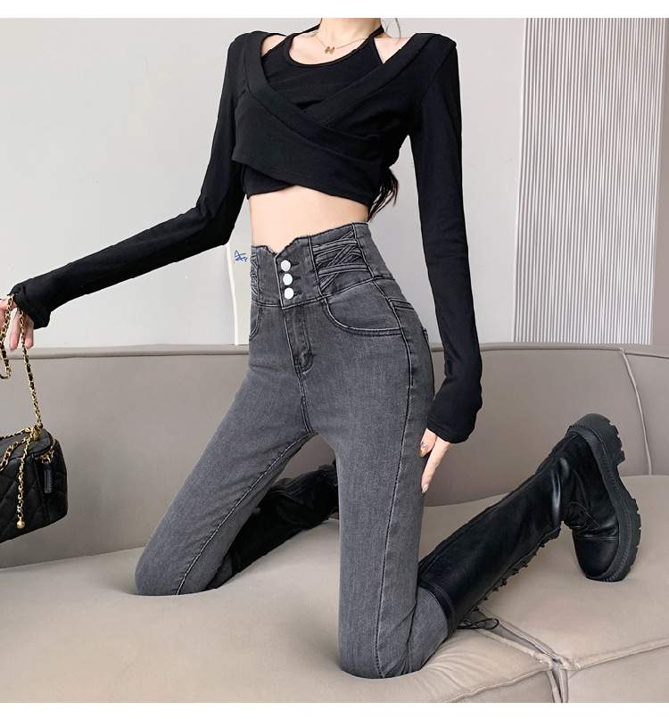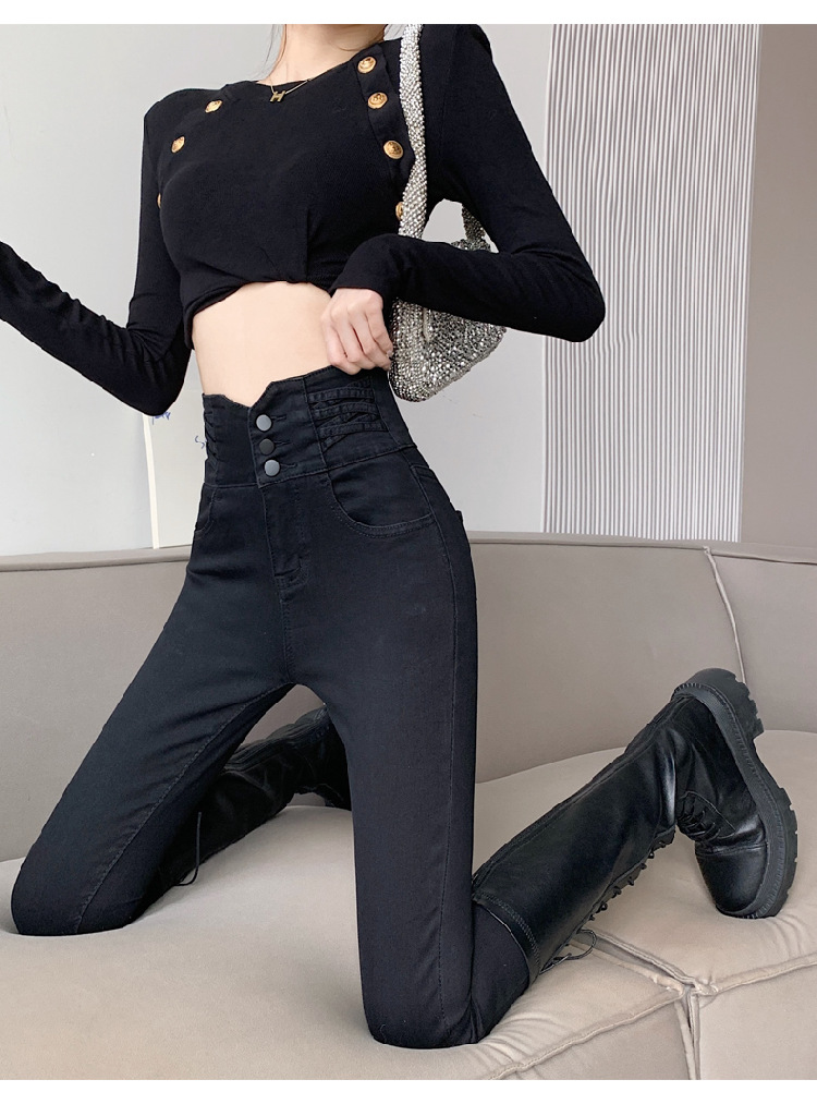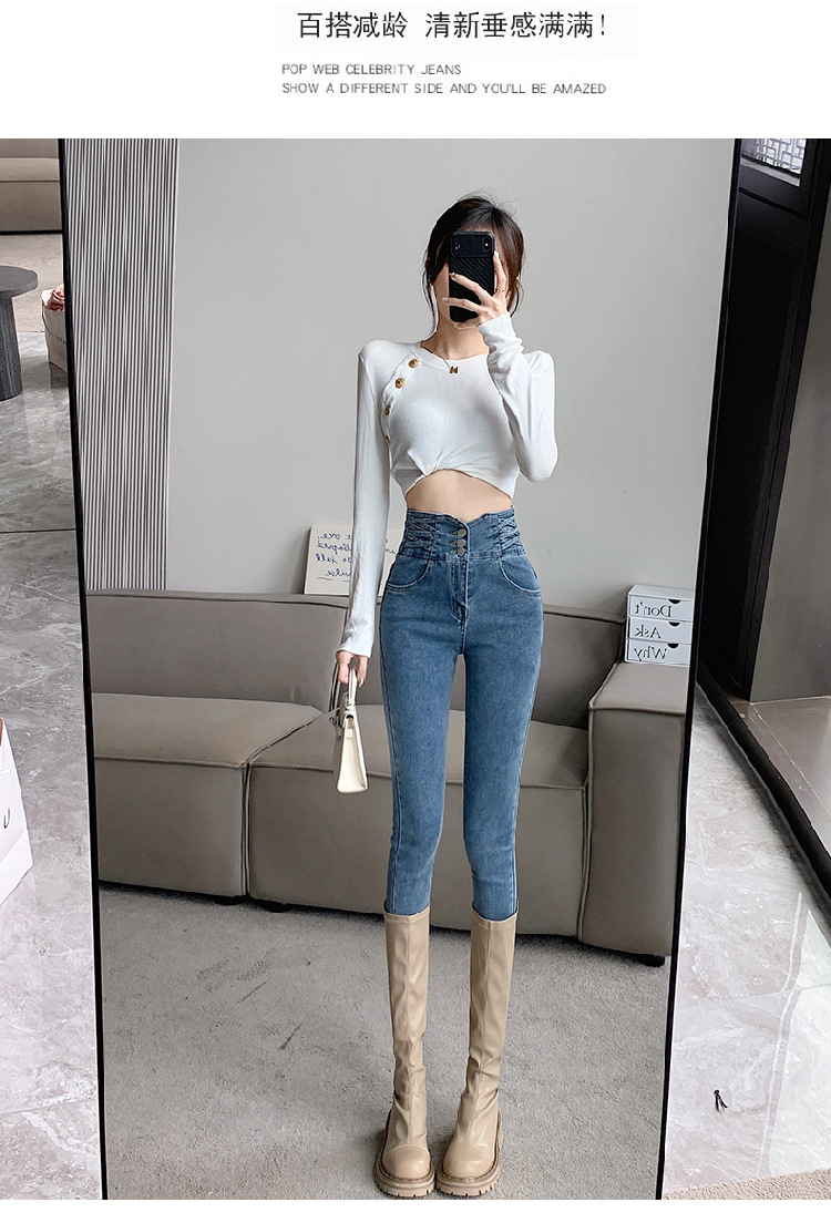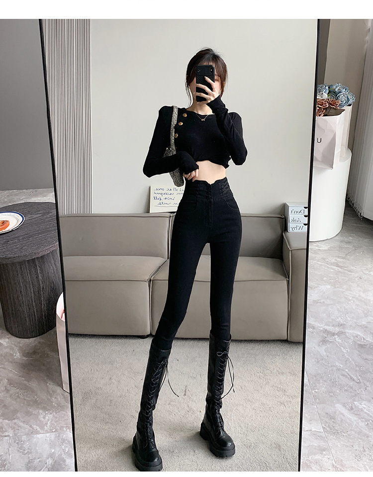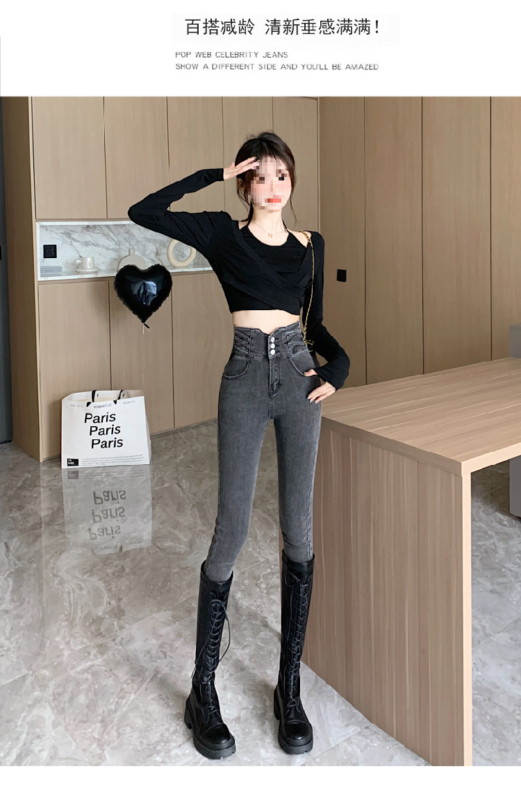 기모 두꺼운 스키니 청바지 여성용 가을 및 겨울 부츠 디자인 허리 슬리밍 슬림 핏 스트레치 스키니 바지스토어 가기