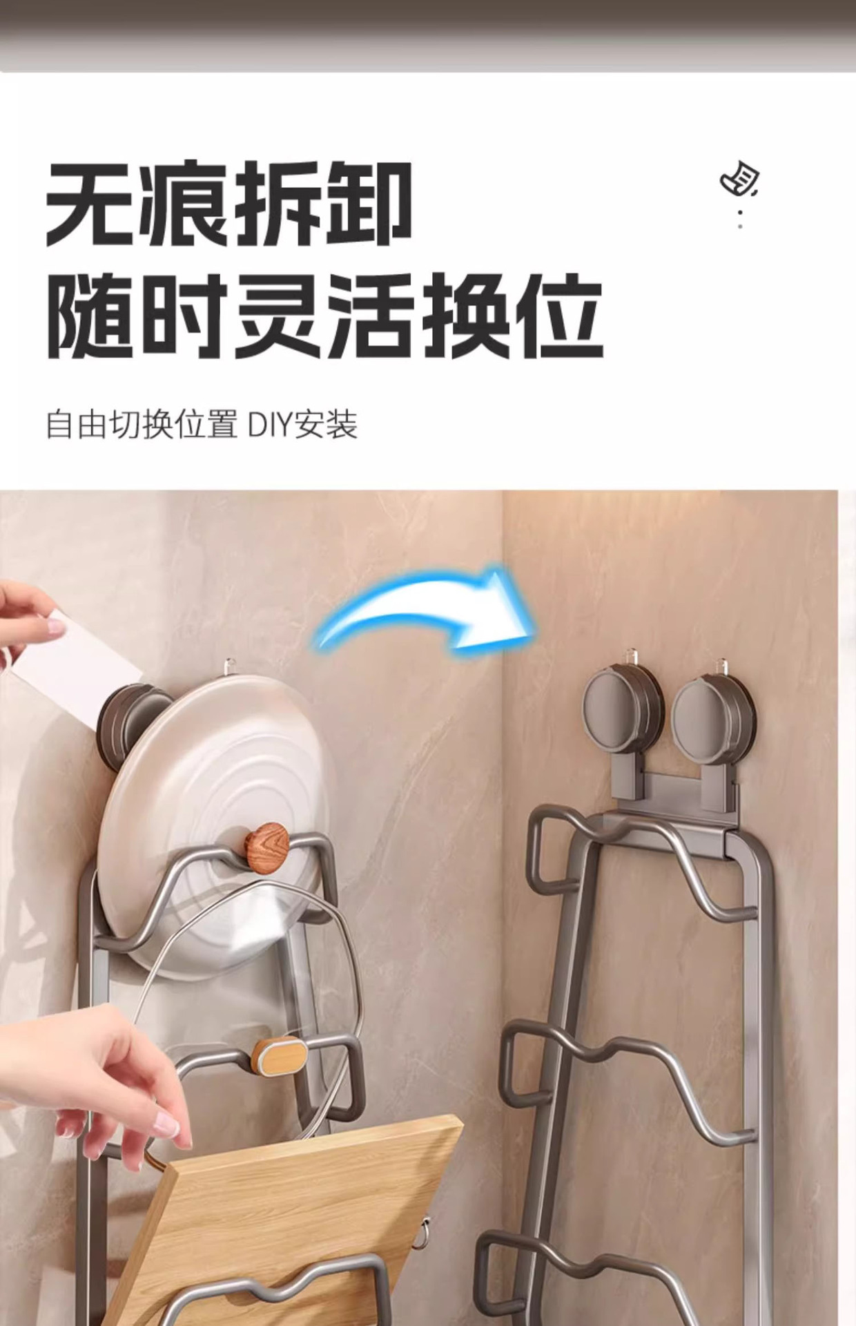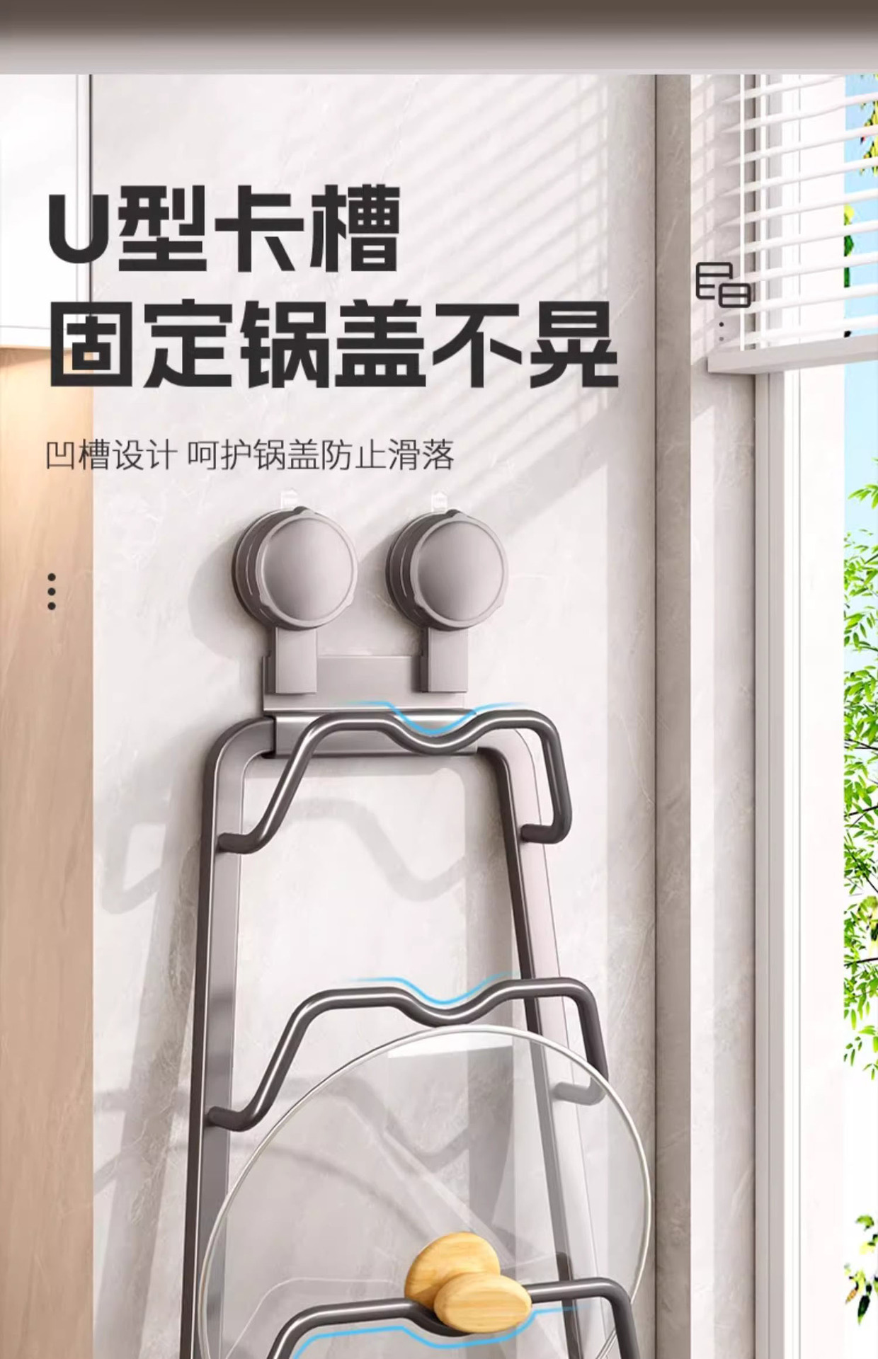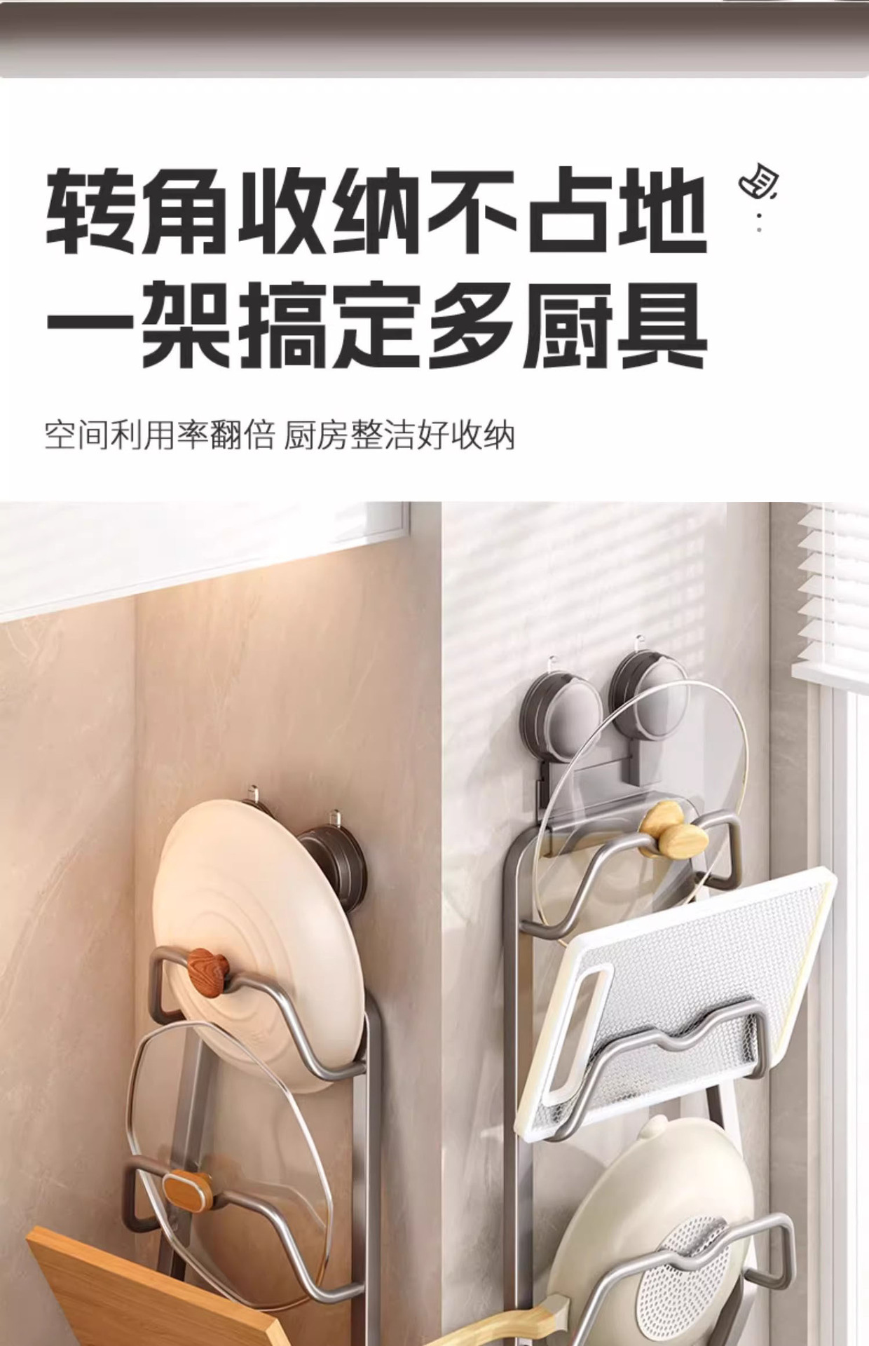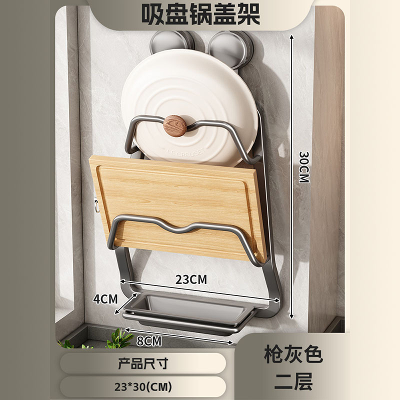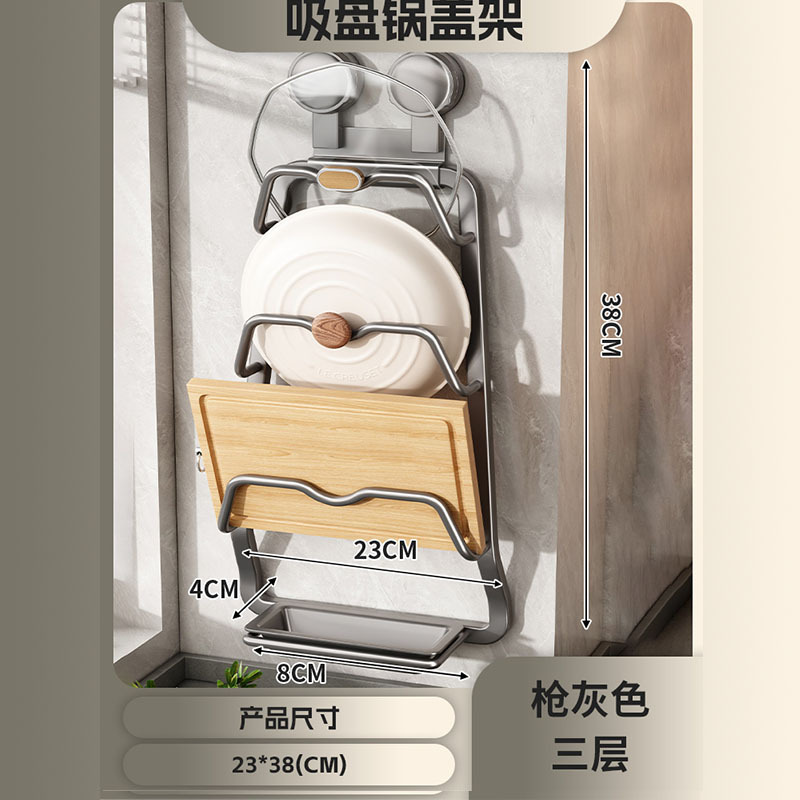 도마 도마 저장 인공물을 위한 흡입 냄비 커버 랙 펀치없는 벽걸이 형 다기능 주방 보관 선반