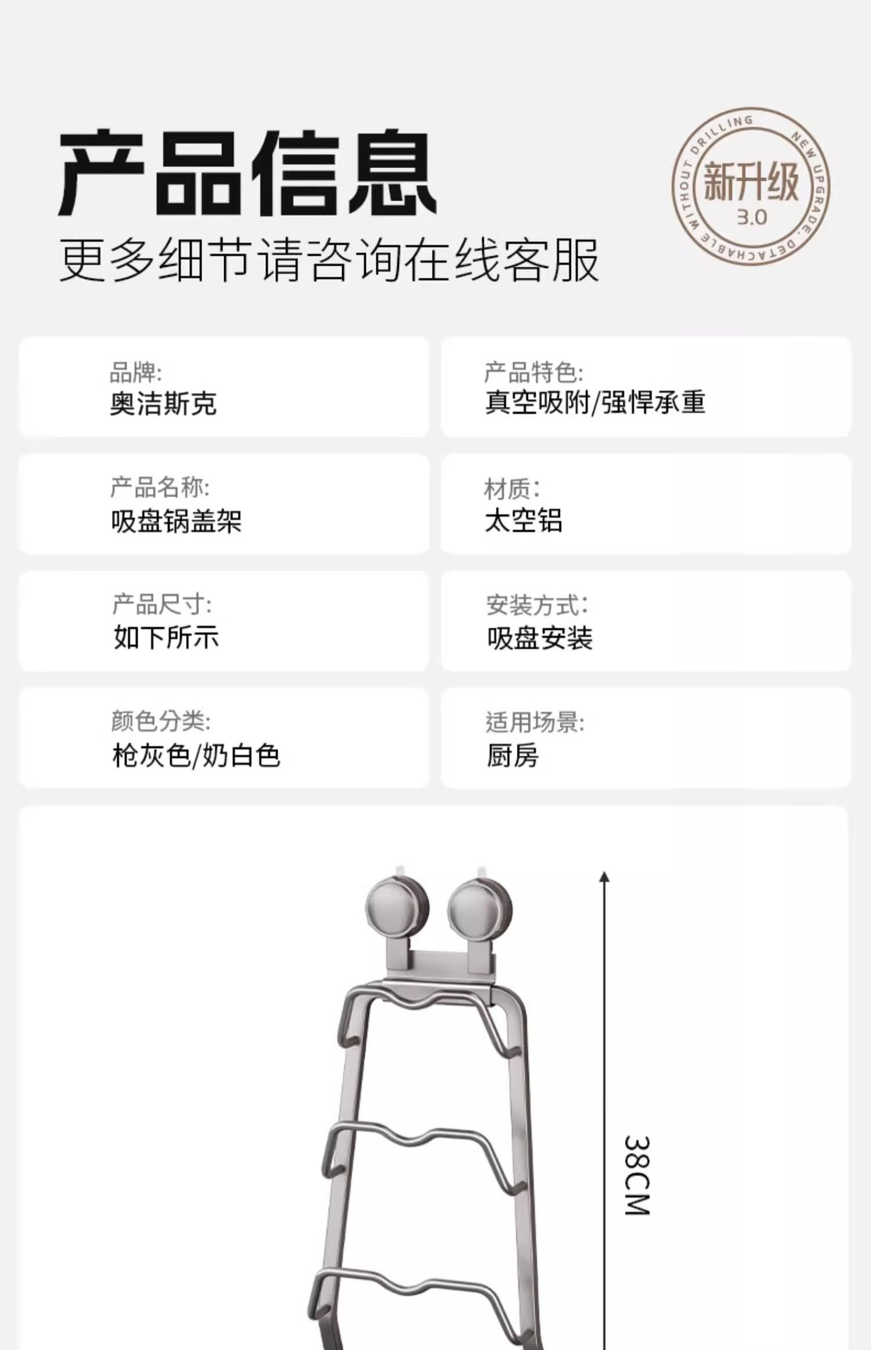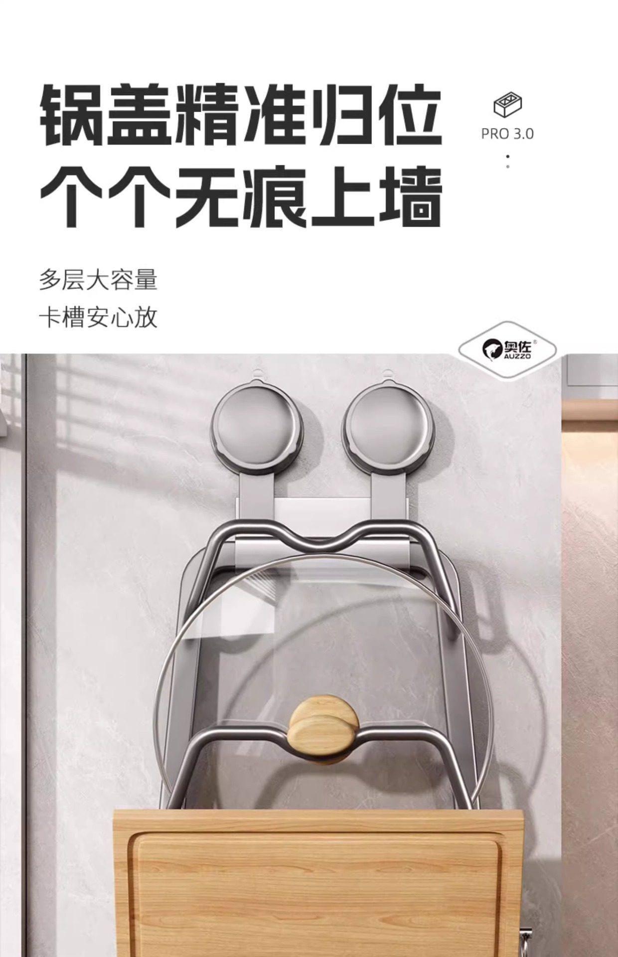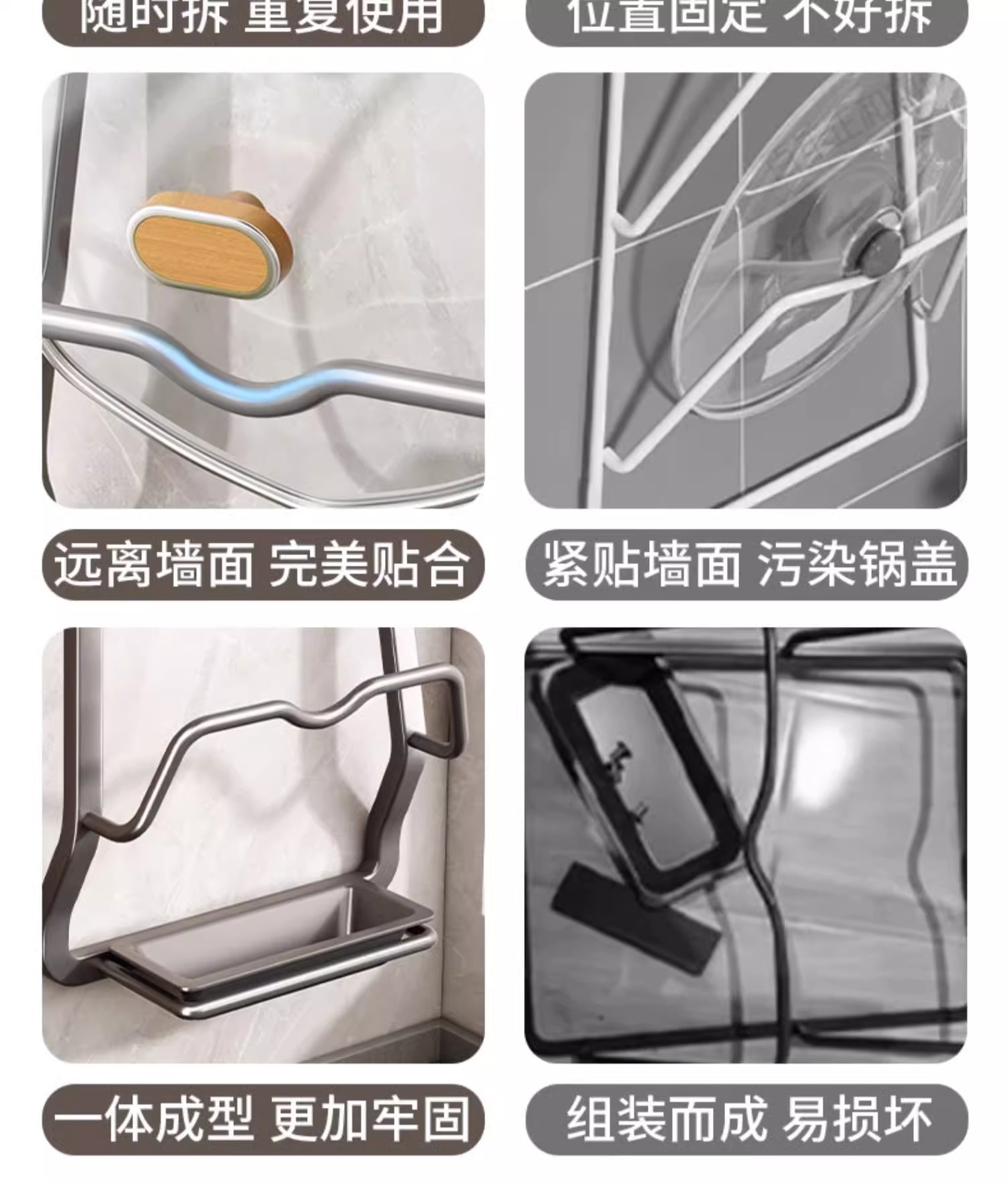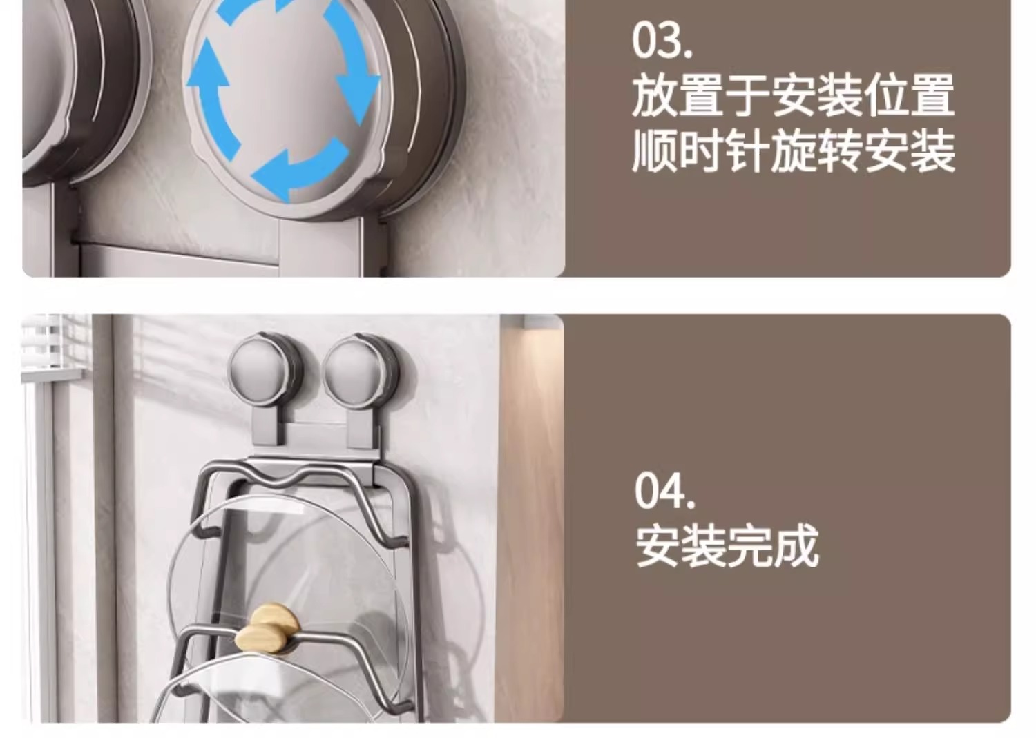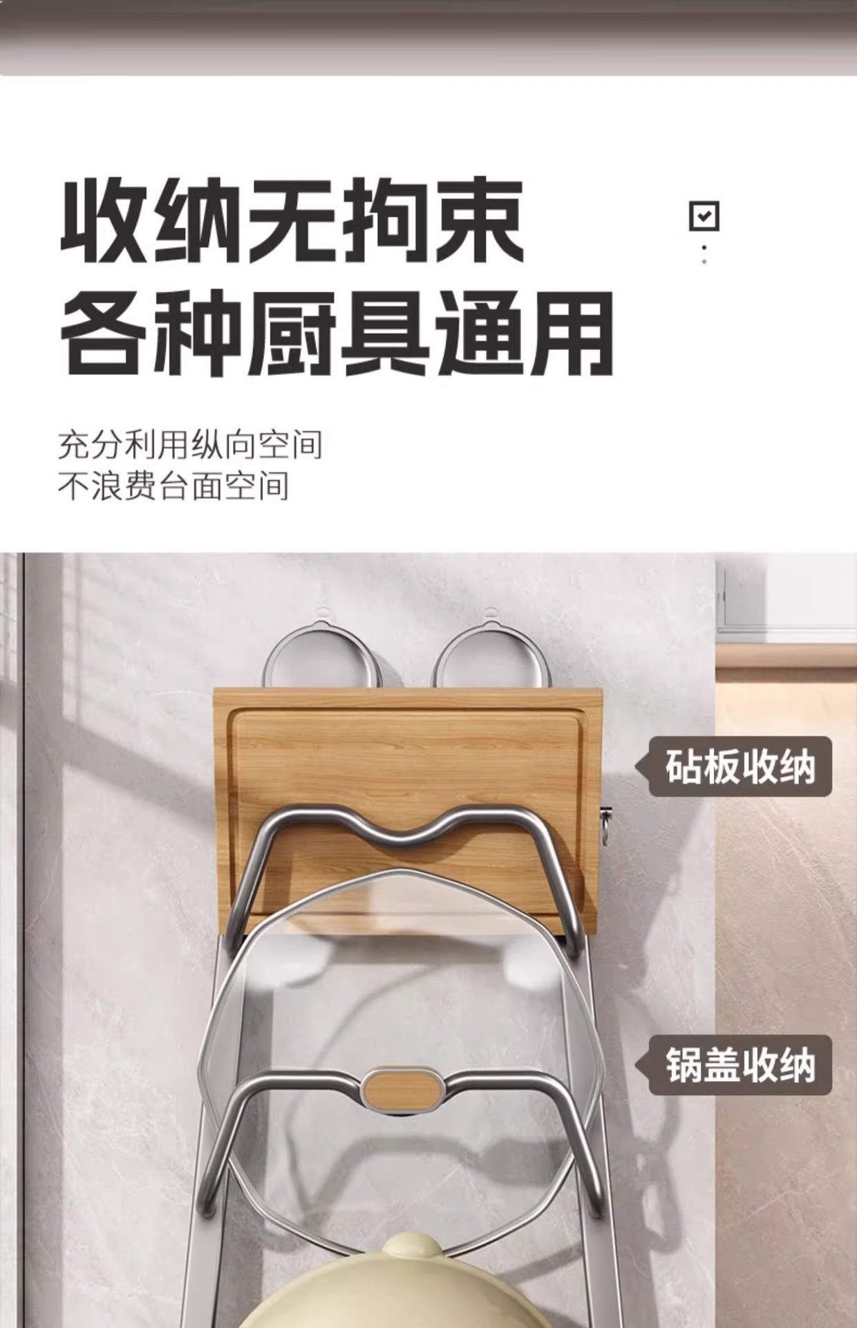 도마 도마 저장 인공물을 위한 흡입 냄비 커버 랙 펀치없는 벽걸이 형 다기능 주방 보관 선반