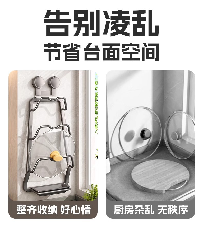 도마 도마 저장 인공물을 위한 흡입 냄비 커버 랙 펀치없는 벽걸이 형 다기능 주방 보관 선반스토어 가기