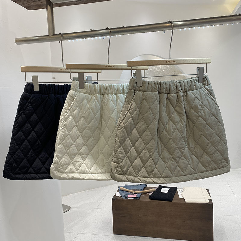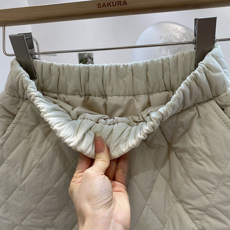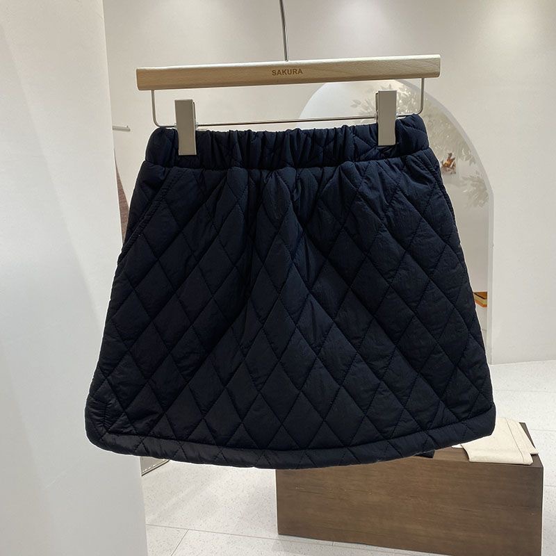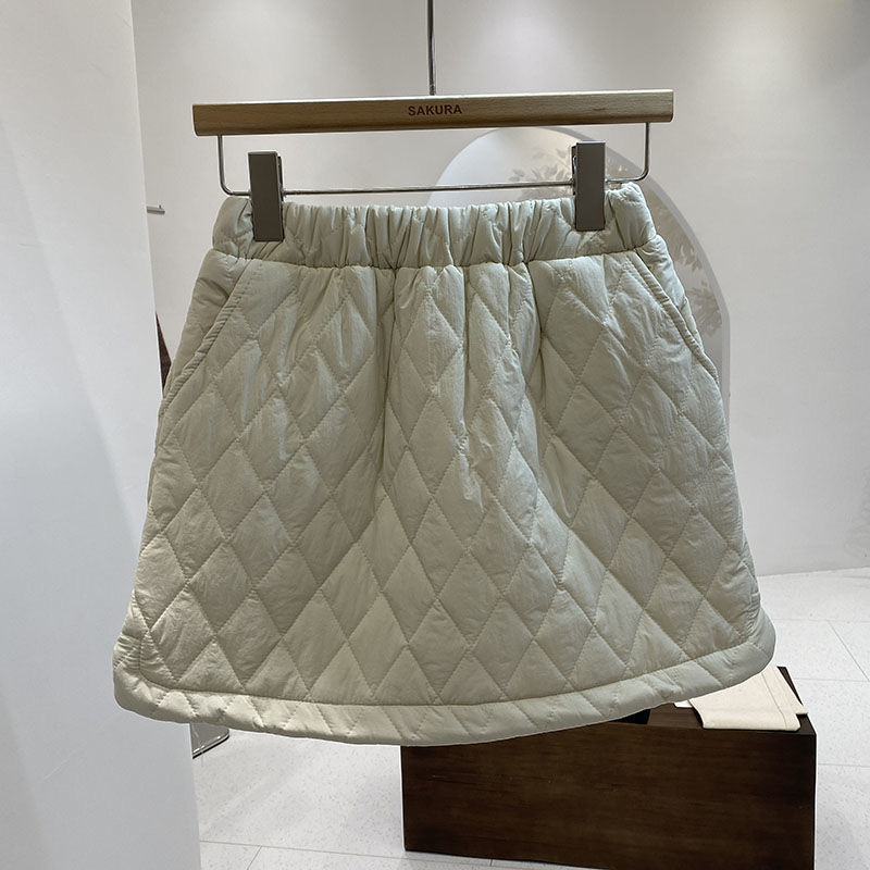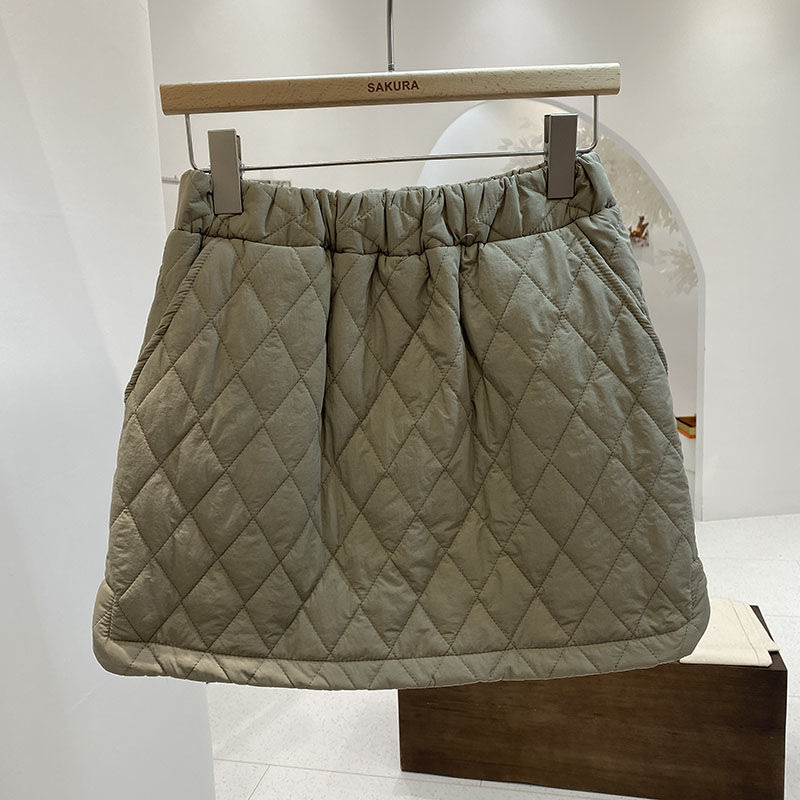 여자 겨울 새로운 두꺼운 스커트 2025 한국어 스타일 마름모 퀼트 노출 방지 탄성 하이 웨이스트 a 라인 스커트스토어 가기
