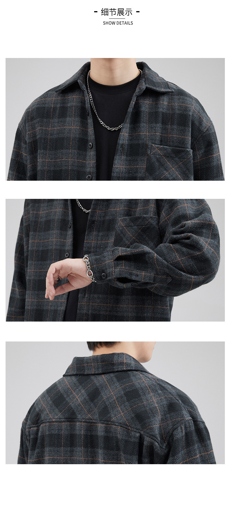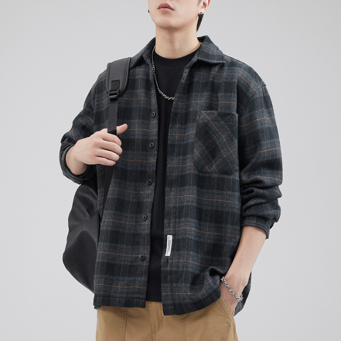 하이 엔드 라이트 성숙한 잘 생긴 격자 무늬 캐주얼 셔츠 남자 가을 샌딩 무거운 무게 느슨한 작업복 긴팔 셔츠 재킷 남자