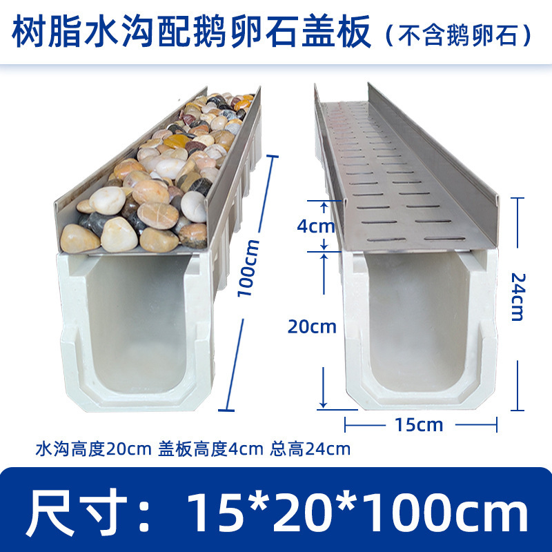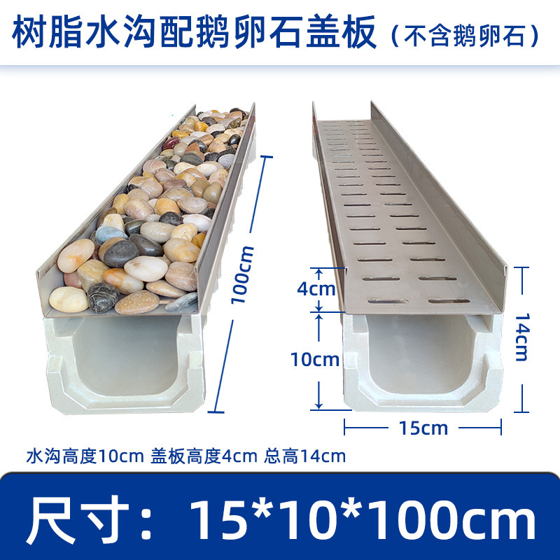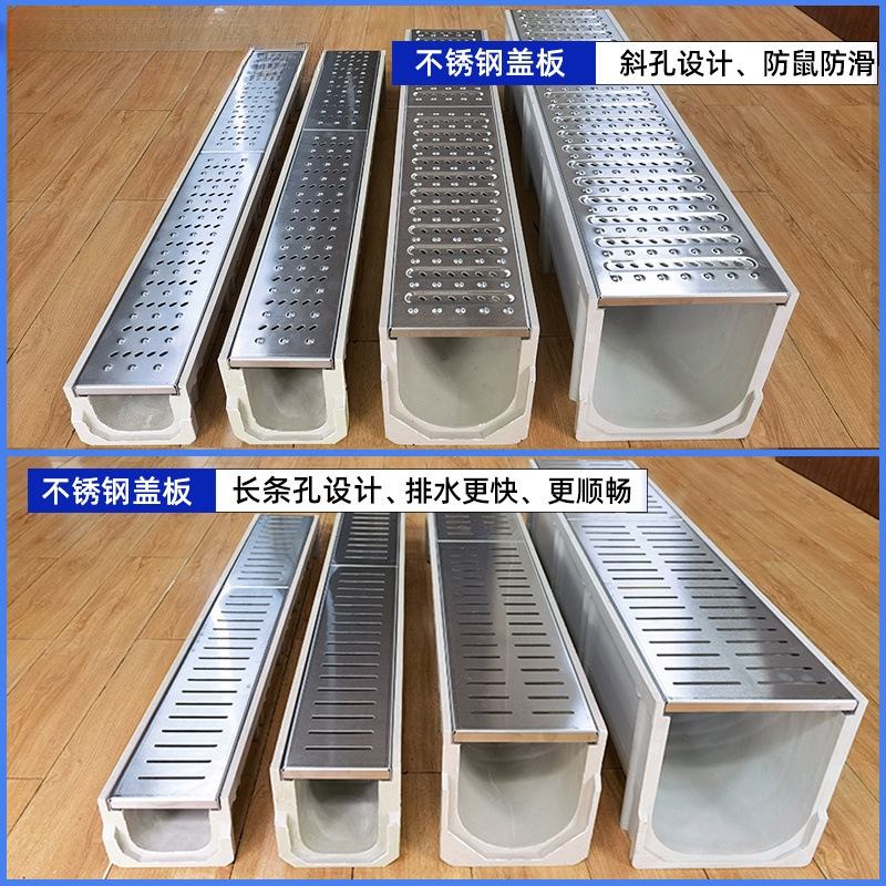 선형 완성 된 배수 도랑 스테인레스 스틸 조약돌 커버 주방 정원 하수도 안뜰 수지 트렌치 U 자형 홈
