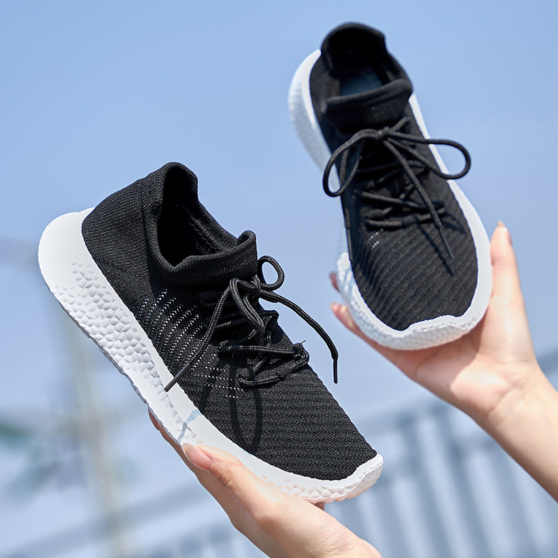 여성 신발 여름 플라이 니트 운동화 여성 통기성 캐주얼 한국식 Ins 올 매치 트렌디 화이트 슈즈 러닝 슈즈스토어 가기
