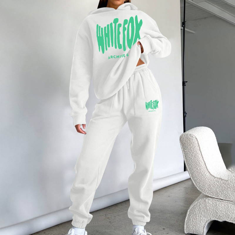 2024 국경을 넘는 유럽과 미국의 가을과 겨울 새로운 여성 어깨 소매 기모 후드 스웨터 세트 스포츠 레저 세트스토어 가기