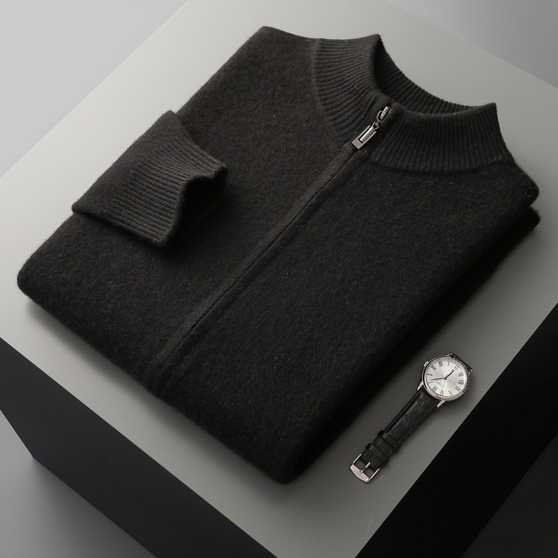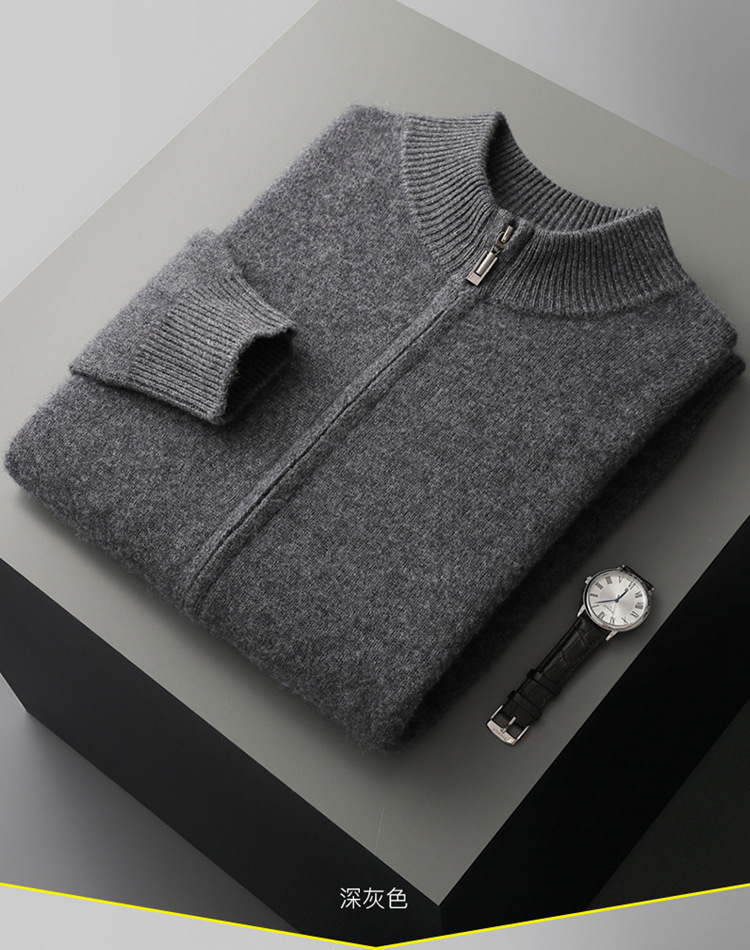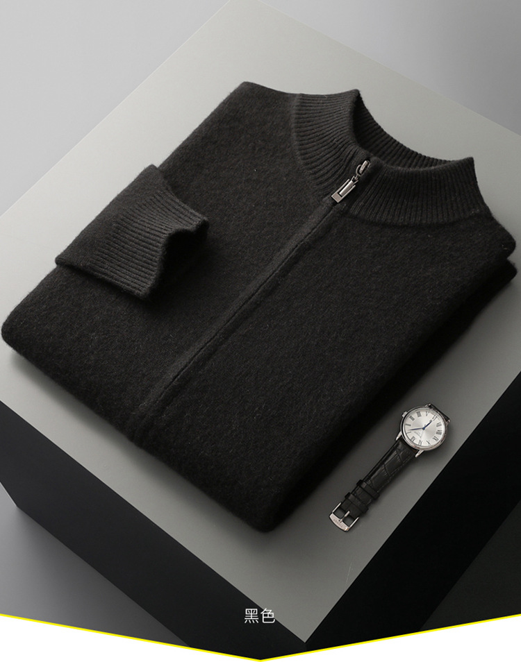 가을과 겨울 새로운 퓨어 울 니트 더블 스트랜드 두꺼운 스탠드 칼라 캐시미어 카디건 남자 올 매치 긴팔 캐시미어 재킷스토어 가기