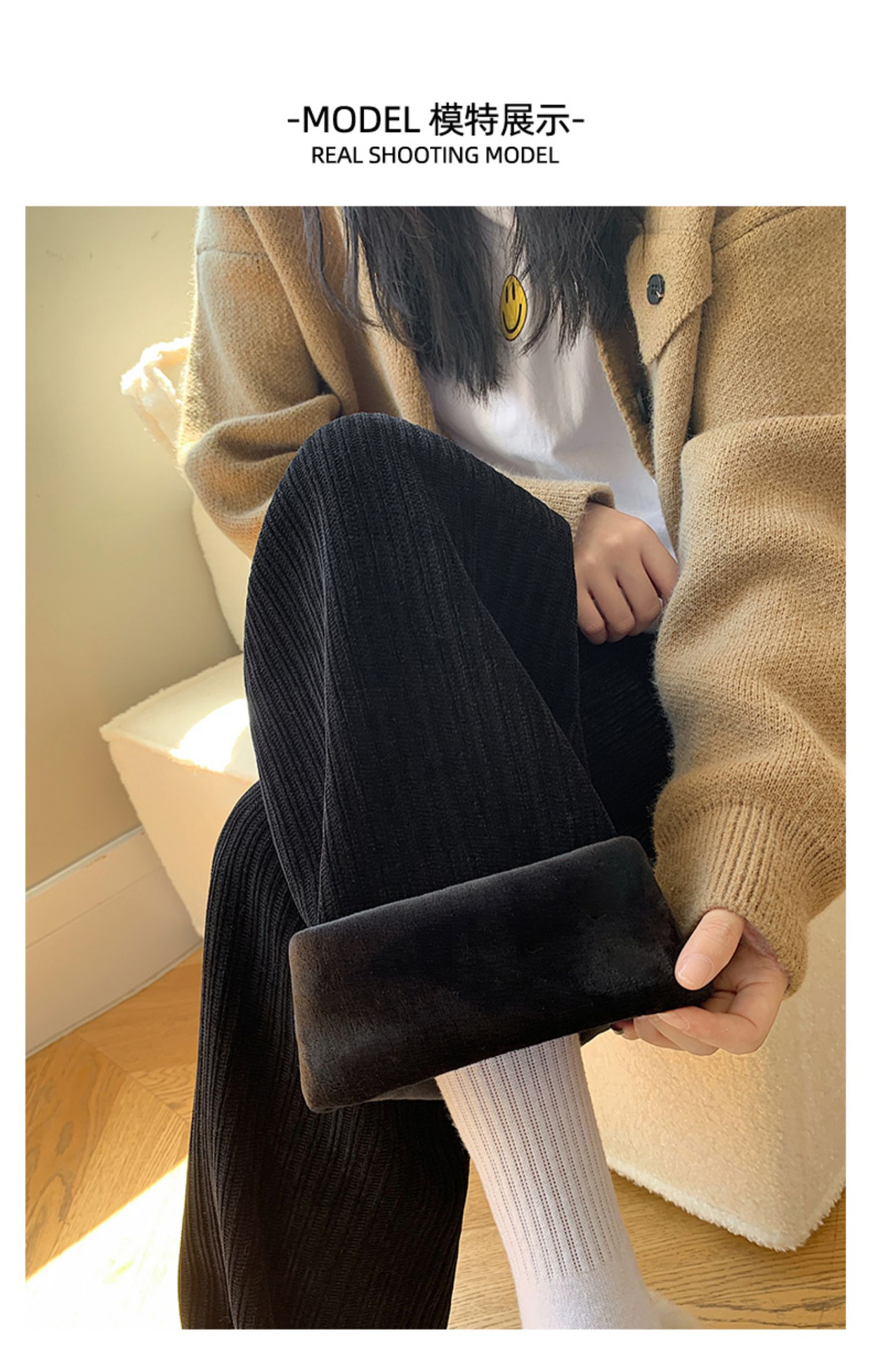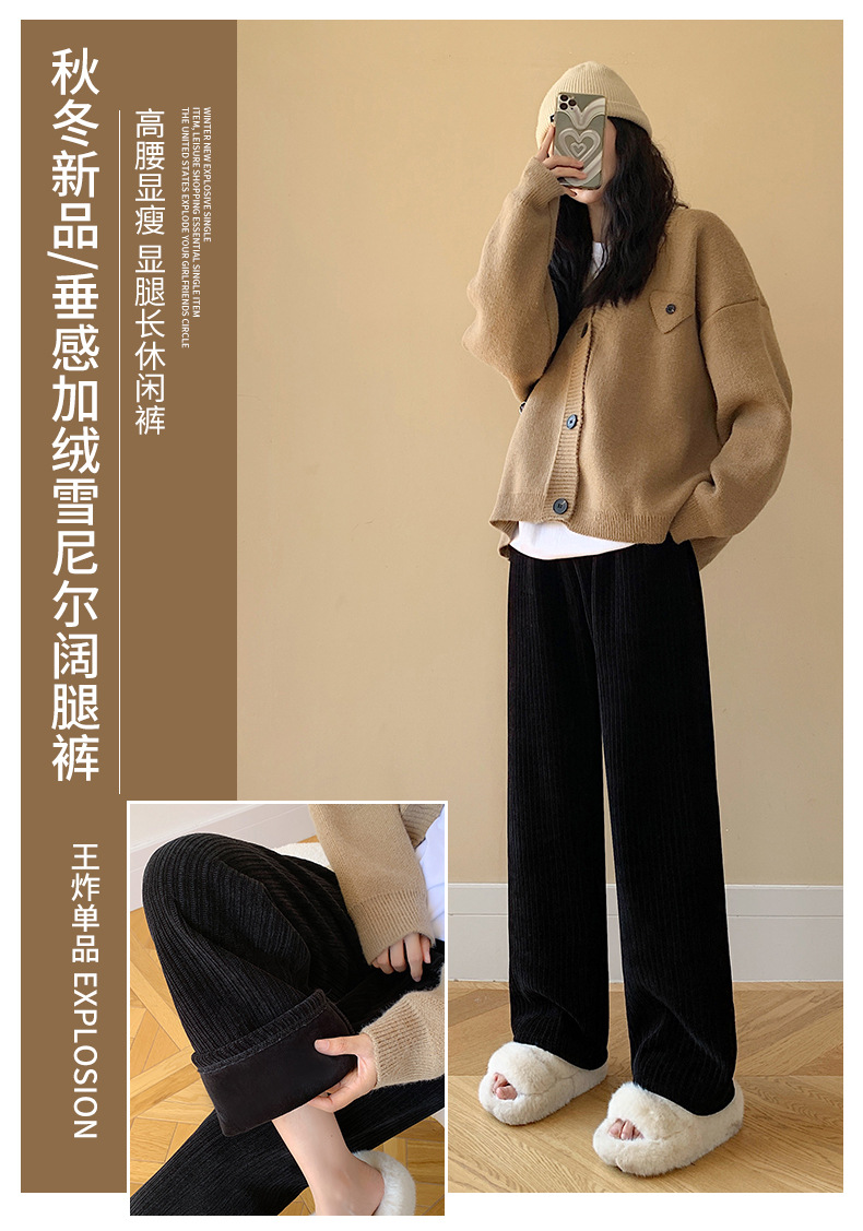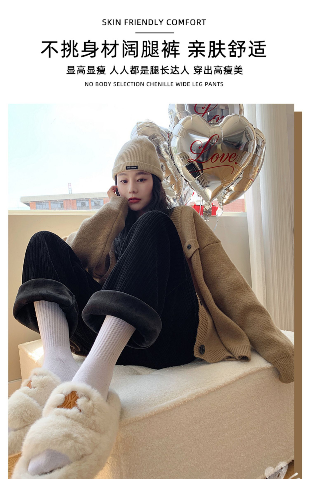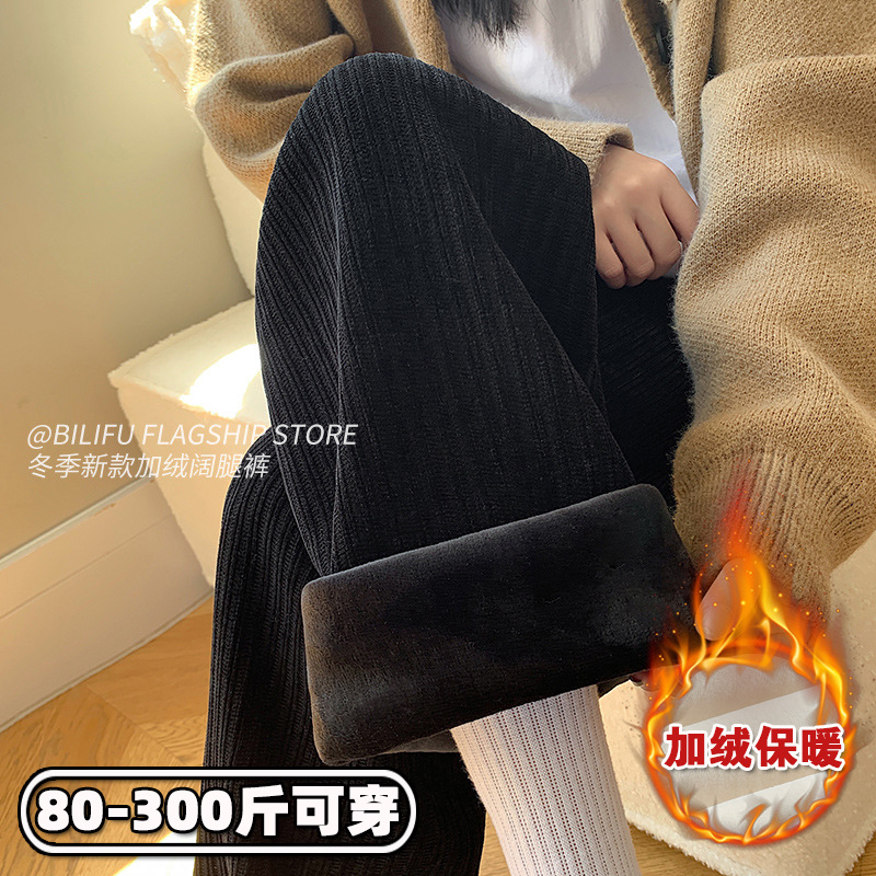 300kg 플러스 사이즈 셔닐 넓은 다리 바지 여성 가을/겨울 기모 높은 허리 느슨한 통통녀 슬림 스트레이트 캐주얼 바지 200스토어 가기