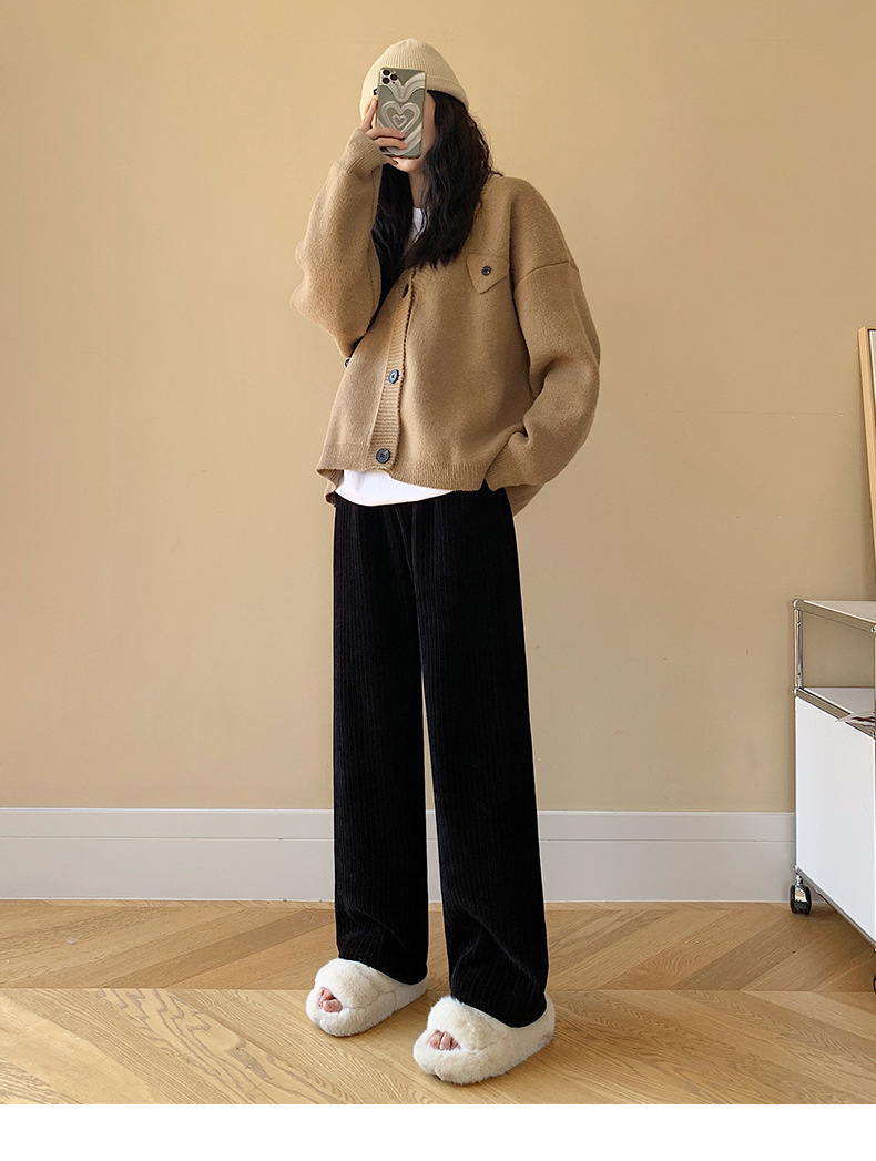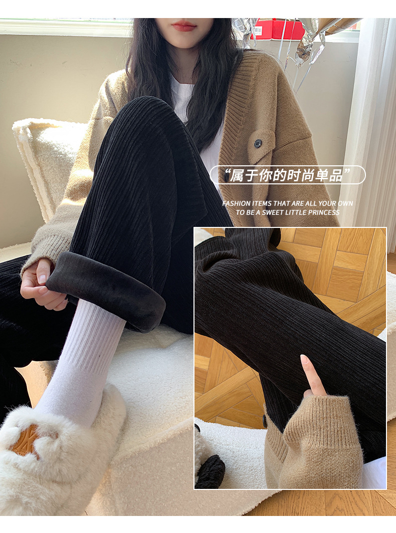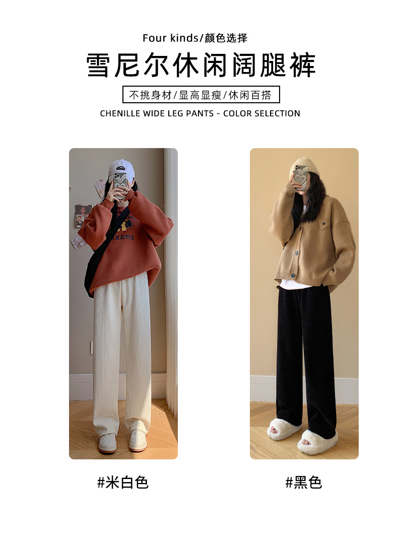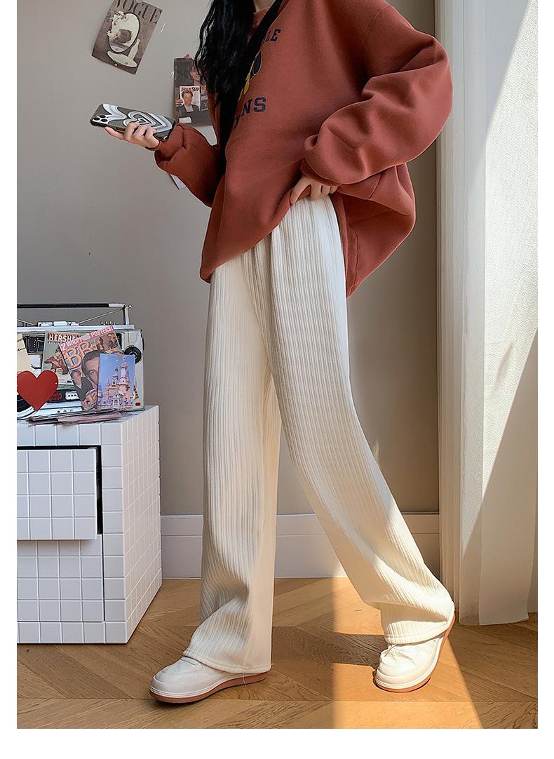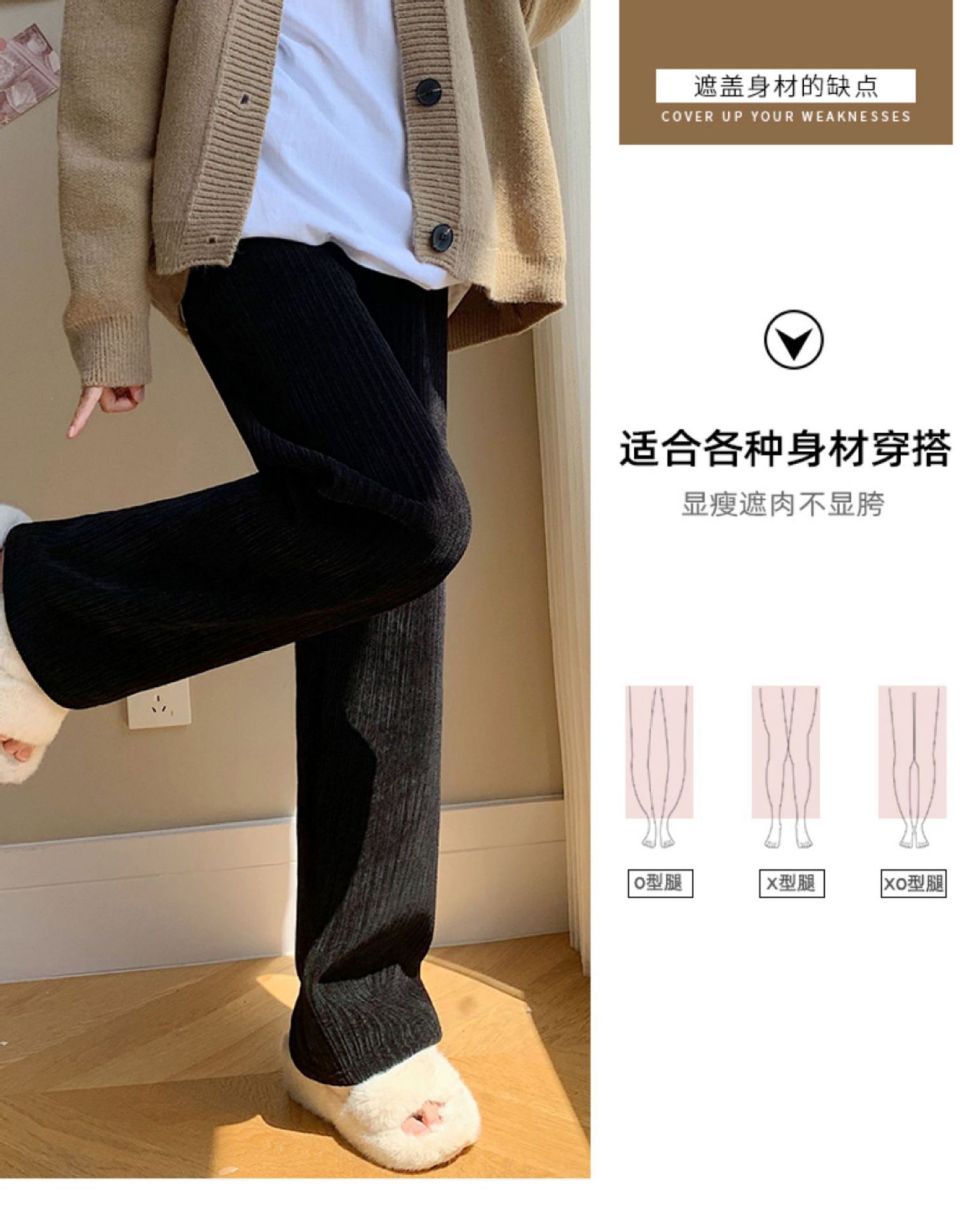 300kg 플러스 사이즈 셔닐 넓은 다리 바지 여성 가을/겨울 기모 높은 허리 느슨한 통통녀 슬림 스트레이트 캐주얼 바지 200스토어 가기