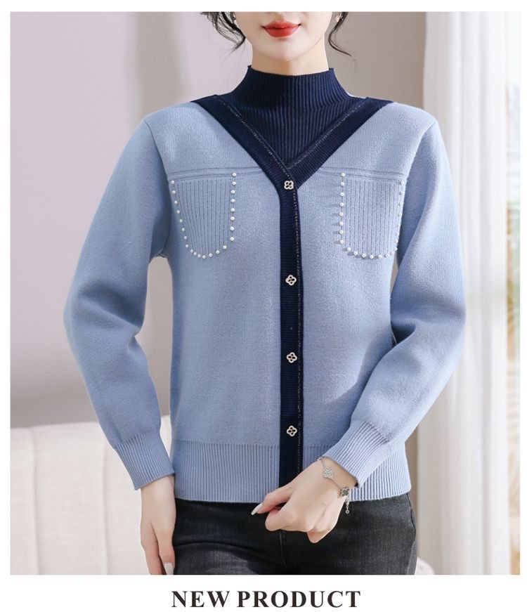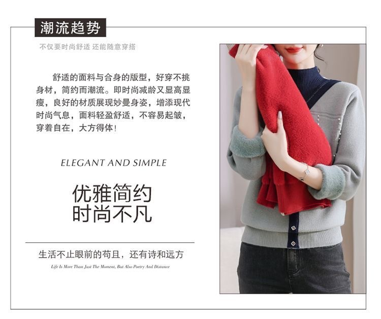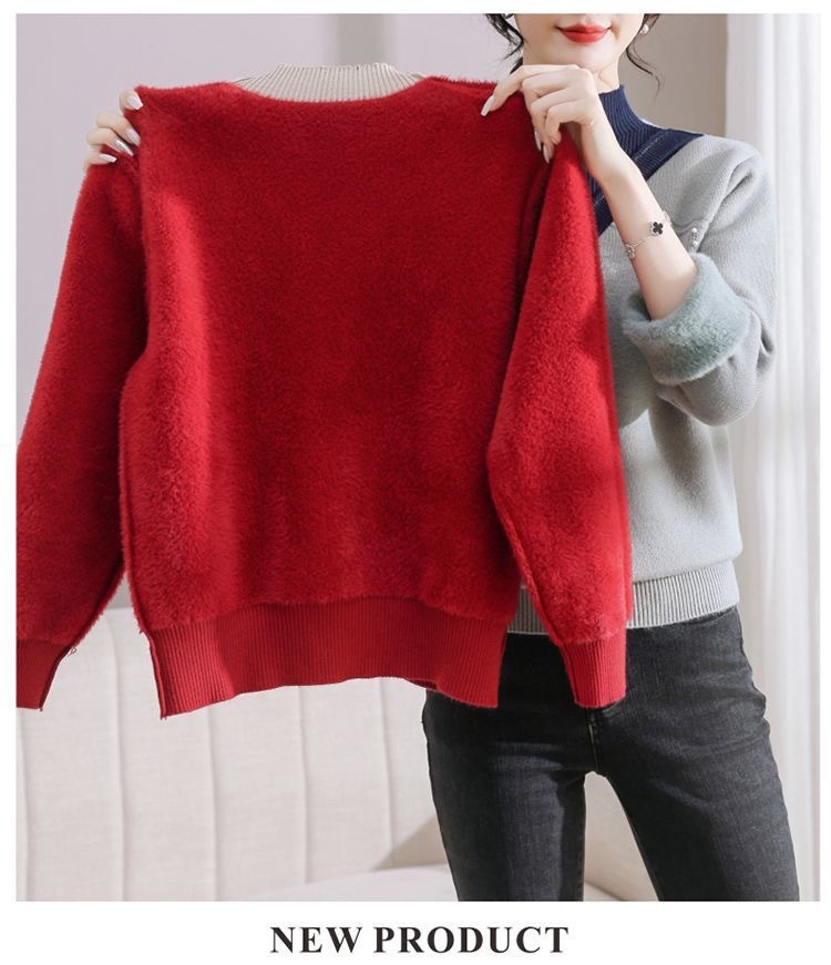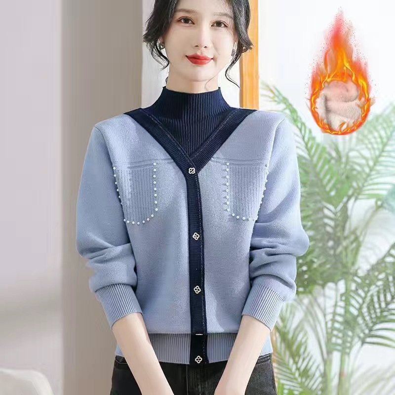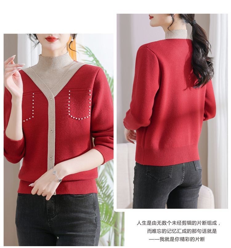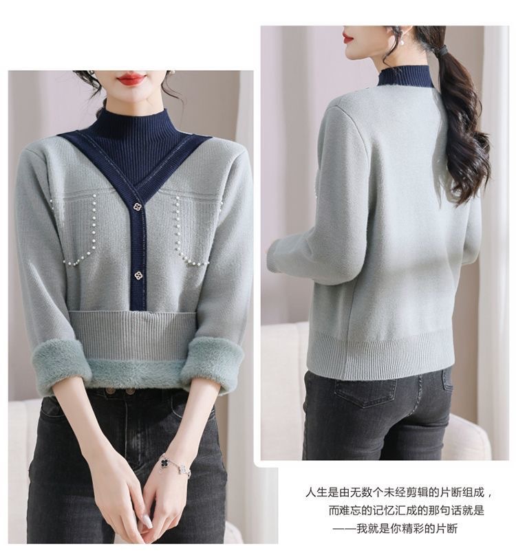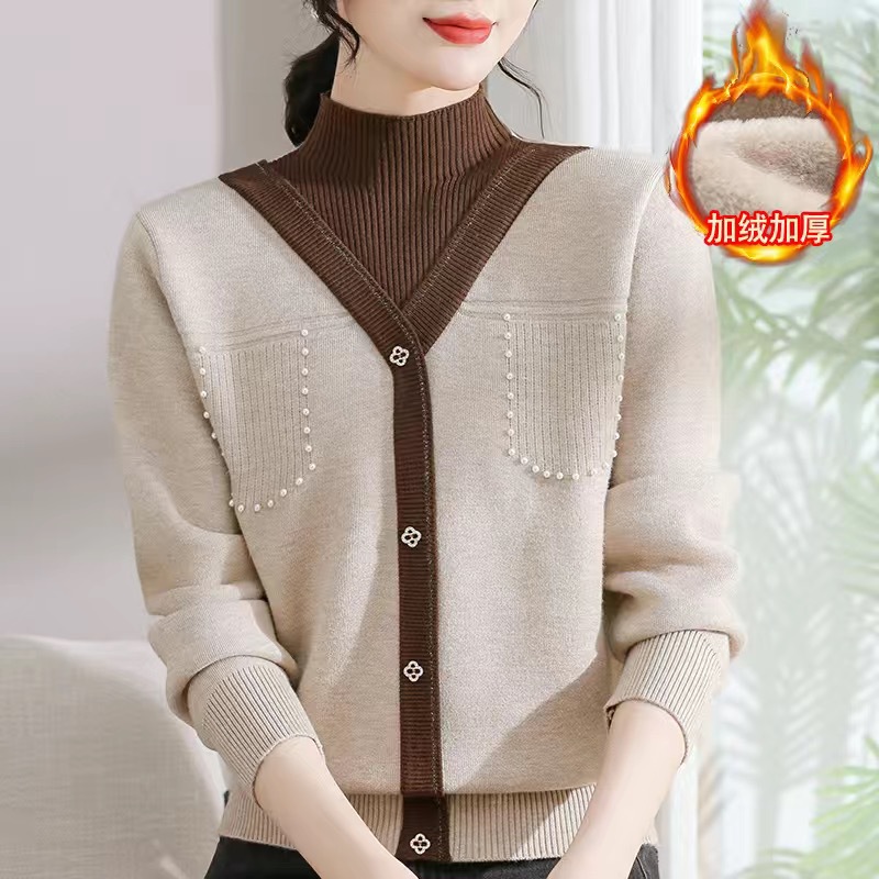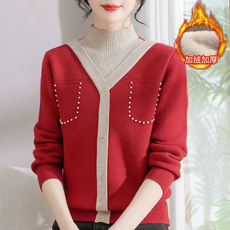 겨울 여성 니트 셔츠 중년 외국식 어머니의 기모 스웨터 두꺼운 여성베이스 셔츠 시어머니 따뜻한 탑
