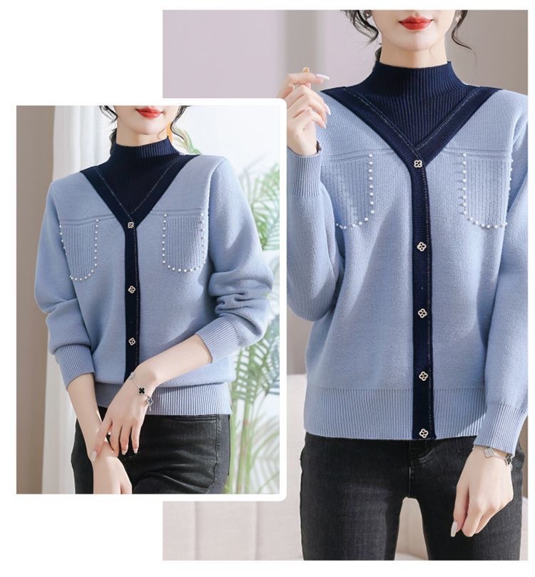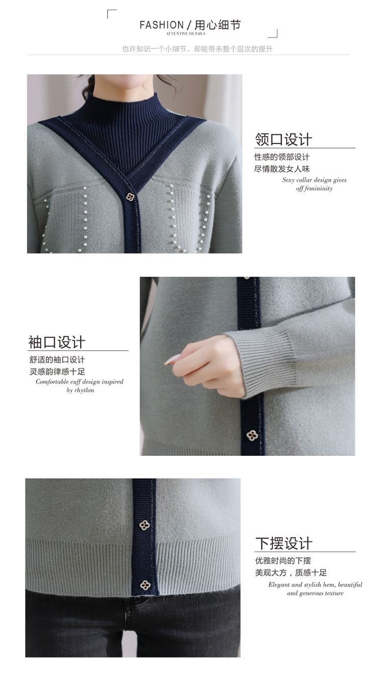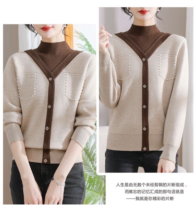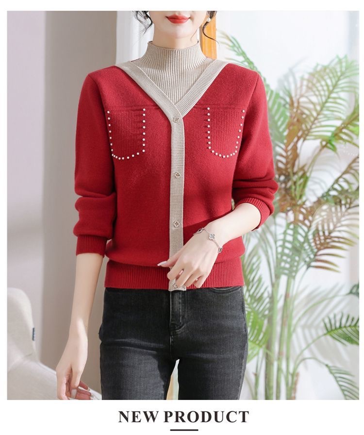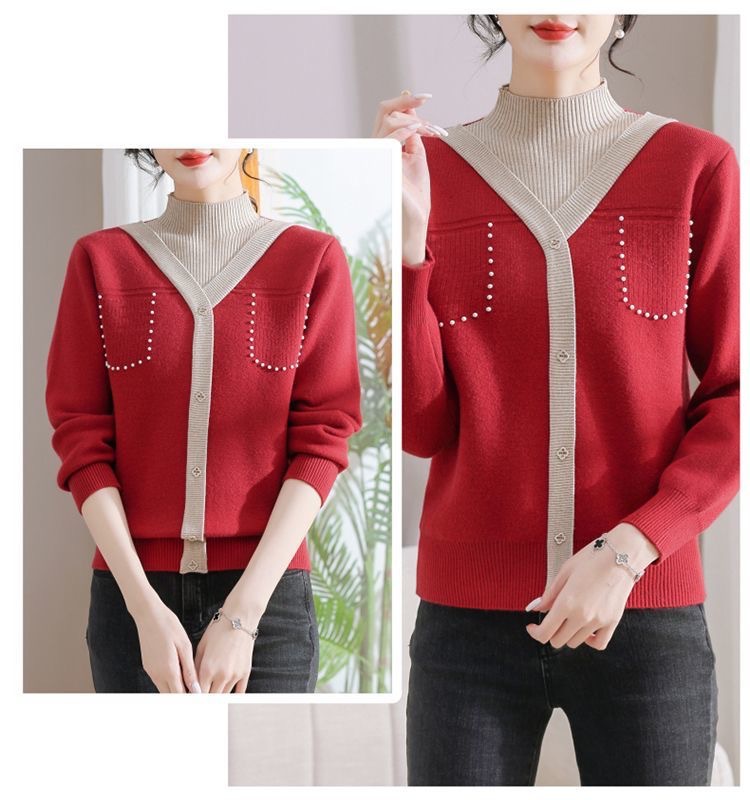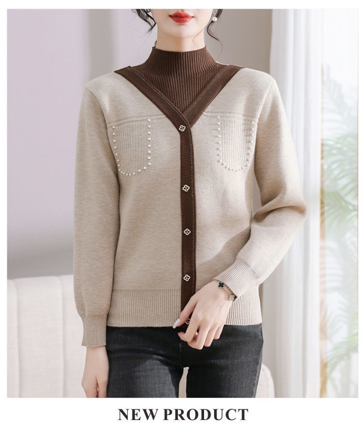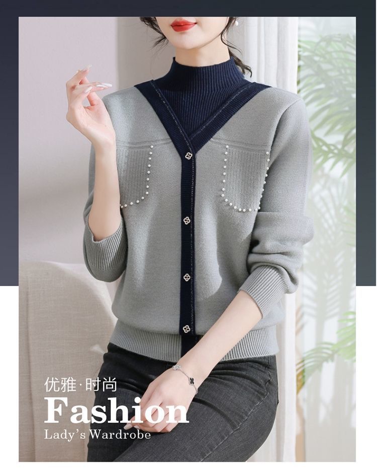 겨울 여성 니트 셔츠 중년 외국식 어머니의 기모 스웨터 두꺼운 여성베이스 셔츠 시어머니 따뜻한 탑