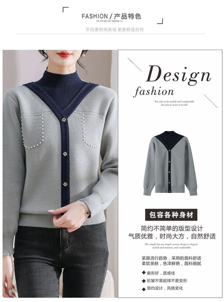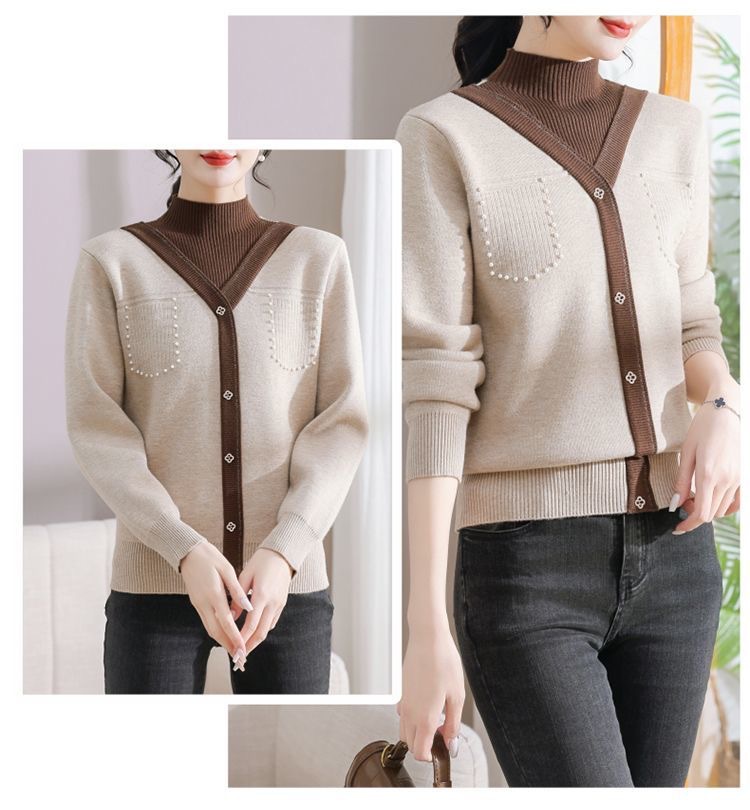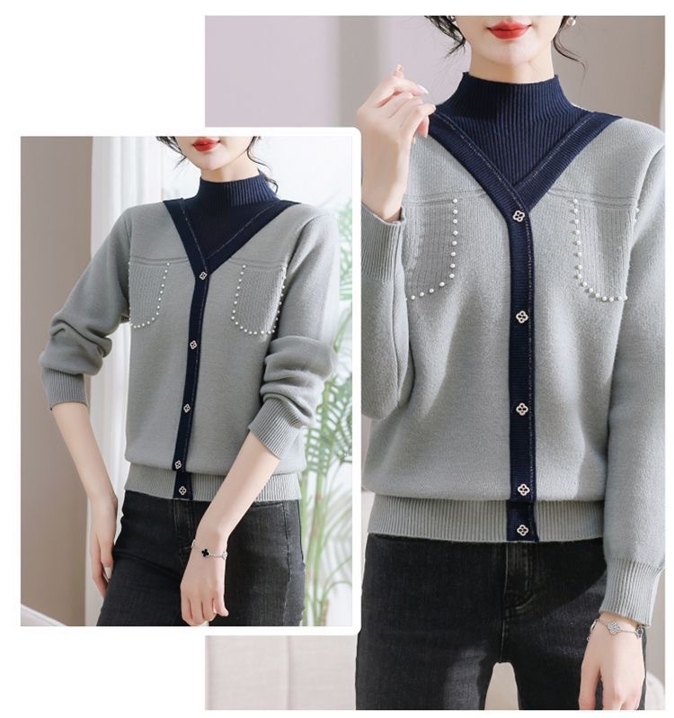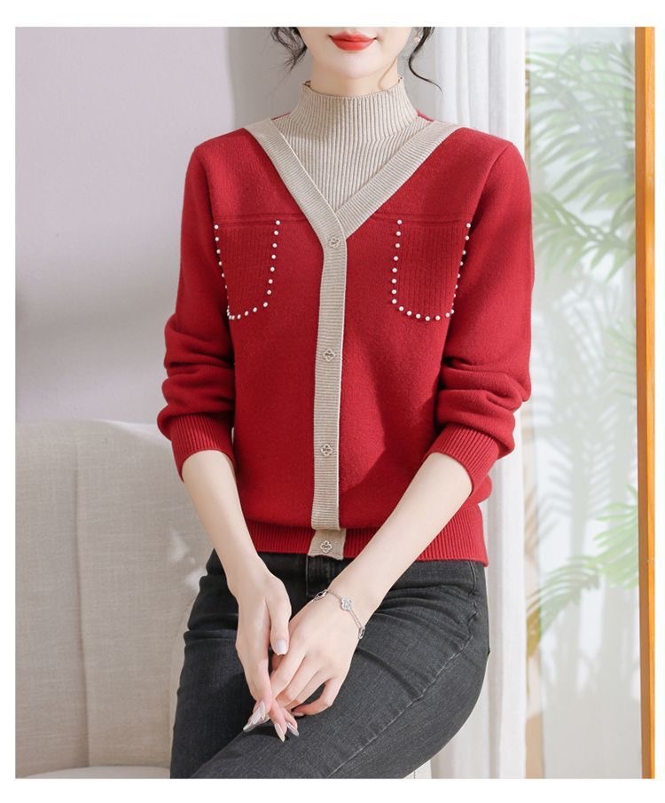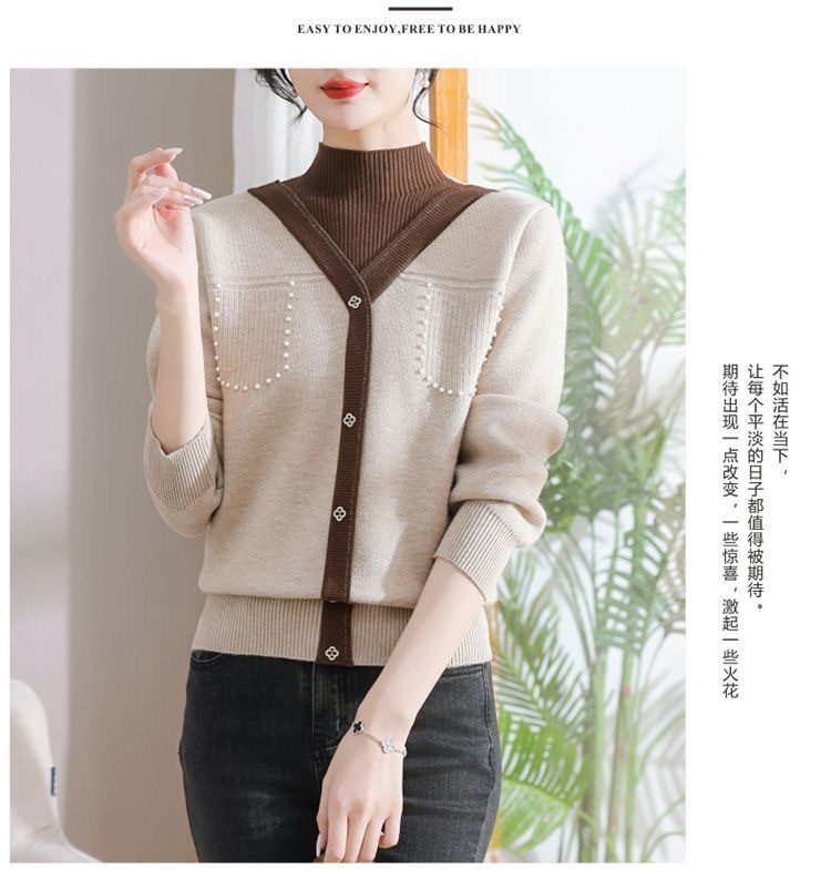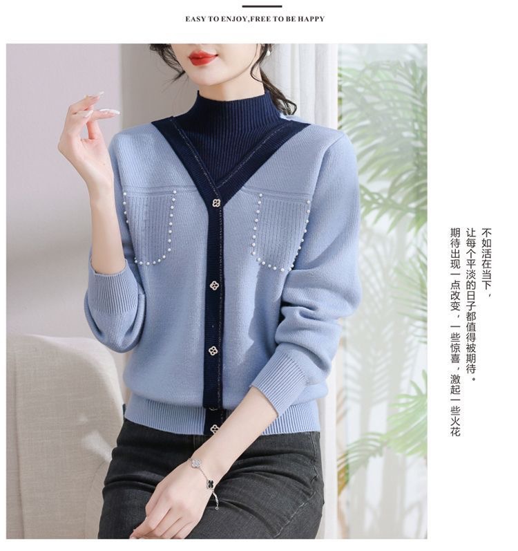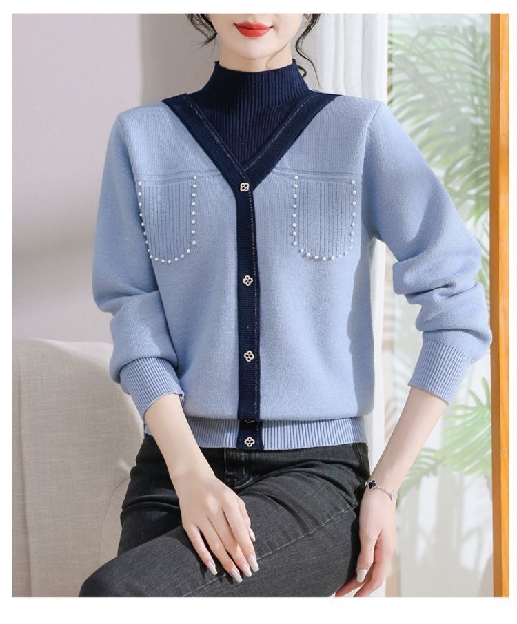 겨울 여성 니트 셔츠 중년 외국식 어머니의 기모 스웨터 두꺼운 여성베이스 셔츠 시어머니 따뜻한 탑