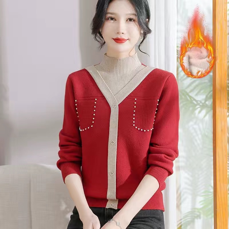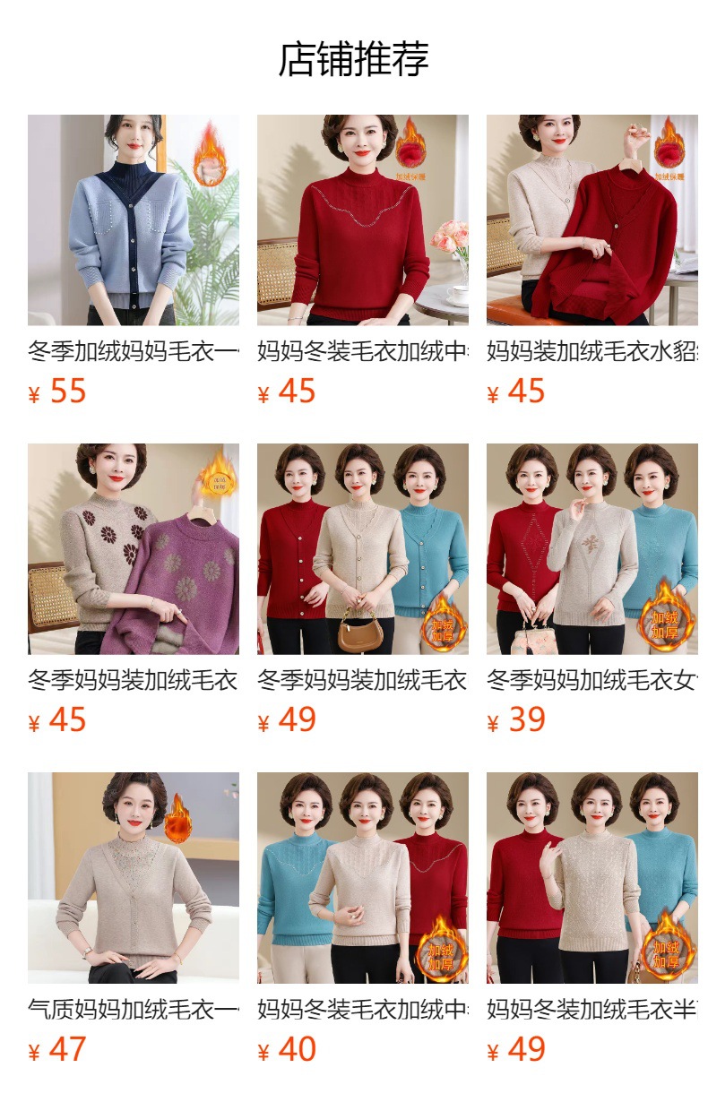 겨울 여성 니트 셔츠 중년 외국식 어머니의 기모 스웨터 두꺼운 여성베이스 셔츠 시어머니 따뜻한 탑스토어 가기