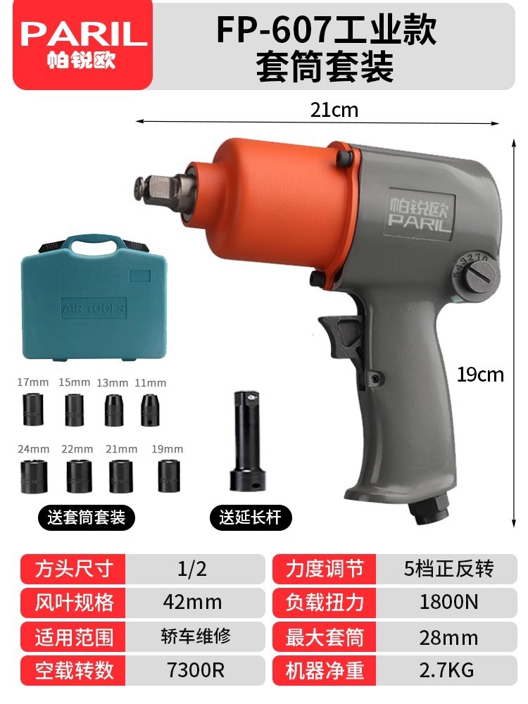 • 산업용 전문 1/2 공압 공기 대포 180kg 고토크 + 확장 슬리브 조합 세트..