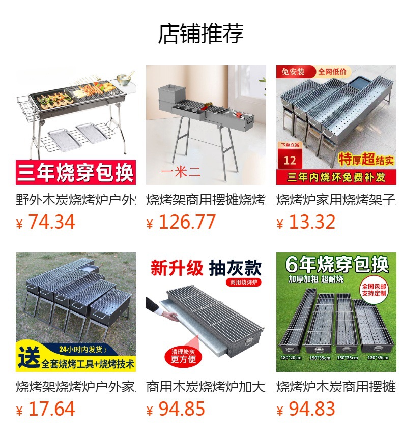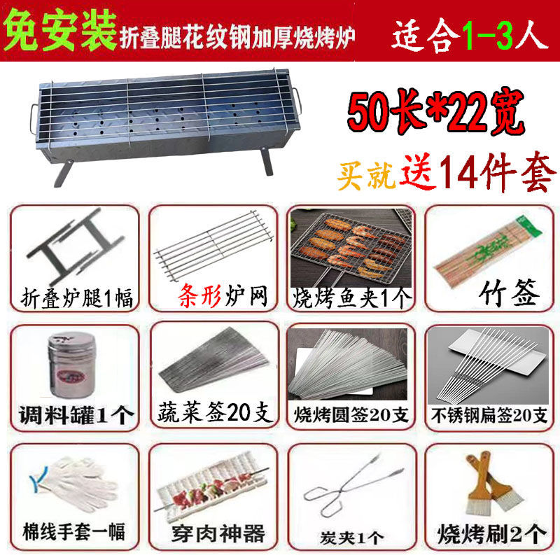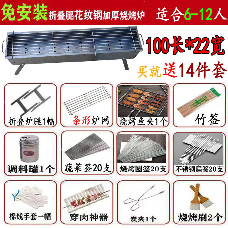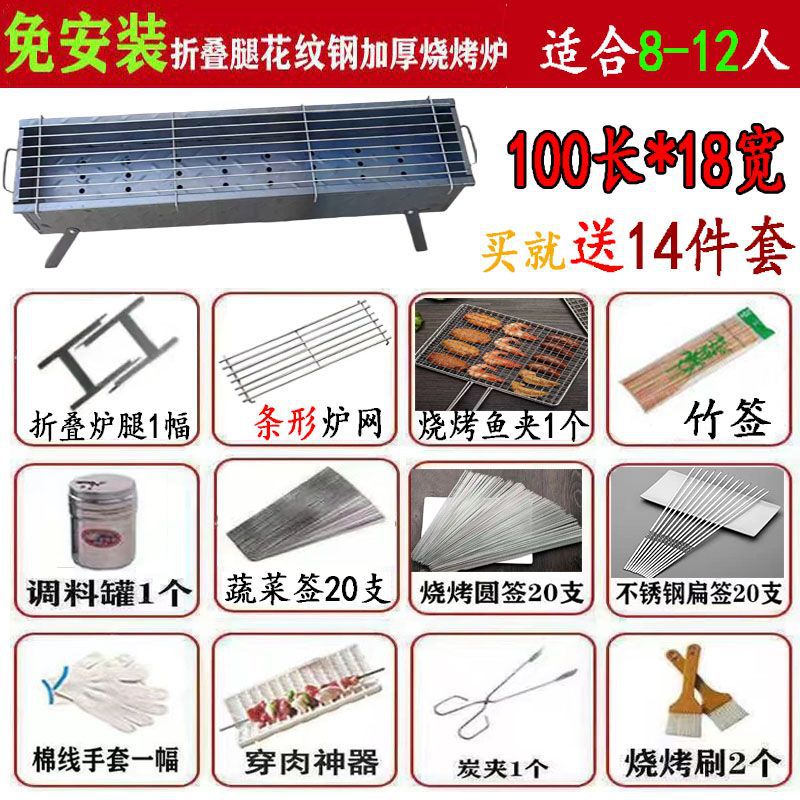 두꺼운 바베큐 그릴 바베큐 그릴 가정용 야외 숯 바베큐 도구 휴대용 야외 그릴 선반 풀 세트 스토브스토어 가기