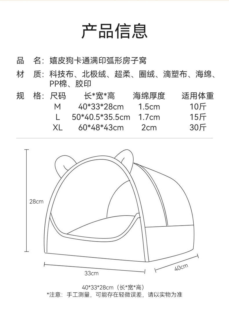 가을과 겨울 개 중소형 개 입체 작은 곰 곡선 집 사육장 따뜻한 두꺼운 고양이 둥지 큰 개 애완 동물 둥지