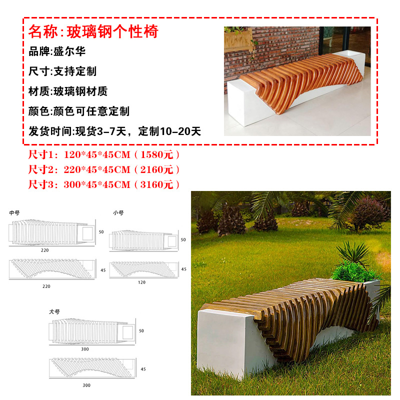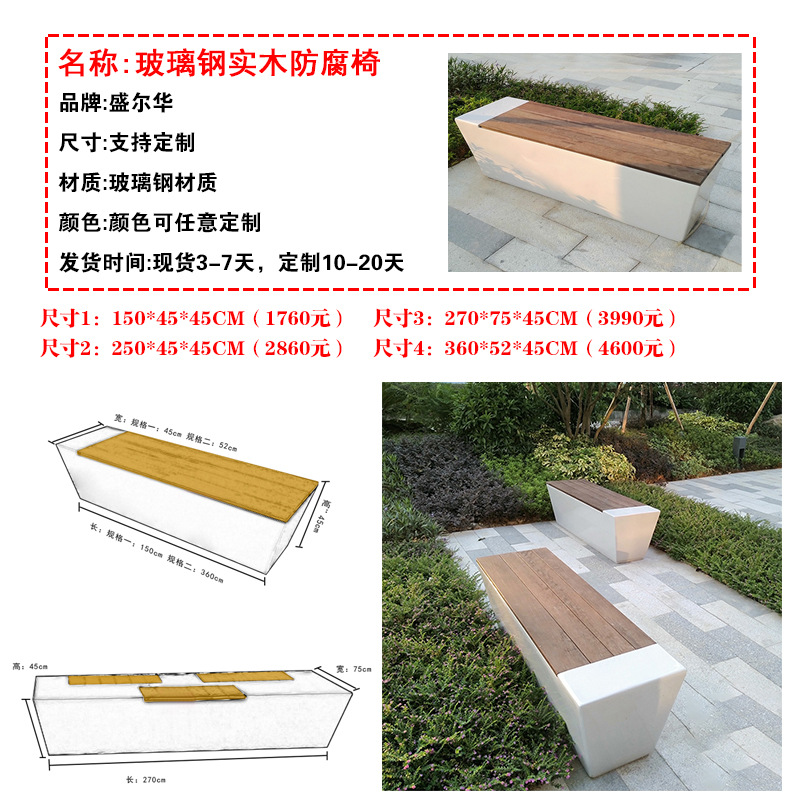 유리섬유 의자 야외 쇼핑몰 원목 방부목 공공 좌석 벤치 쇼핑몰 레저 의자 맞춤 제작