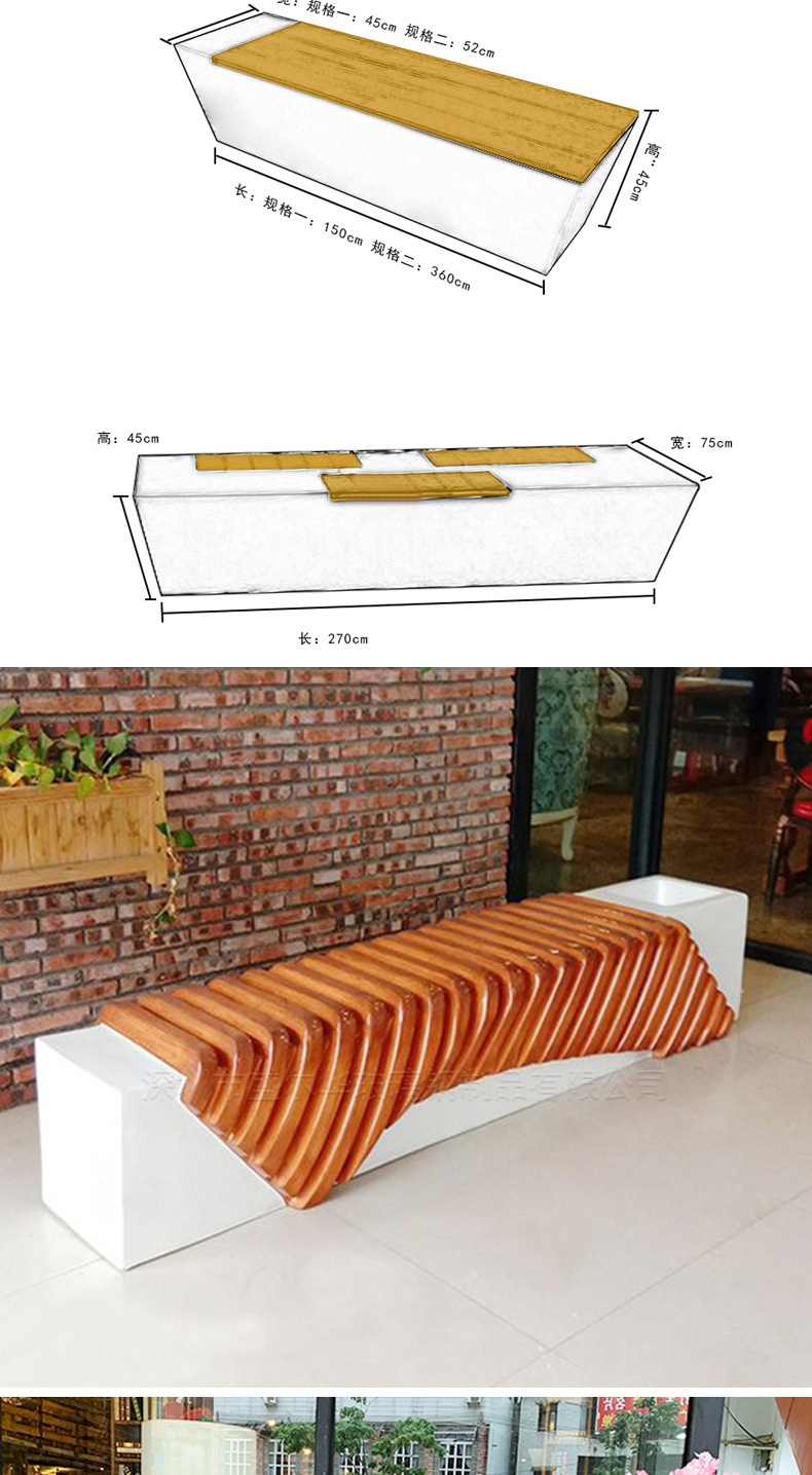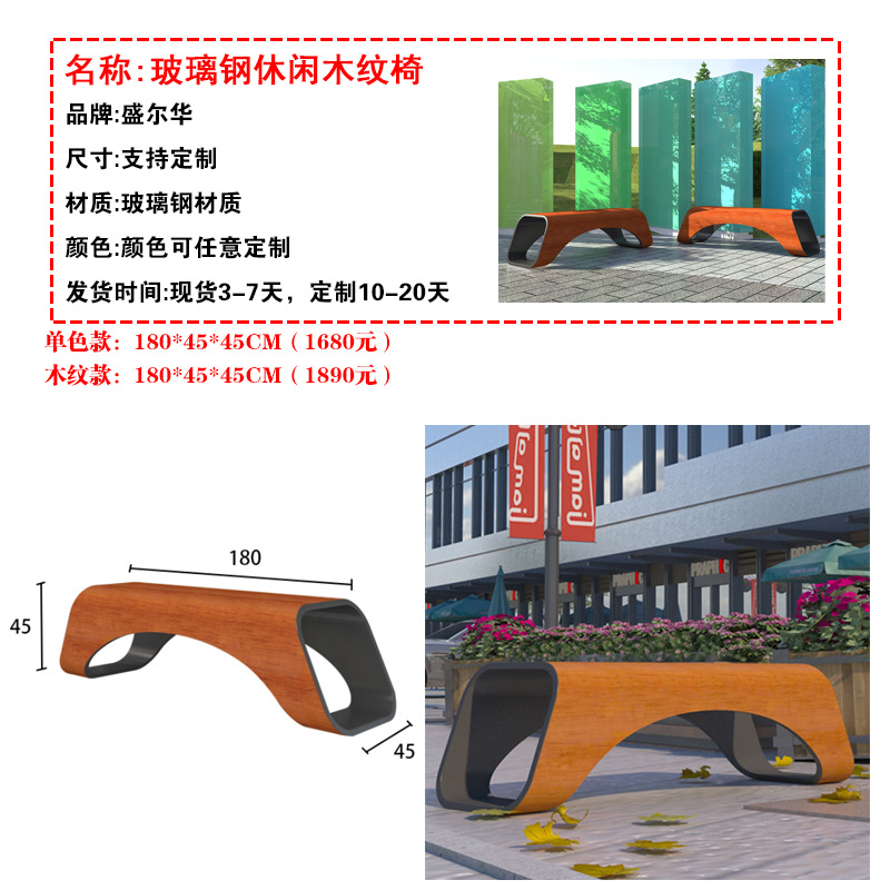 유리섬유 의자 야외 쇼핑몰 원목 방부목 공공 좌석 벤치 쇼핑몰 레저 의자 맞춤 제작스토어 가기