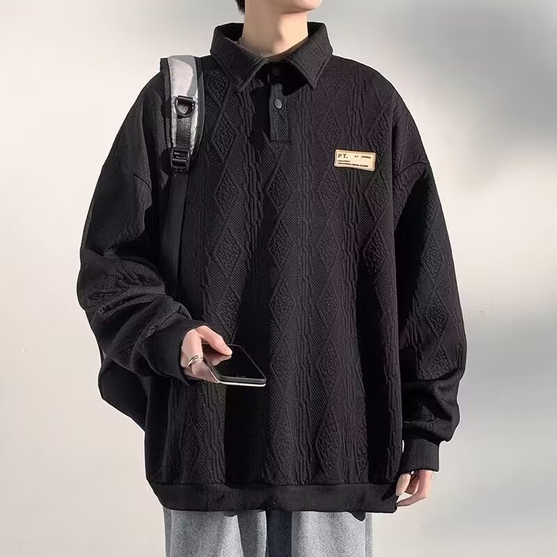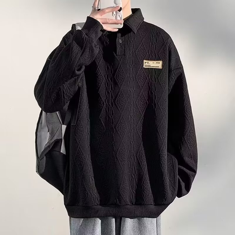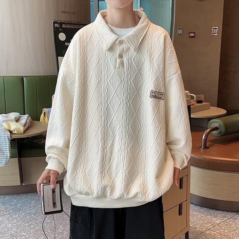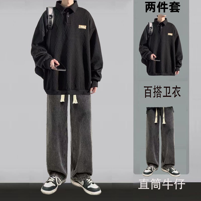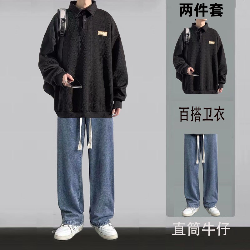 대학 스타일 캐주얼 세트 소년 봄과 가을 긴 소매 스웨터 코트 세련된 느슨한 폴로 셔츠 세트와 잘 생긴스토어 가기