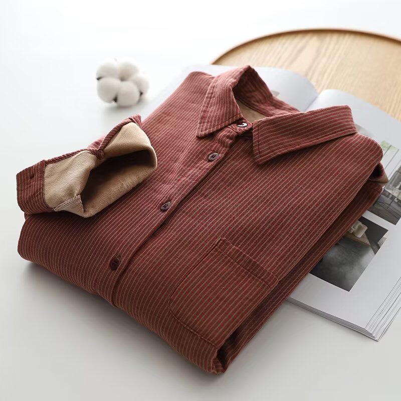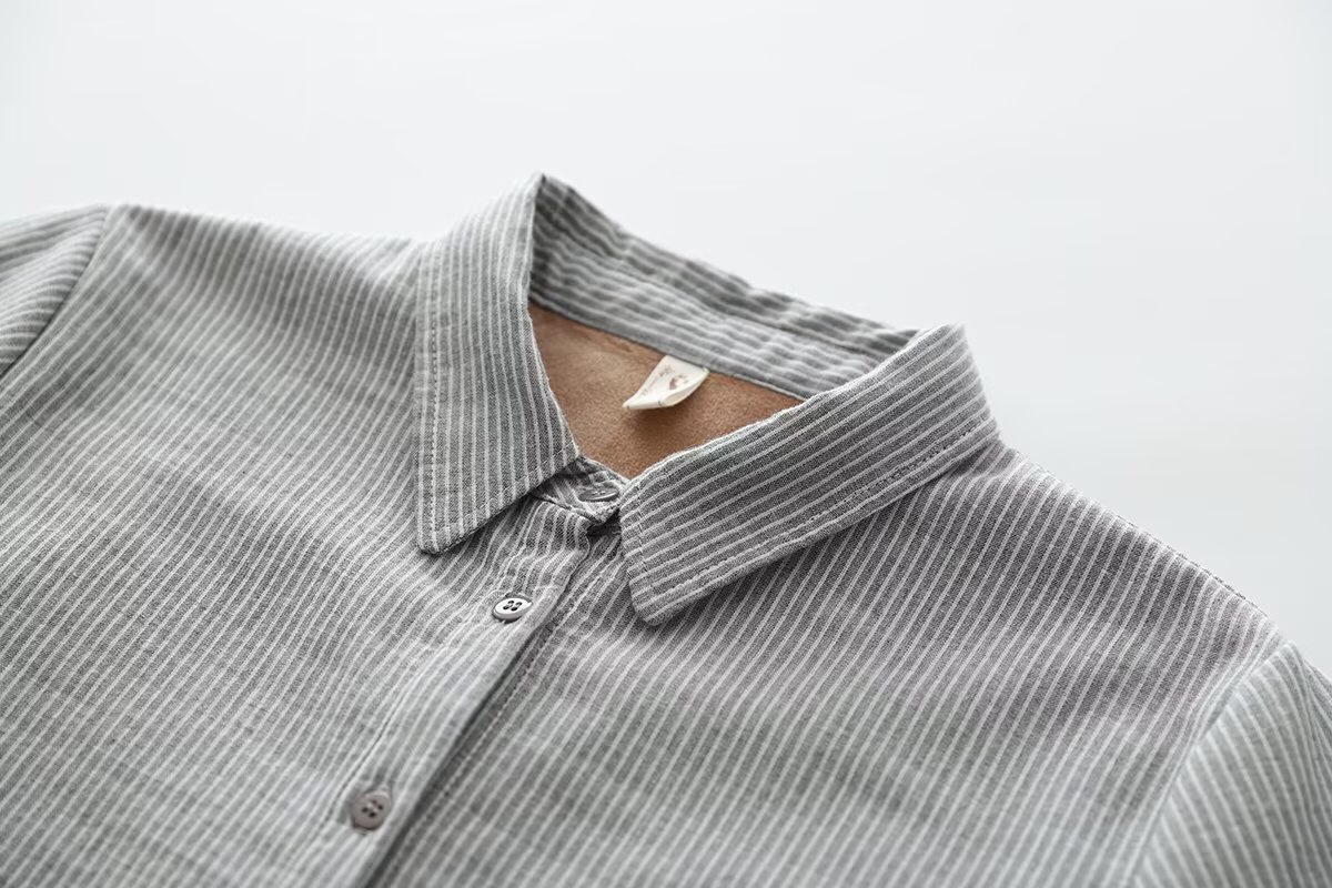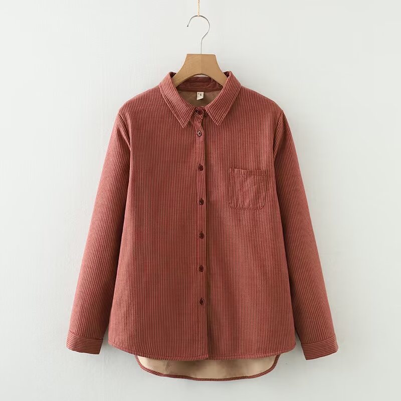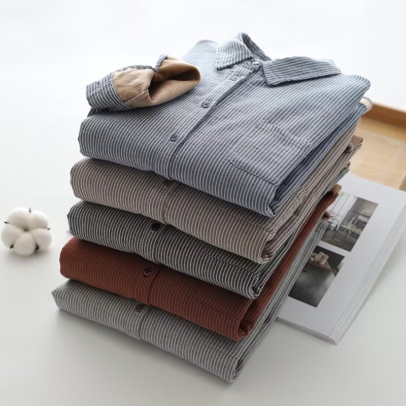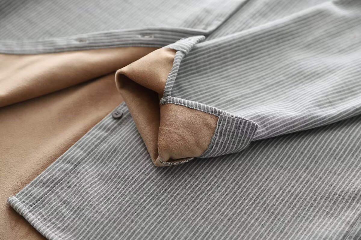 2024 년 가을과 겨울 새로운 기모 두꺼운 기지 긴 소매 탑 재킷 스트라이프 루즈 캐주얼 셔츠