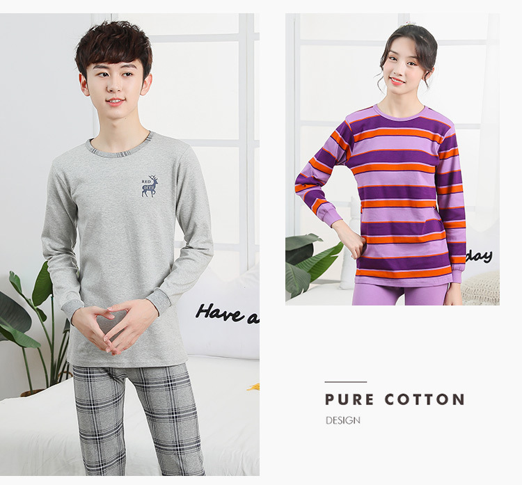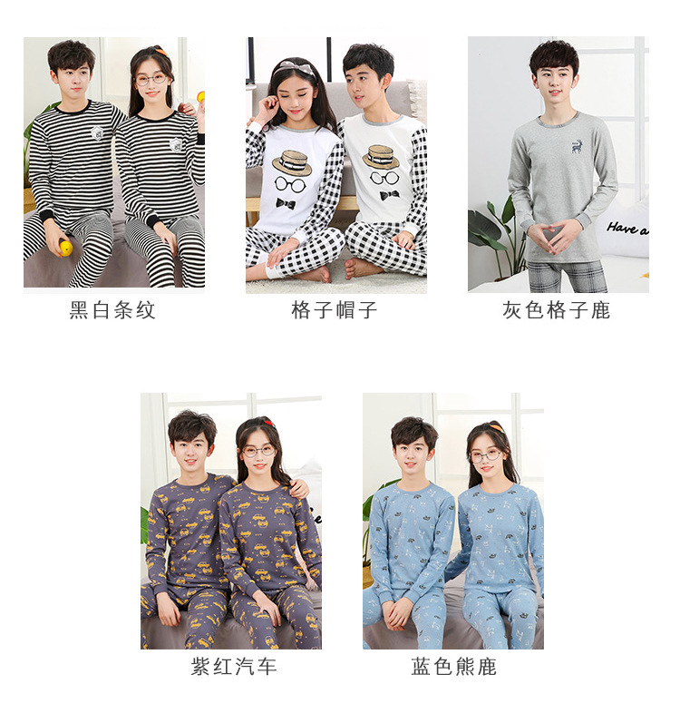 큰 어린이 가을과 겨울 아동복 어린이 내부 따뜻한 바닥 셔츠 청소년 둥근 목 가을 의류 가을 바지 홈 의류 세트스토어 가기