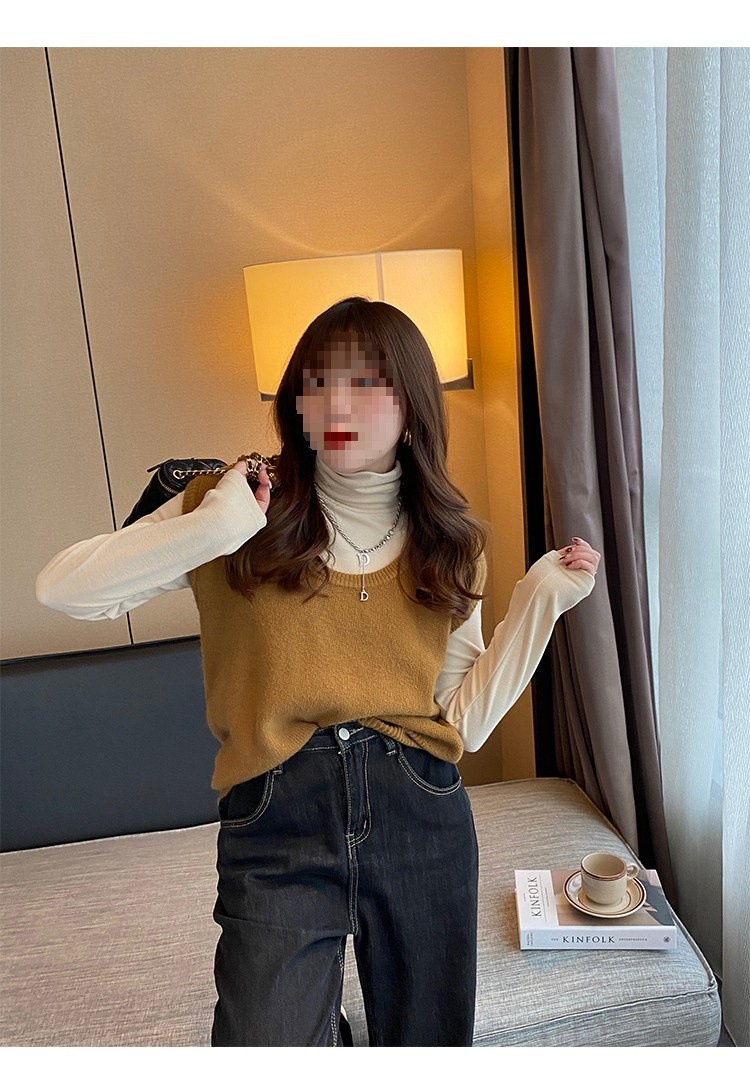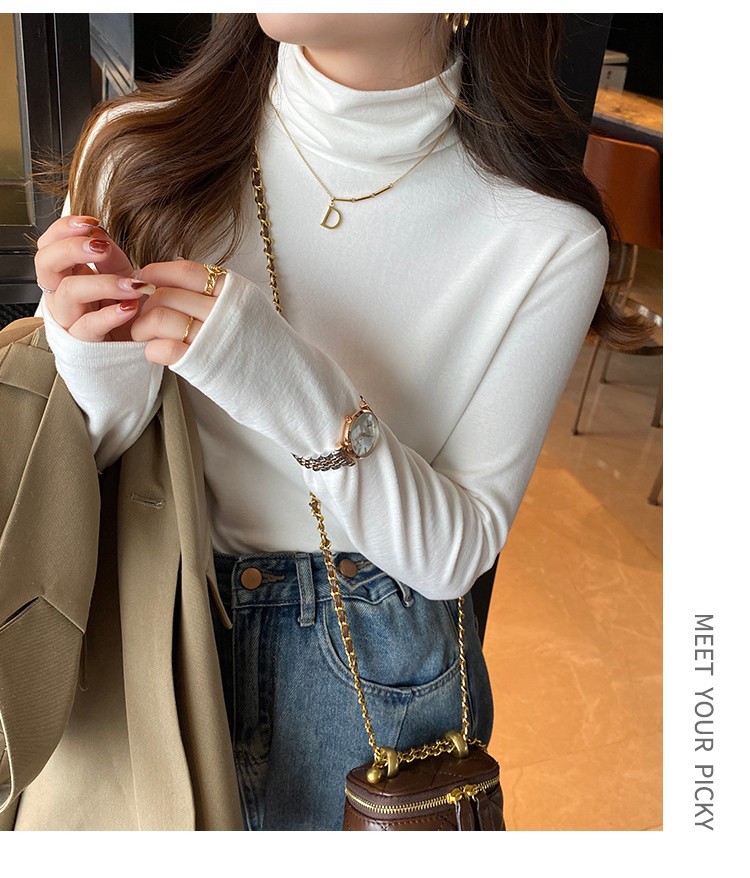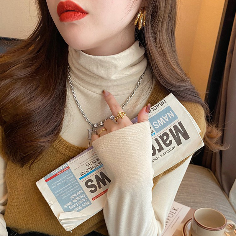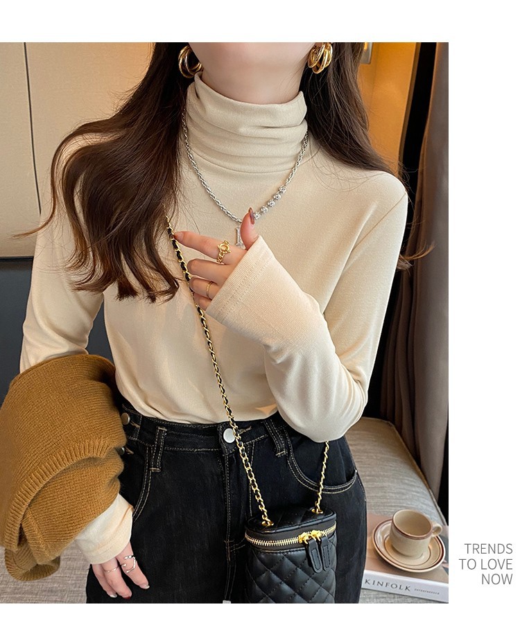 모달 높은 칼라베이스 셔츠 여성의 가을과 겨울 내부 긴 소매 티셔츠 슬림 올 매치 세련된 세련된 파일 칼라 탑